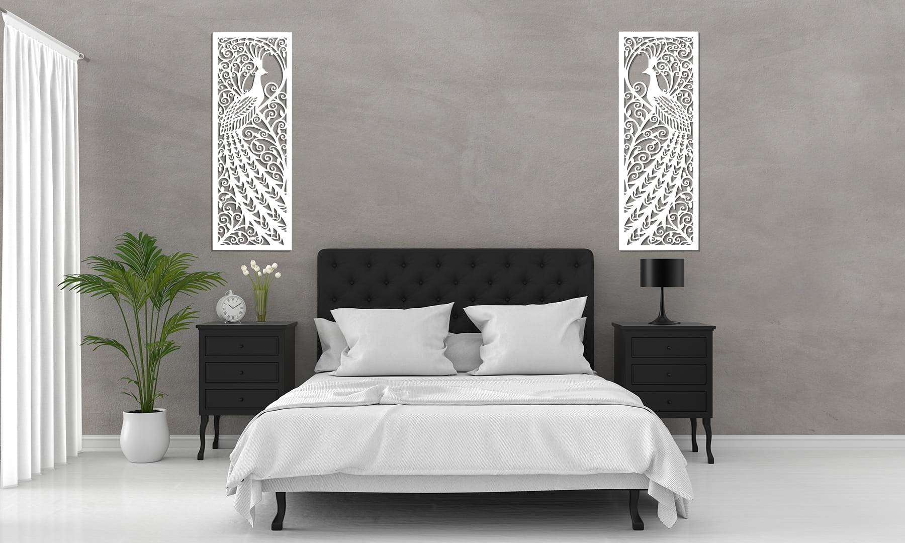 DEKORACYJNE PANELE AŻUROWE, PAW, SECESJA, ART NOUVEAU, DEKORACJA ŚCIENNA 3D, ORNAMENT, BIAŁY