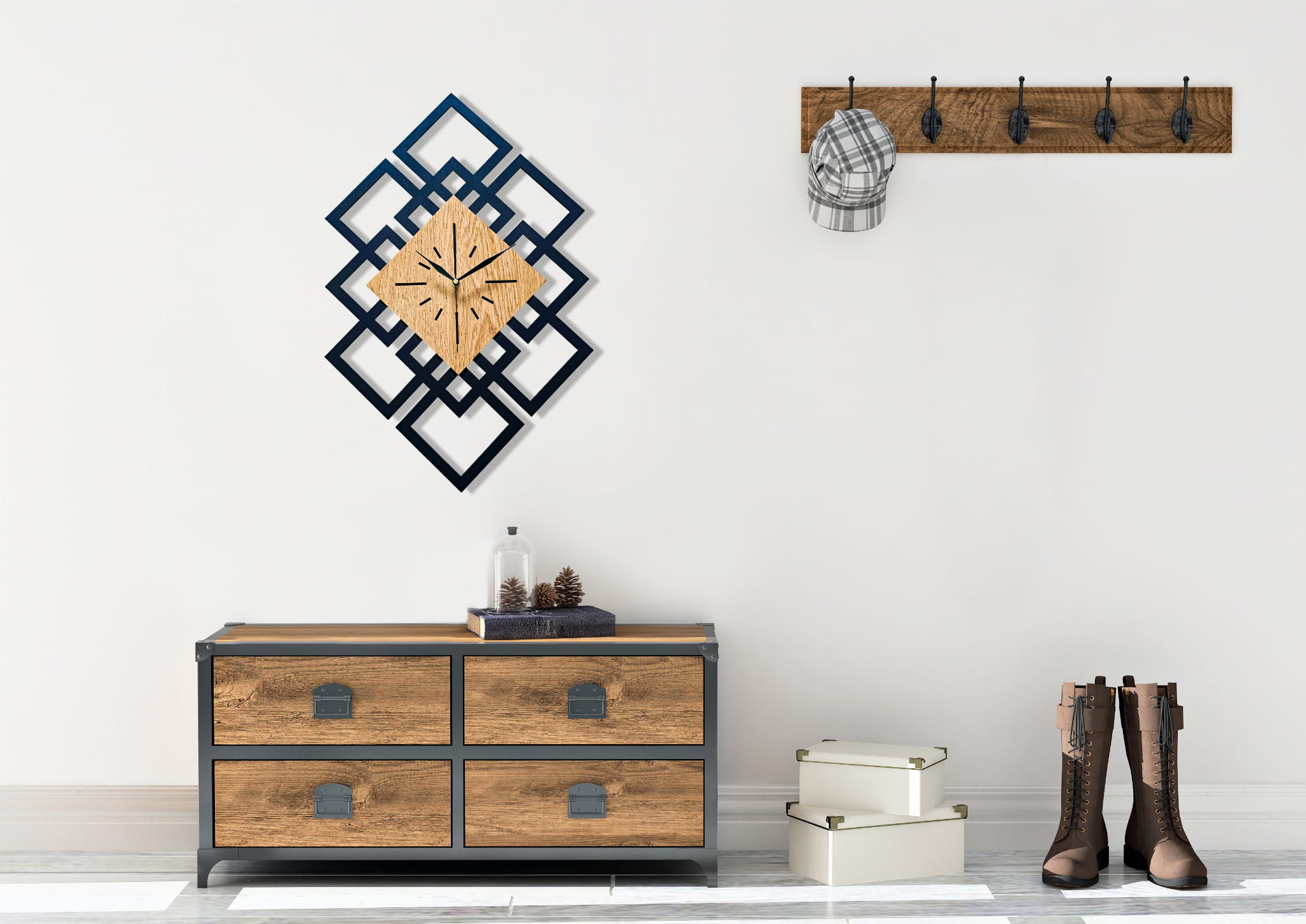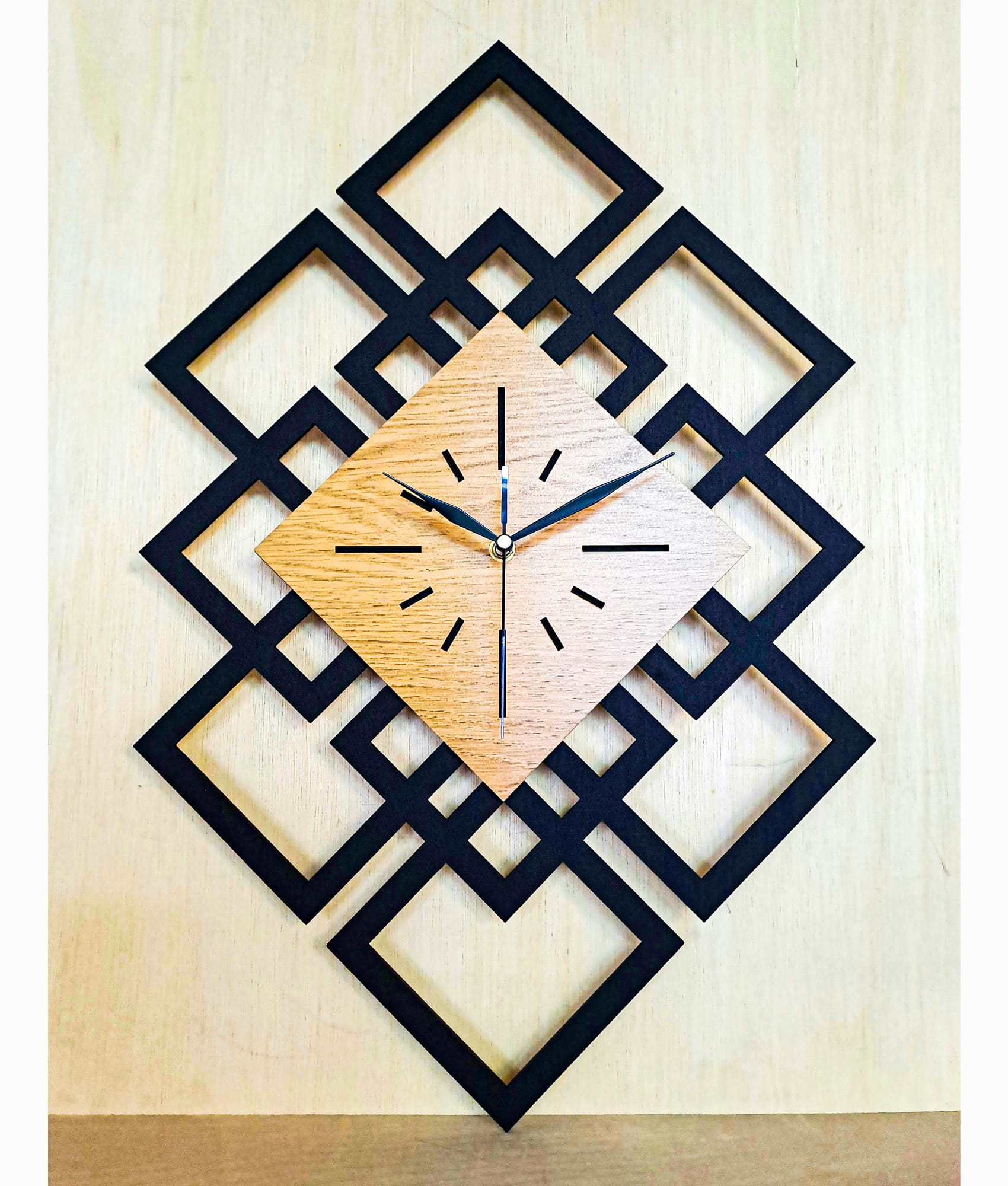 DEKORACYJNY DREWNIANY ZEGAR, NOWOCZESNY, LOFT, STYL INDUSTRIALNY, DREWNO,MINIMALISTYCZNY, GEOMETRYCZNY, LOFTOWY , CZARNY - DĄB ZŁOTY