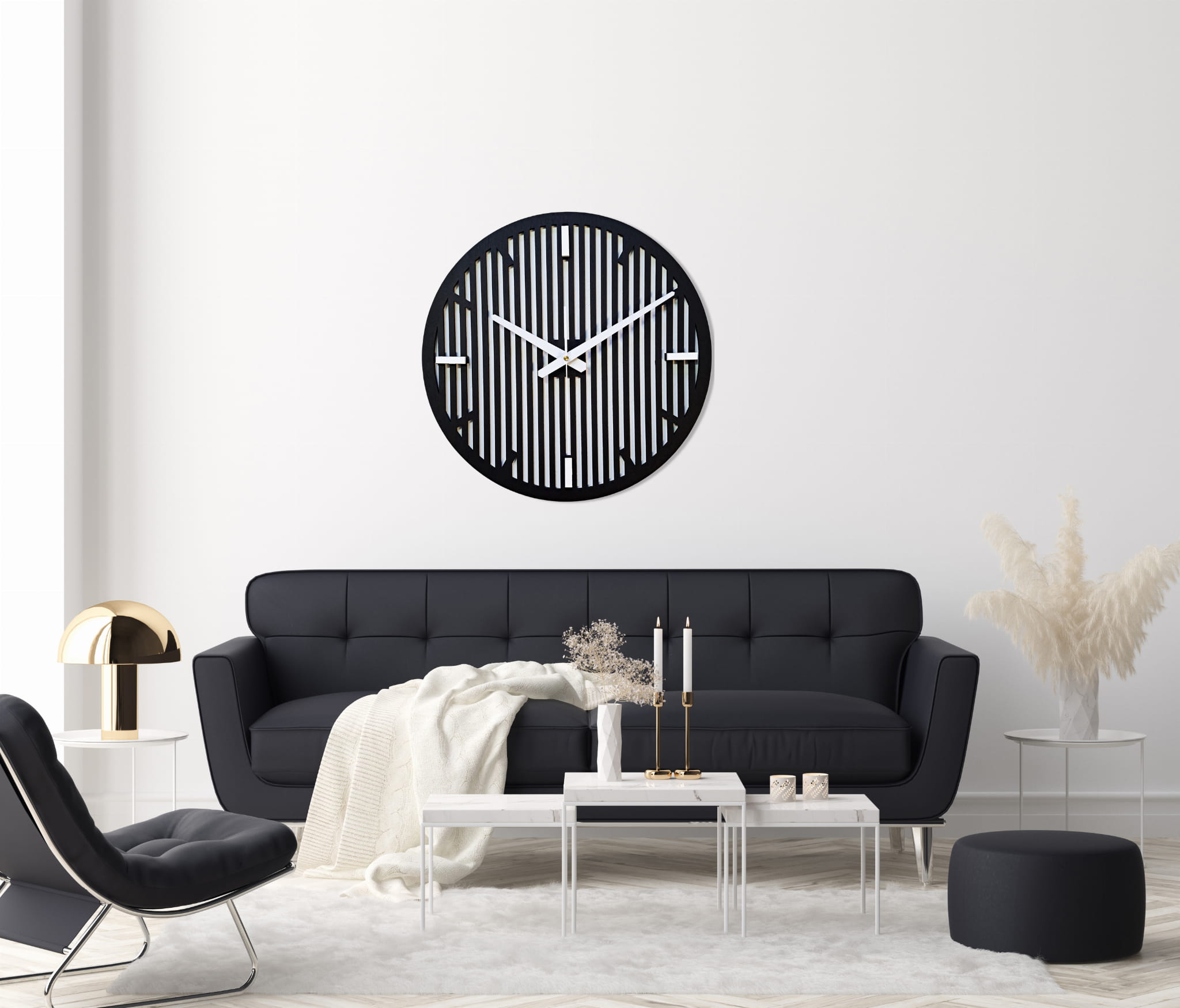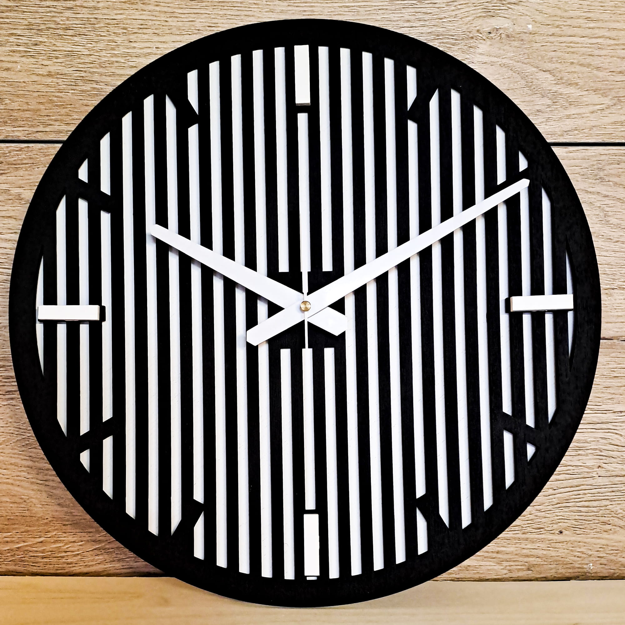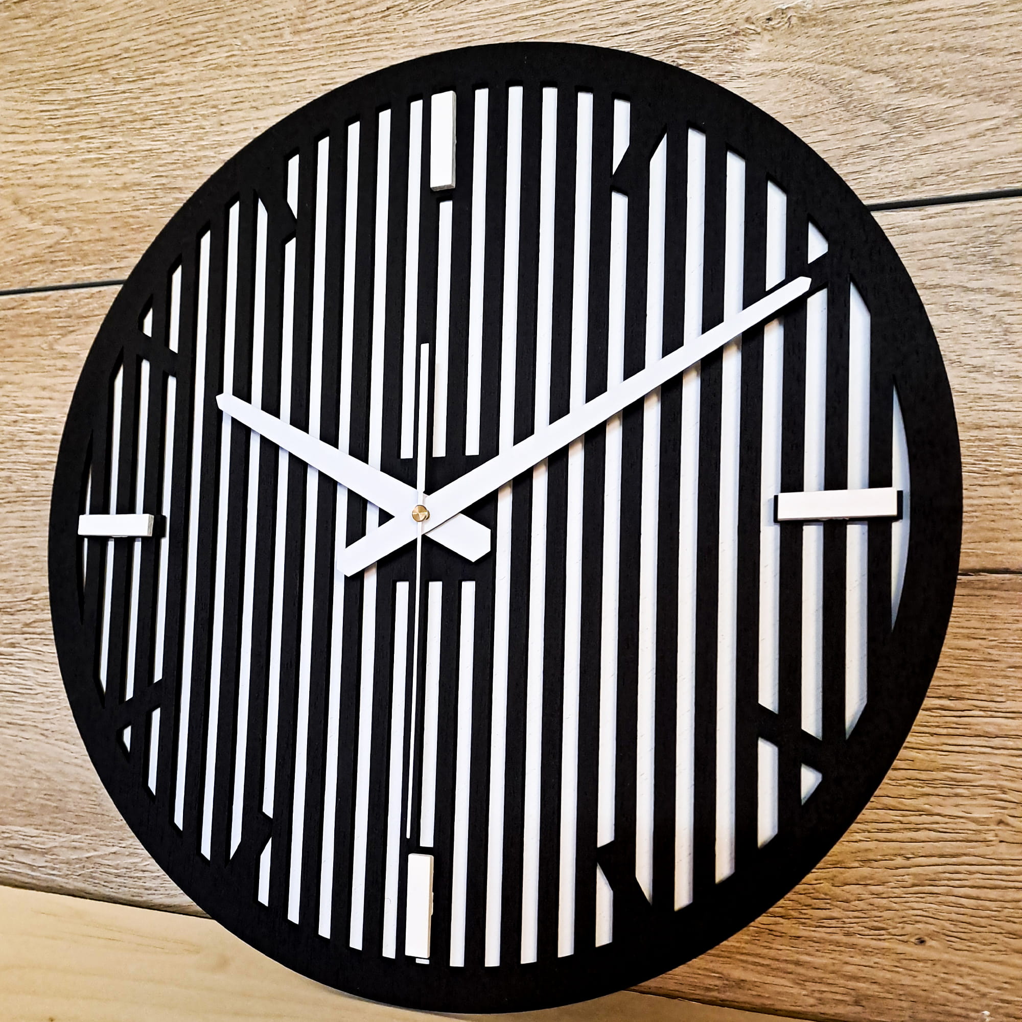 PRODUKT: Dekoracyjny, ażurowy zegar w nowoczesnym stylu inspirowanym lamelami sprawi, że Twoje wnętrze nabierze charakteru i stylu.