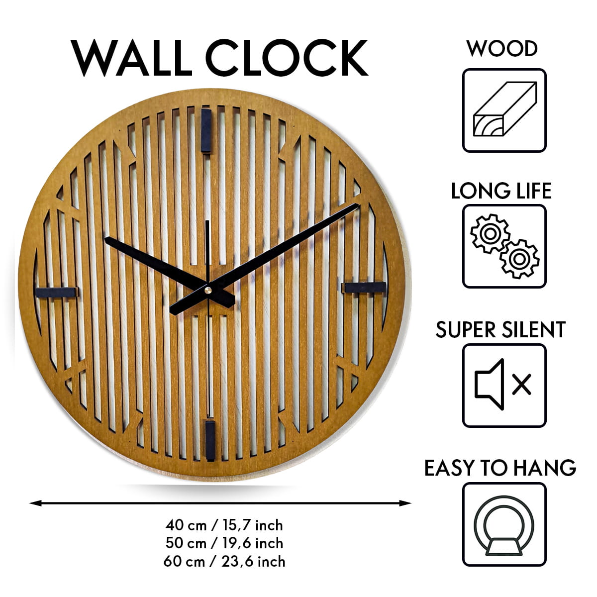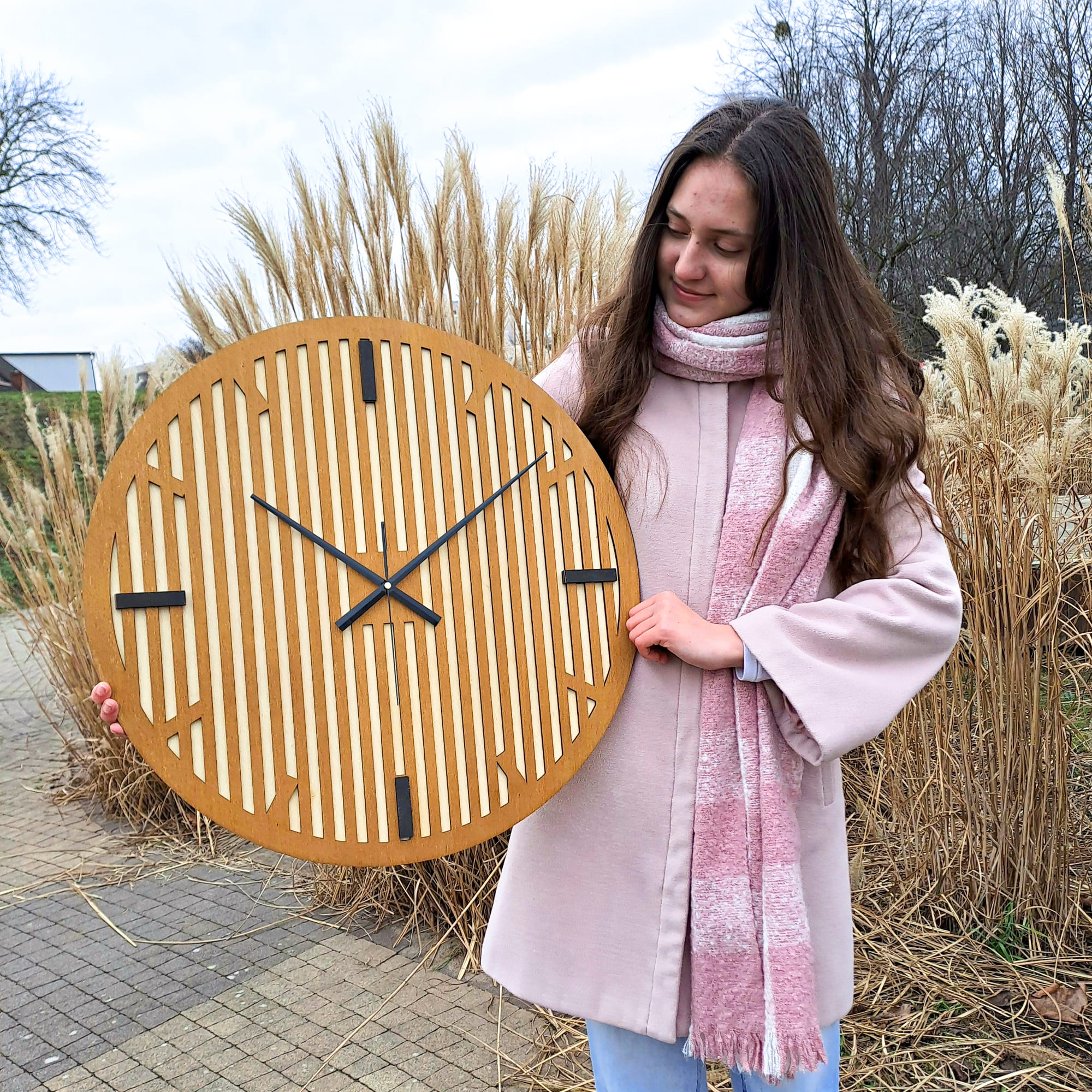 DEKORACYJNY DREWNIANY ZEGAR, NOWOCZESNY, LOFT, STYL INDUSTRIALNY, DREWNO,MINIMALISTYCZNY, LAMELE, DĄB, 3 ROZMIARY