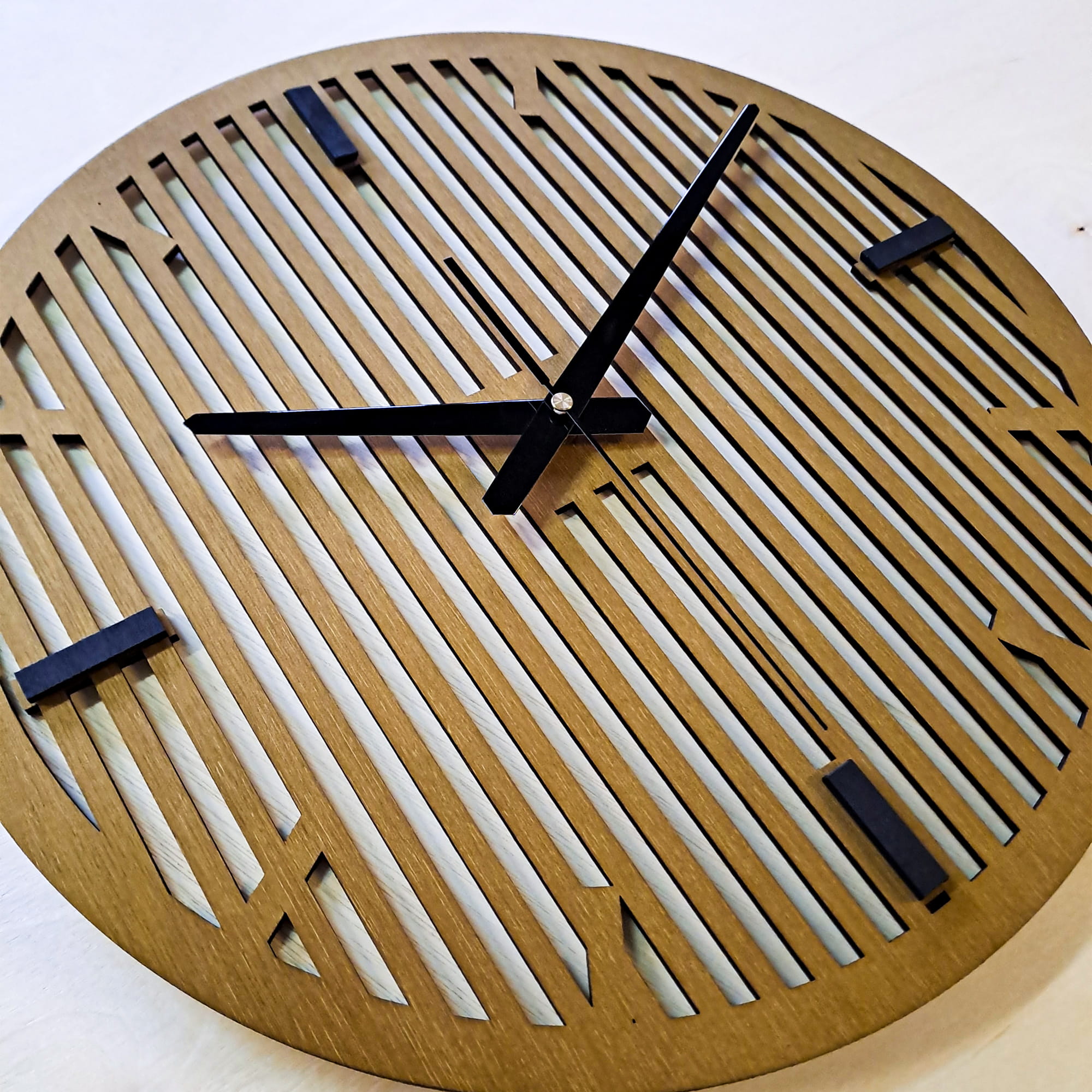 PRODUKT: Dekoracyjny, ażurowy zegar w nowoczesnym stylu inspirowanym lamelami sprawi, że Twoje wnętrze nabierze charakteru i stylu.