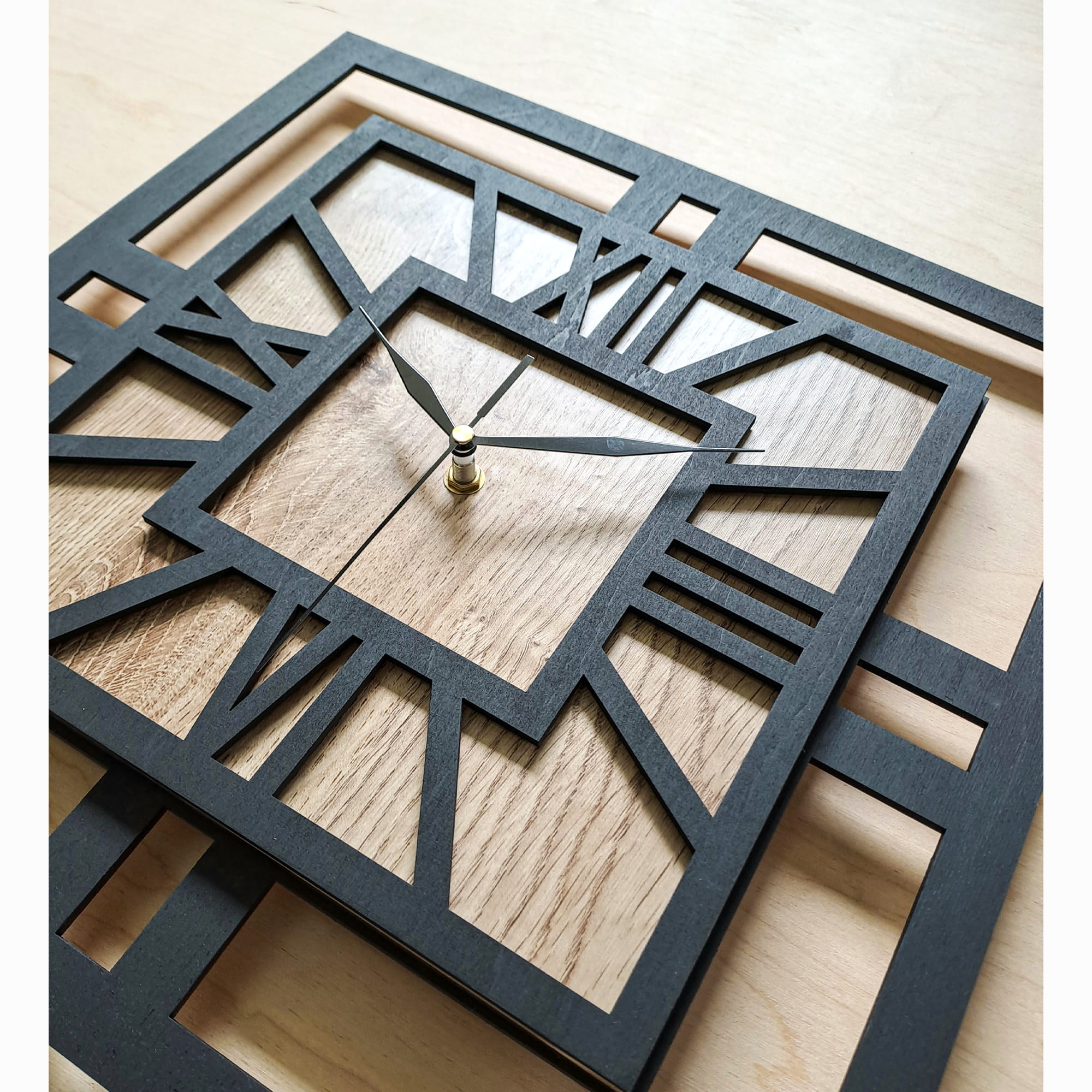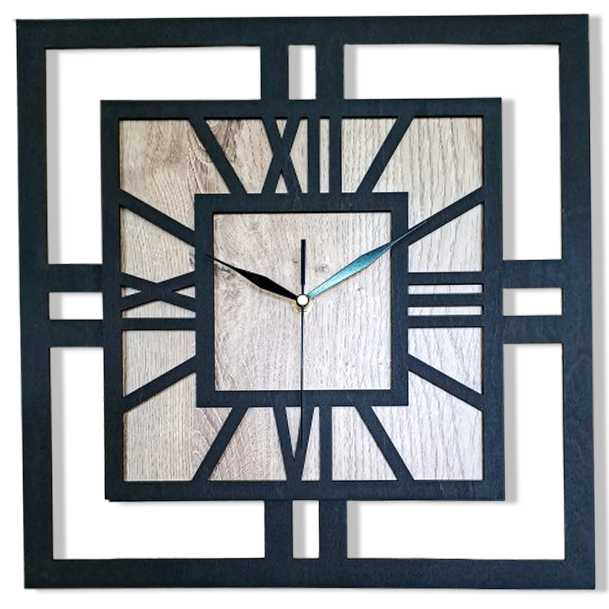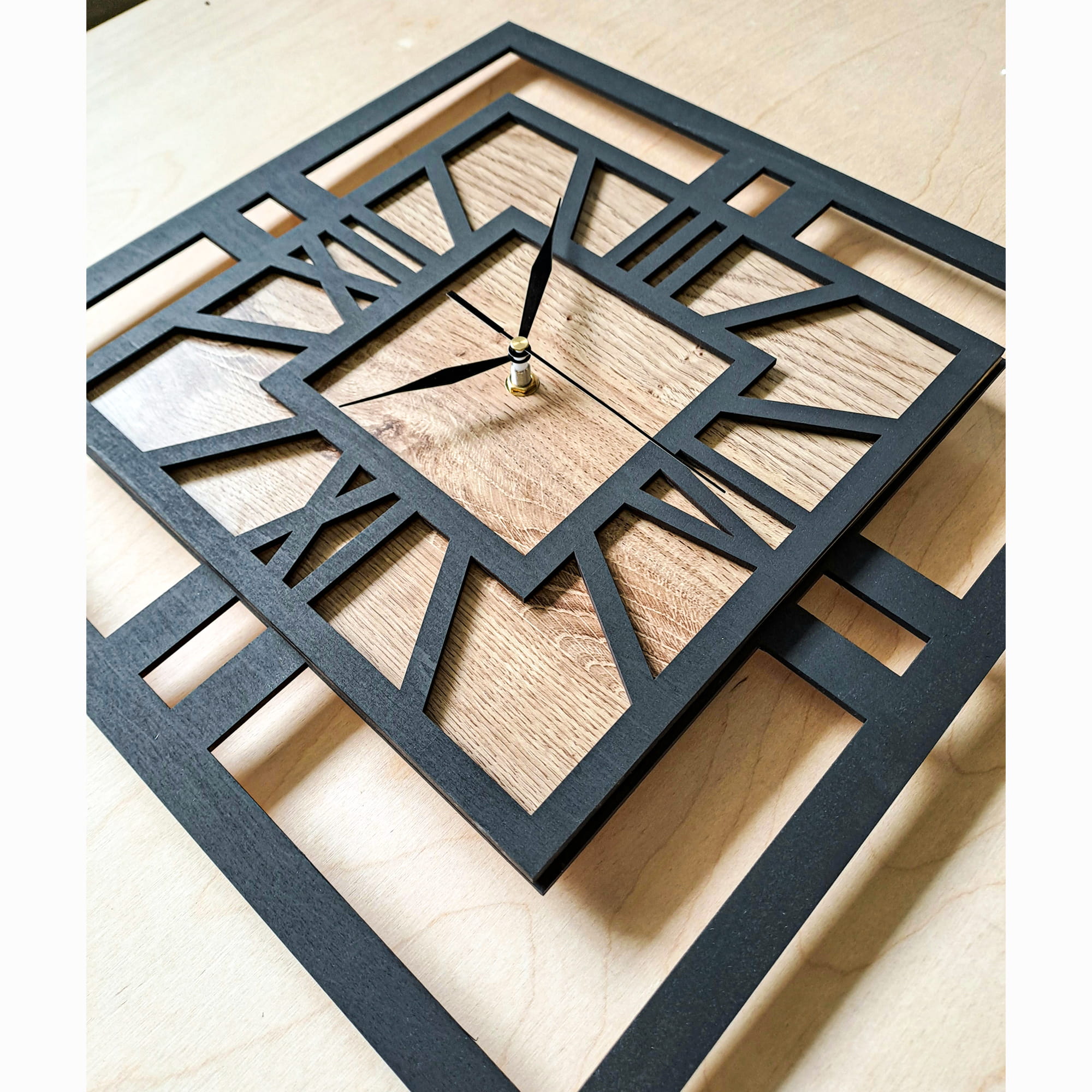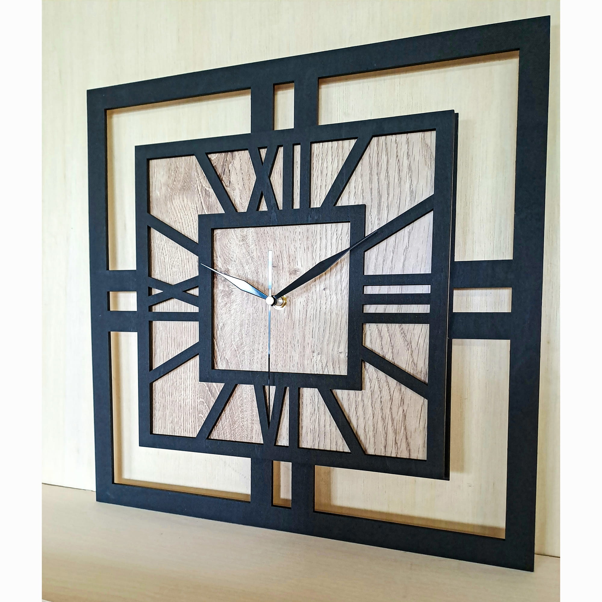 DEKORACYJNY DREWNIANY ZEGAR, NOWOCZESNY, LOFT, STYL INDUSTRIALNY, KWADRAT, DREWNO, 3 ROZMIARY