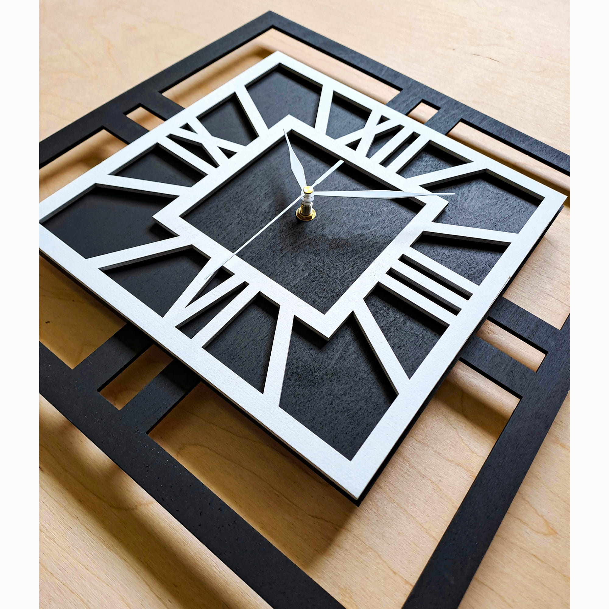 AŻUROWY, DEKORACYJNY ZEGAR GEOMETRYCZNY, HANDMADE ORNAMENTI