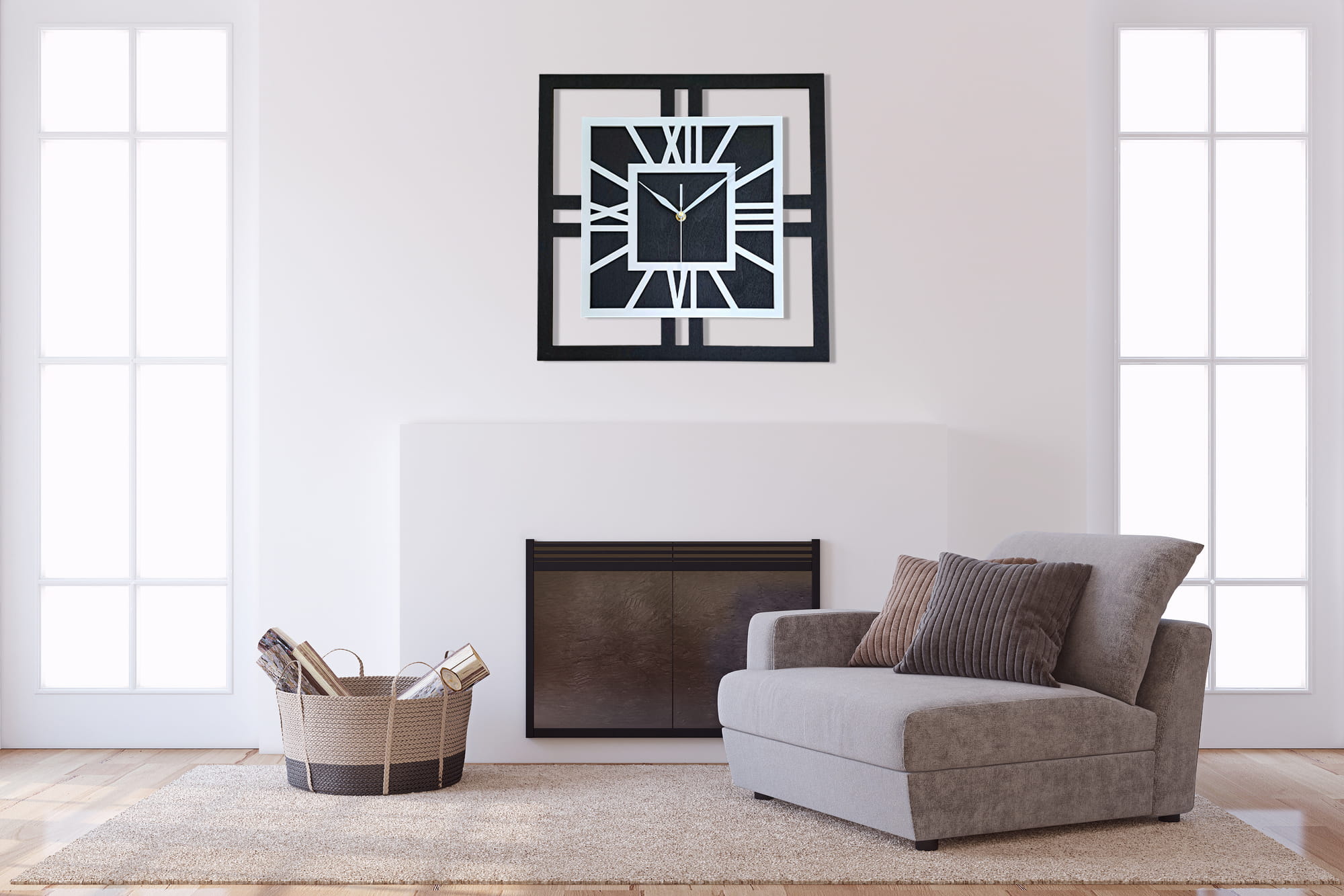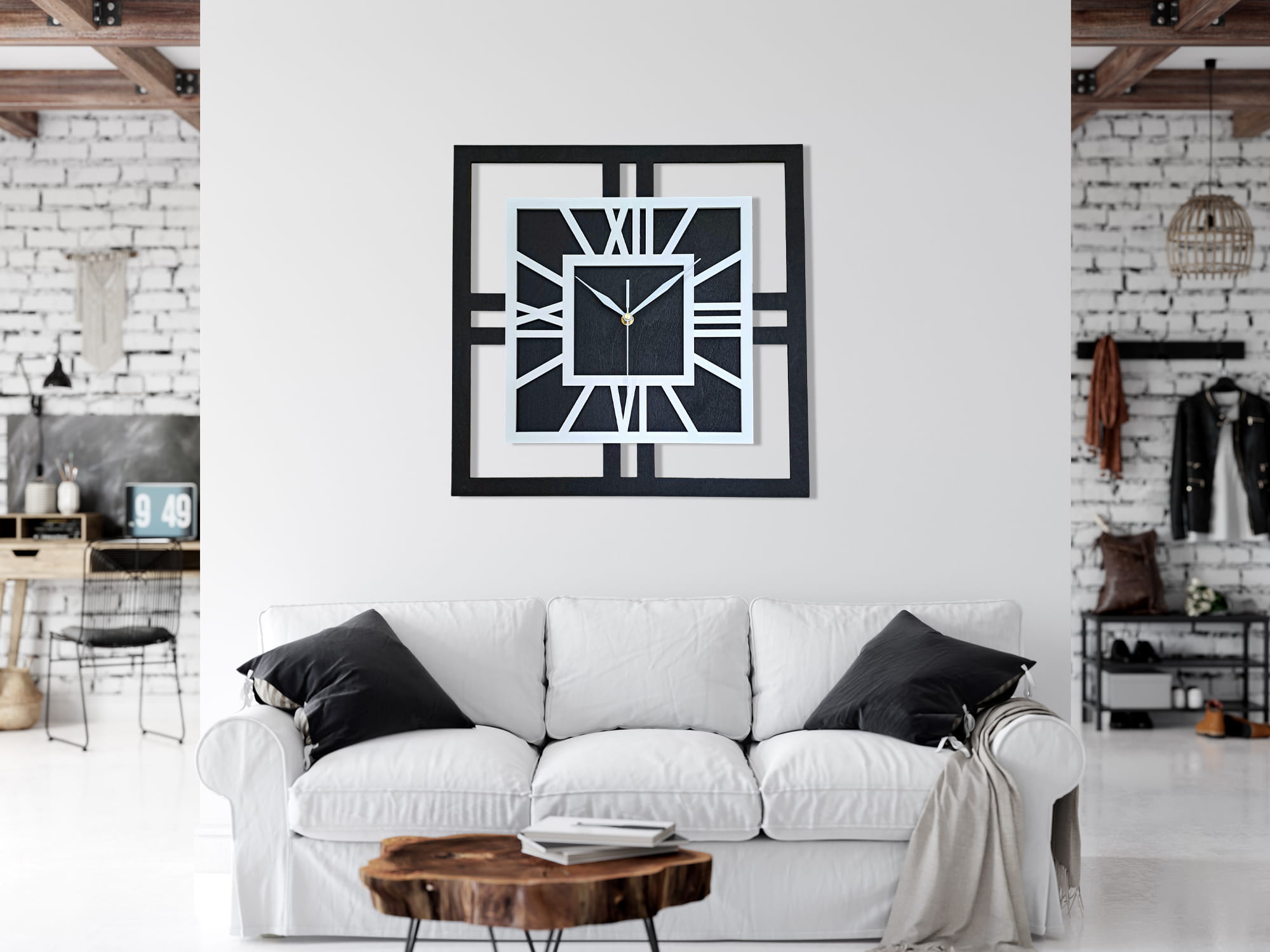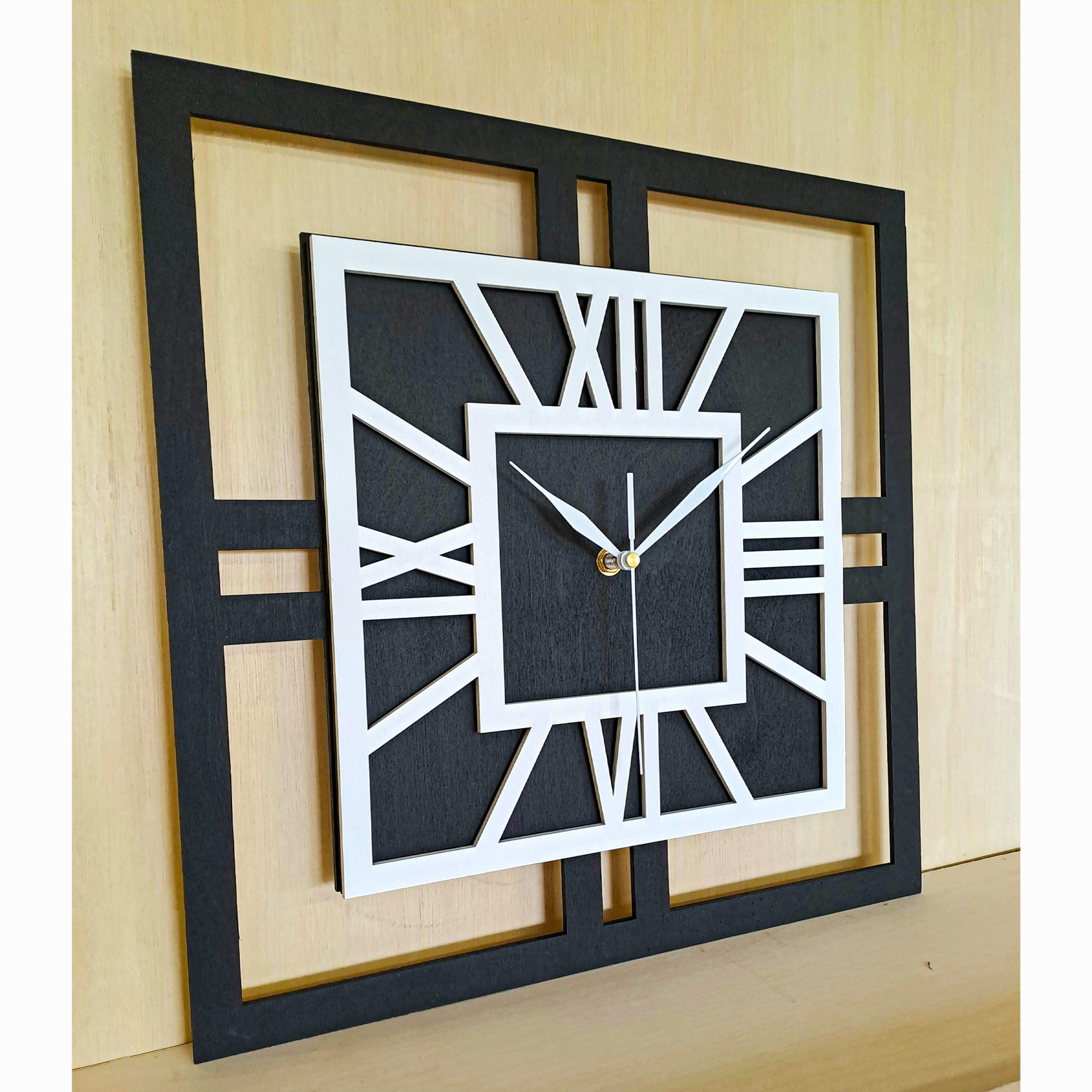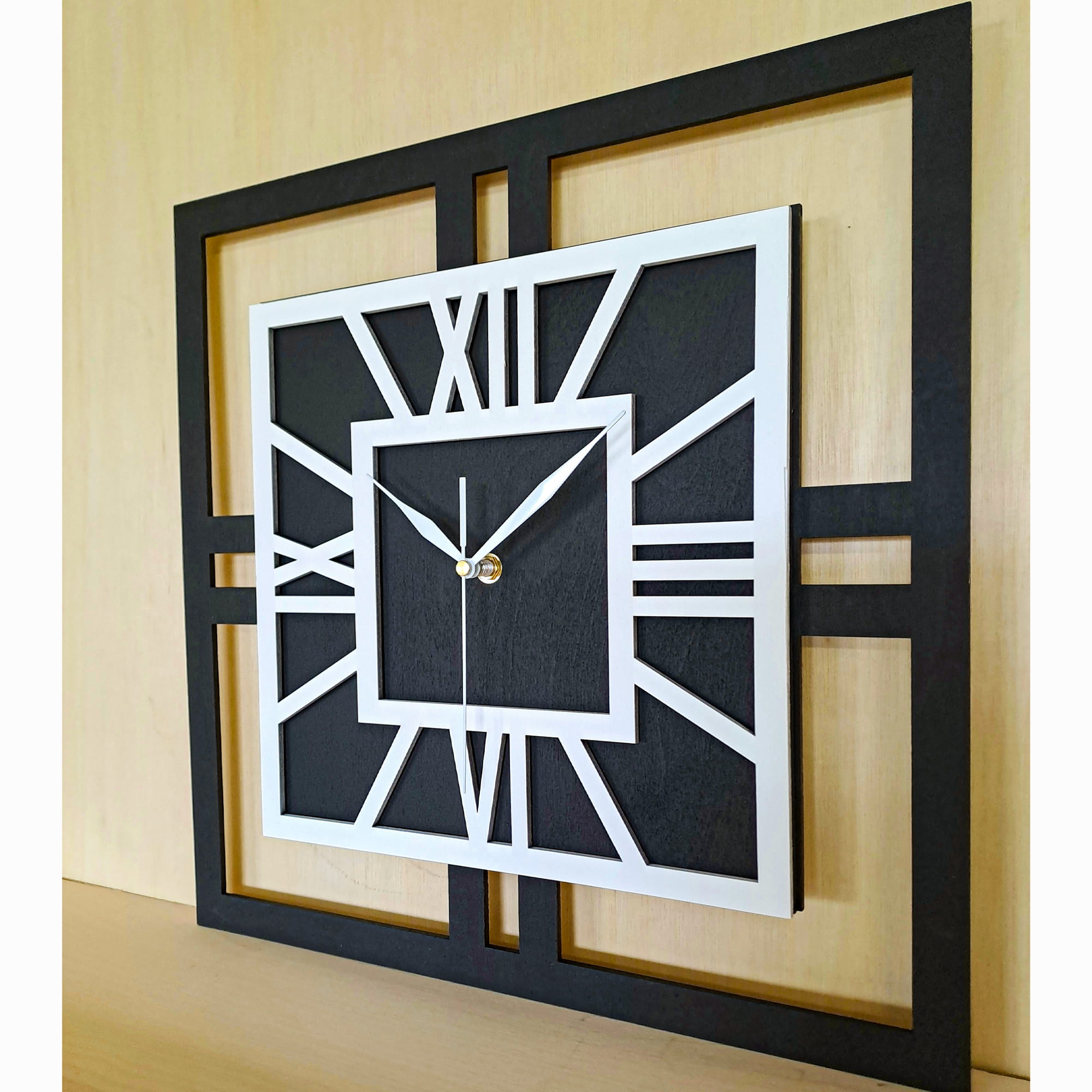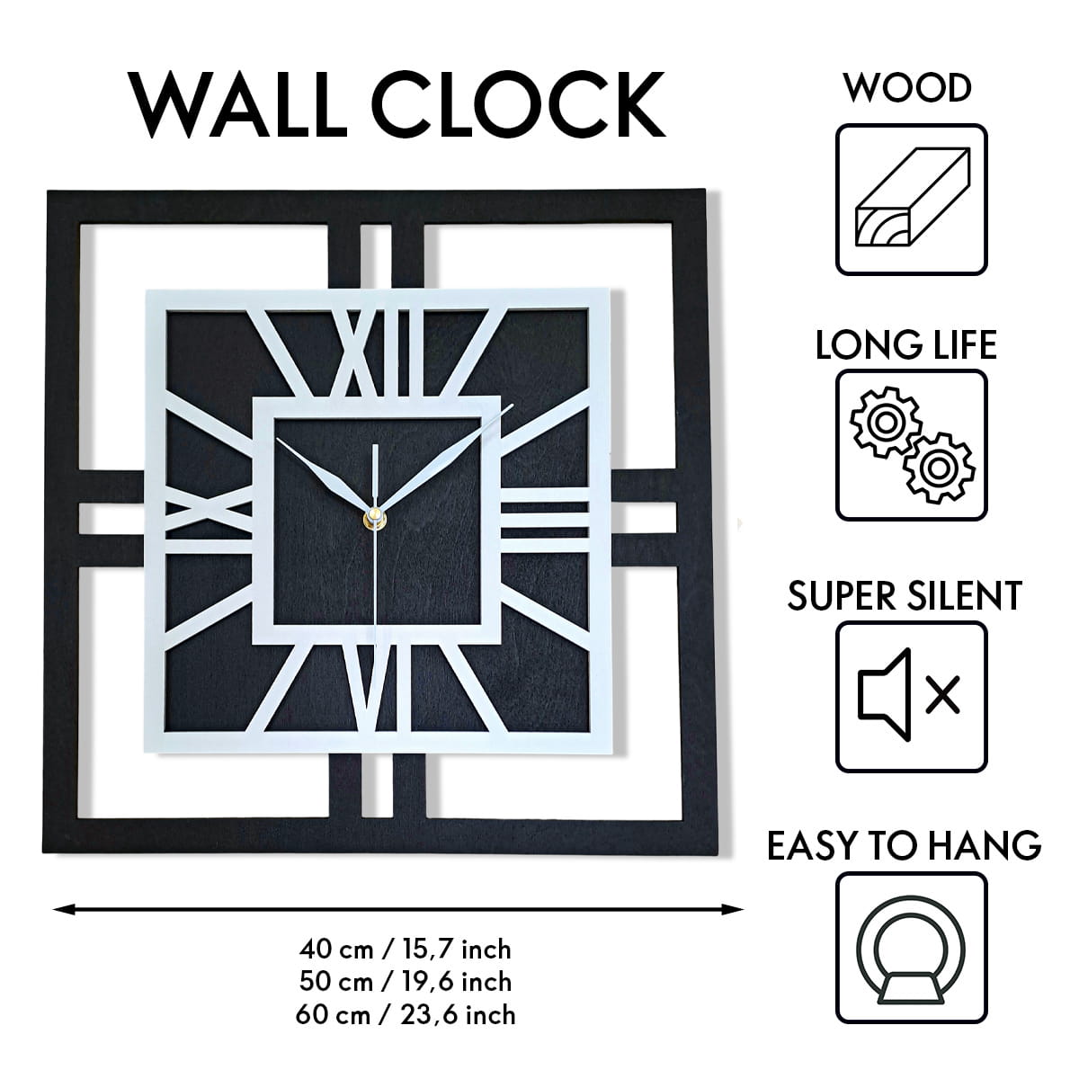 DEKORACYJNY DREWNIANY ZEGAR, NOWOCZESNY, LOFT, STYL INDUSTRIALNY, KWADRAT, DREWNO,MINIMALISTYCZNY, BIAŁY, 3 ROZMIARY