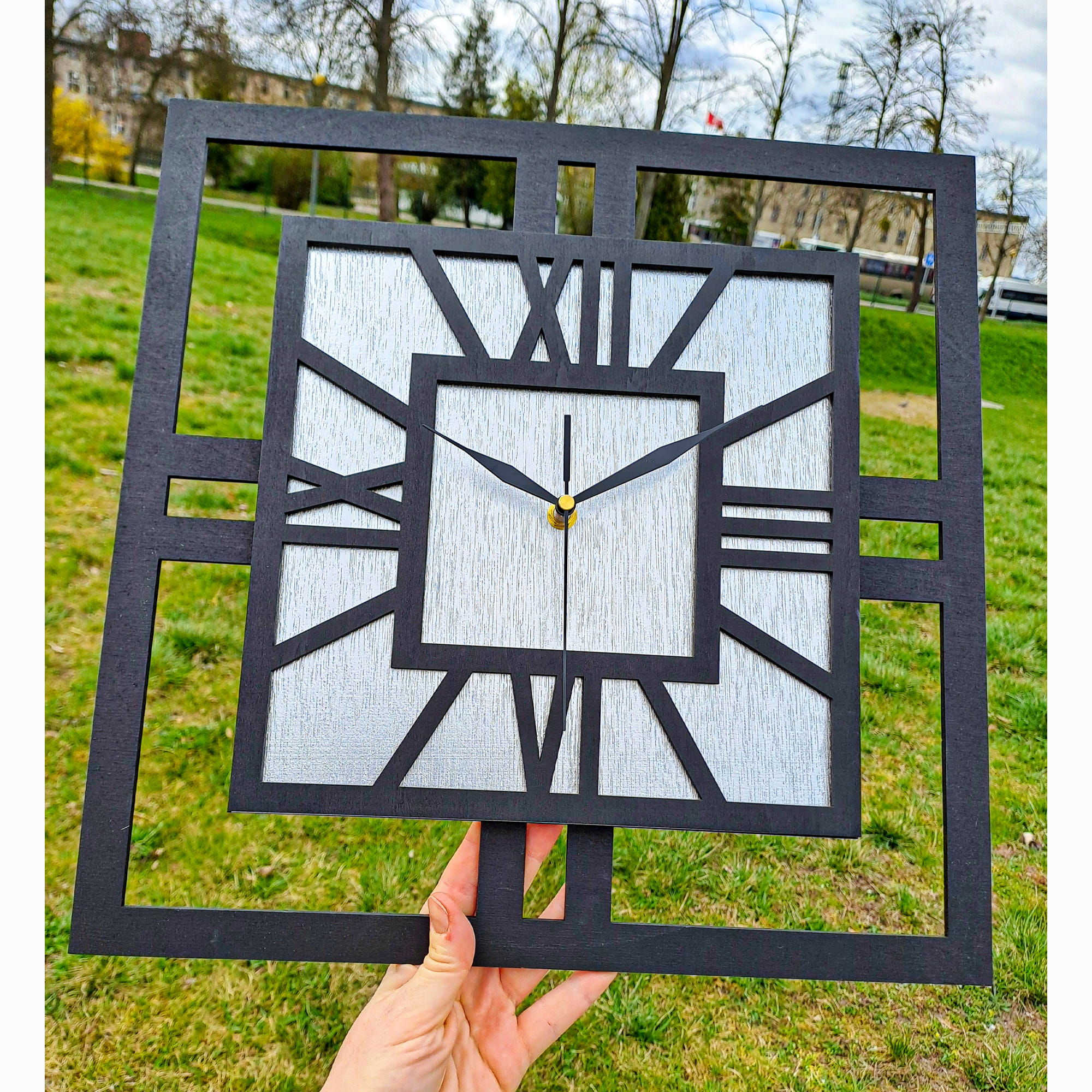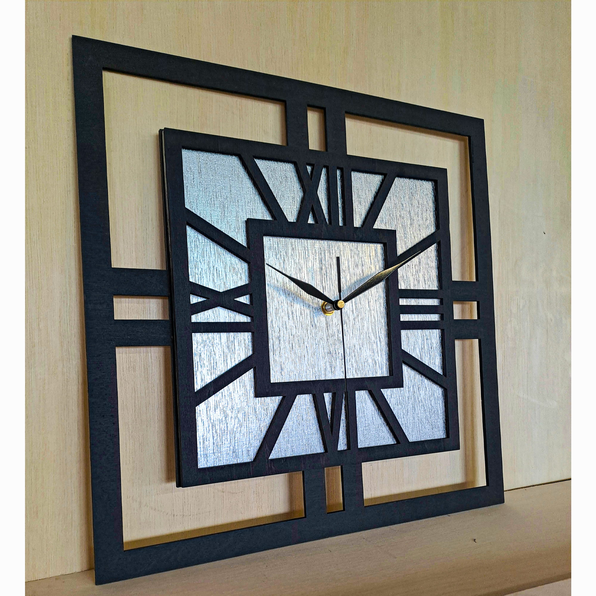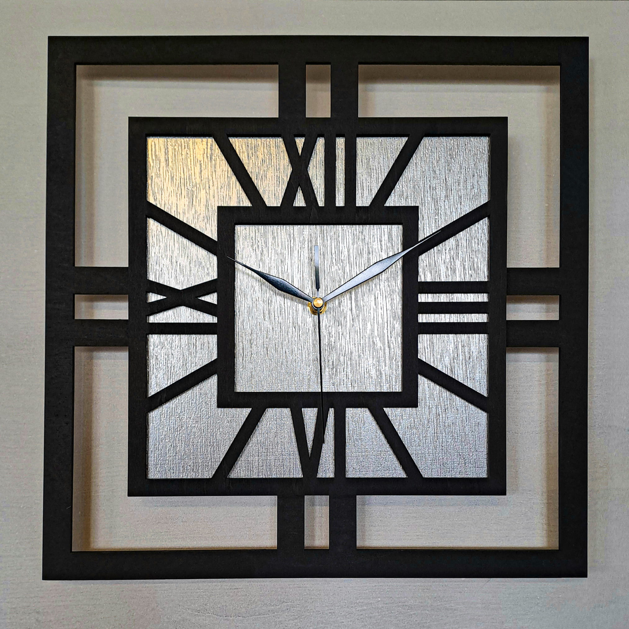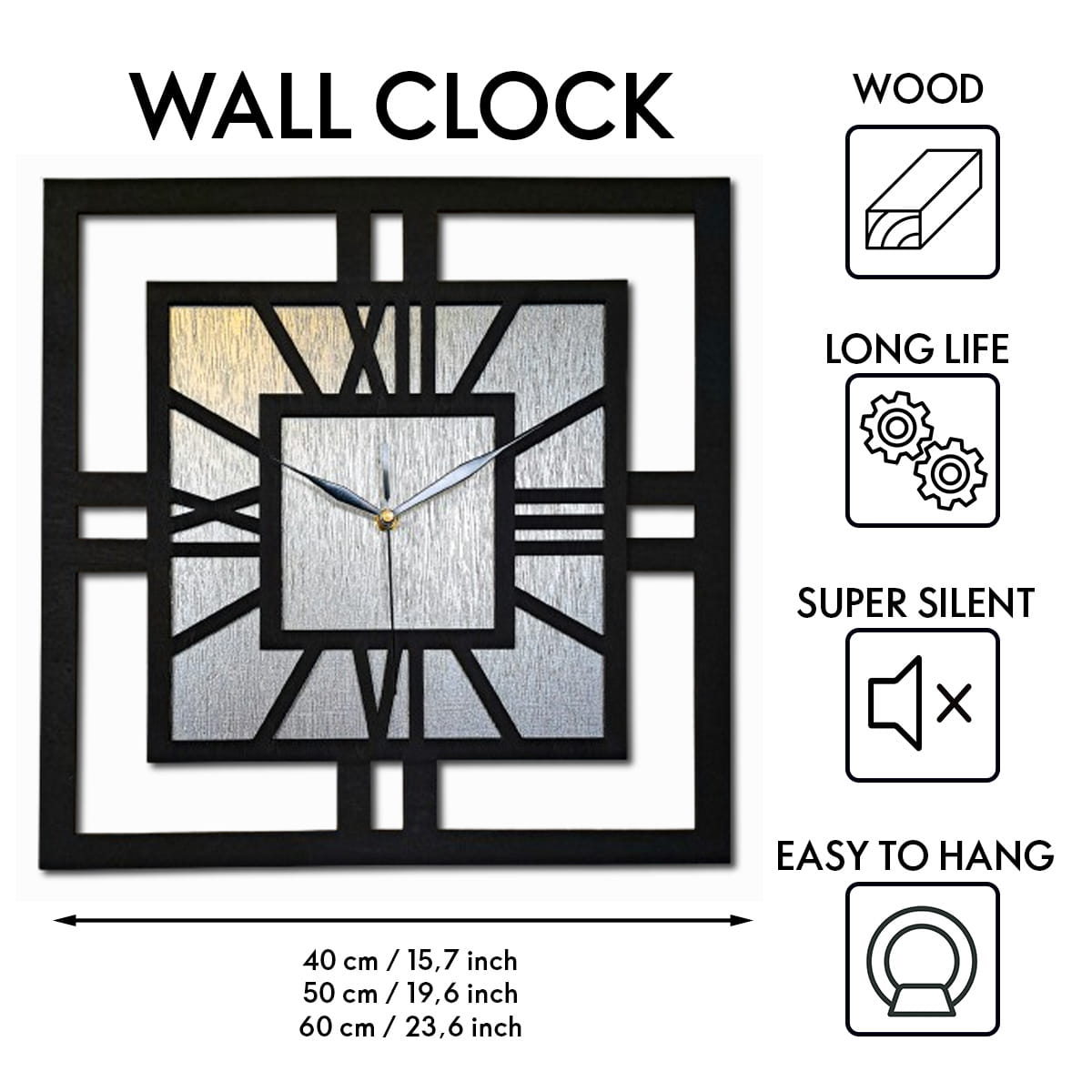 DEKORACYJNY DREWNIANY ZEGAR, NOWOCZESNY, LOFT, STYL INDUSTRIALNY, KWADRAT, DREWNO,MINIMALISTYCZNY, SREBRNY, 3 ROZMIARY