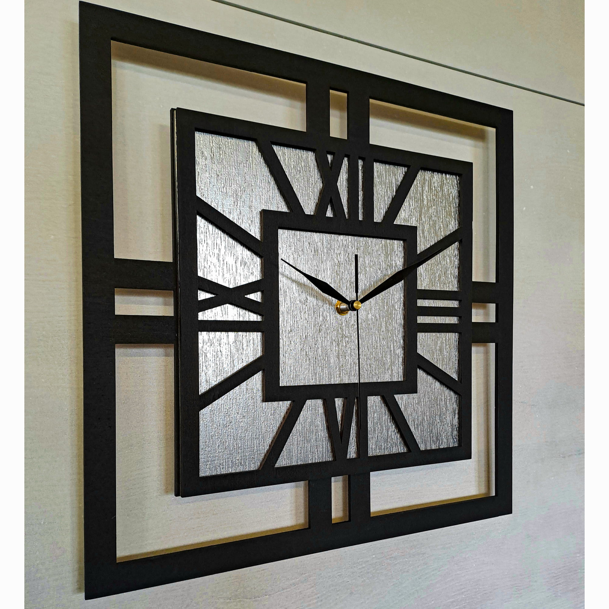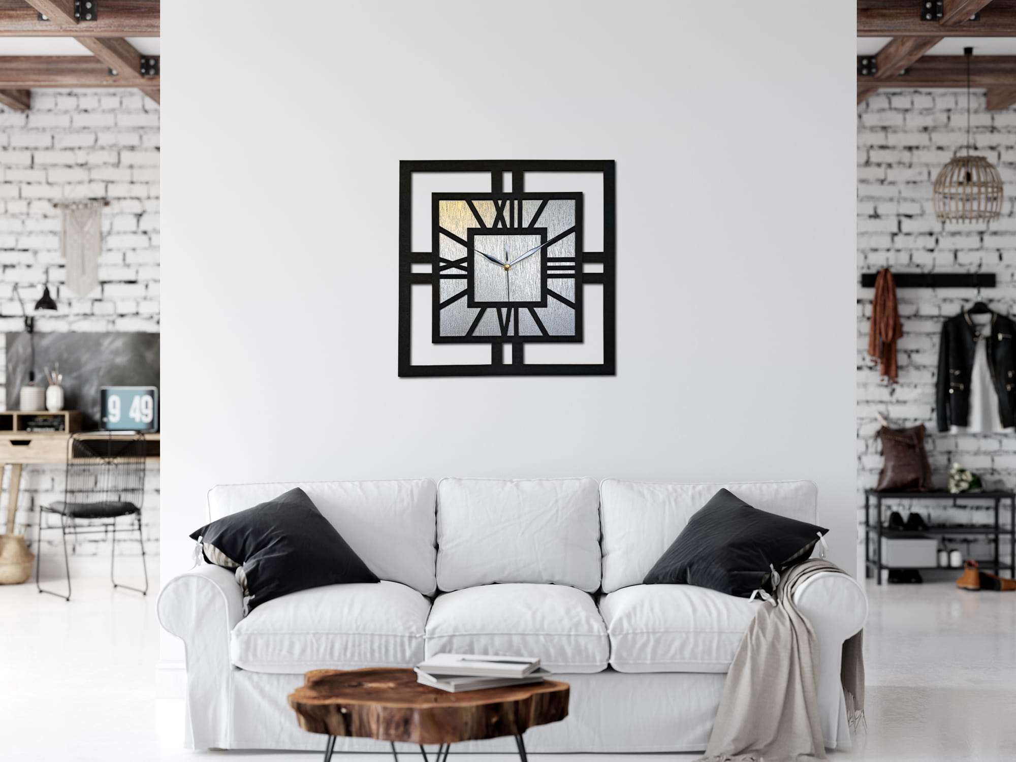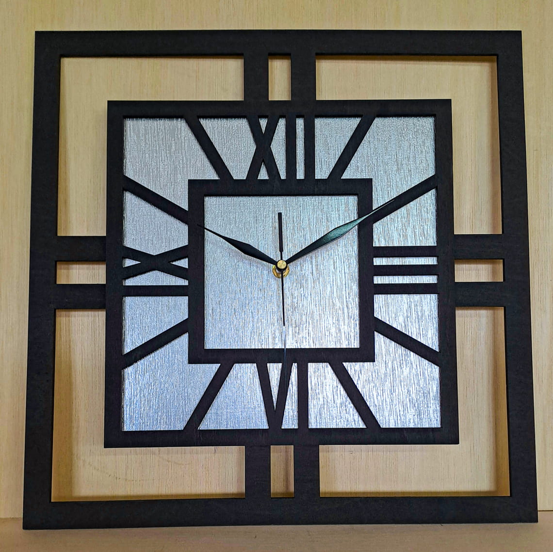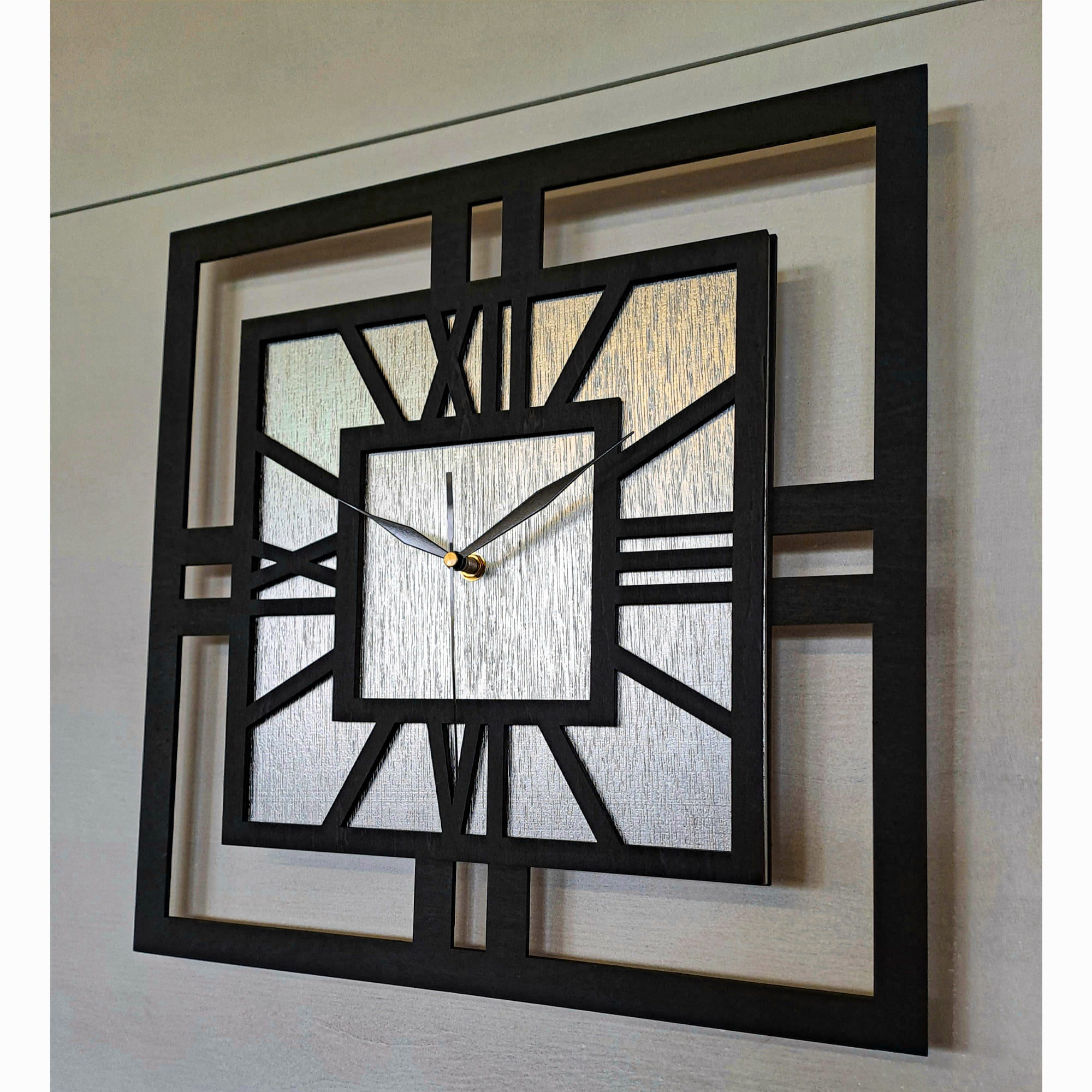 DEKORACYJNY DREWNIANY ZEGAR, NOWOCZESNY, LOFT, STYL INDUSTRIALNY, KWADRAT, DREWNO,MINIMALISTYCZNY, SREBRNY, 3 ROZMIARY