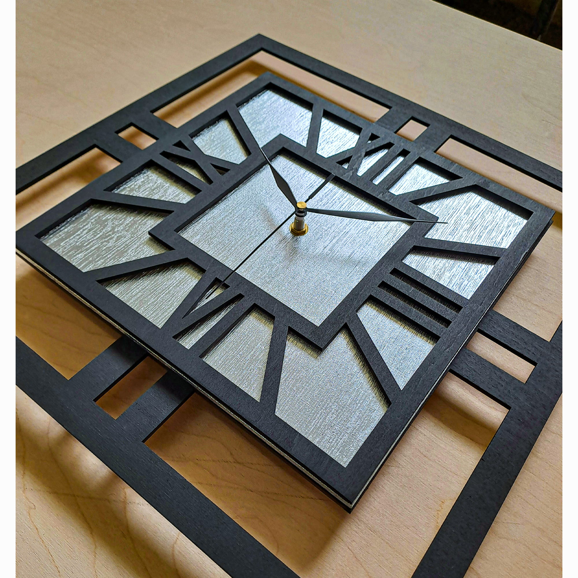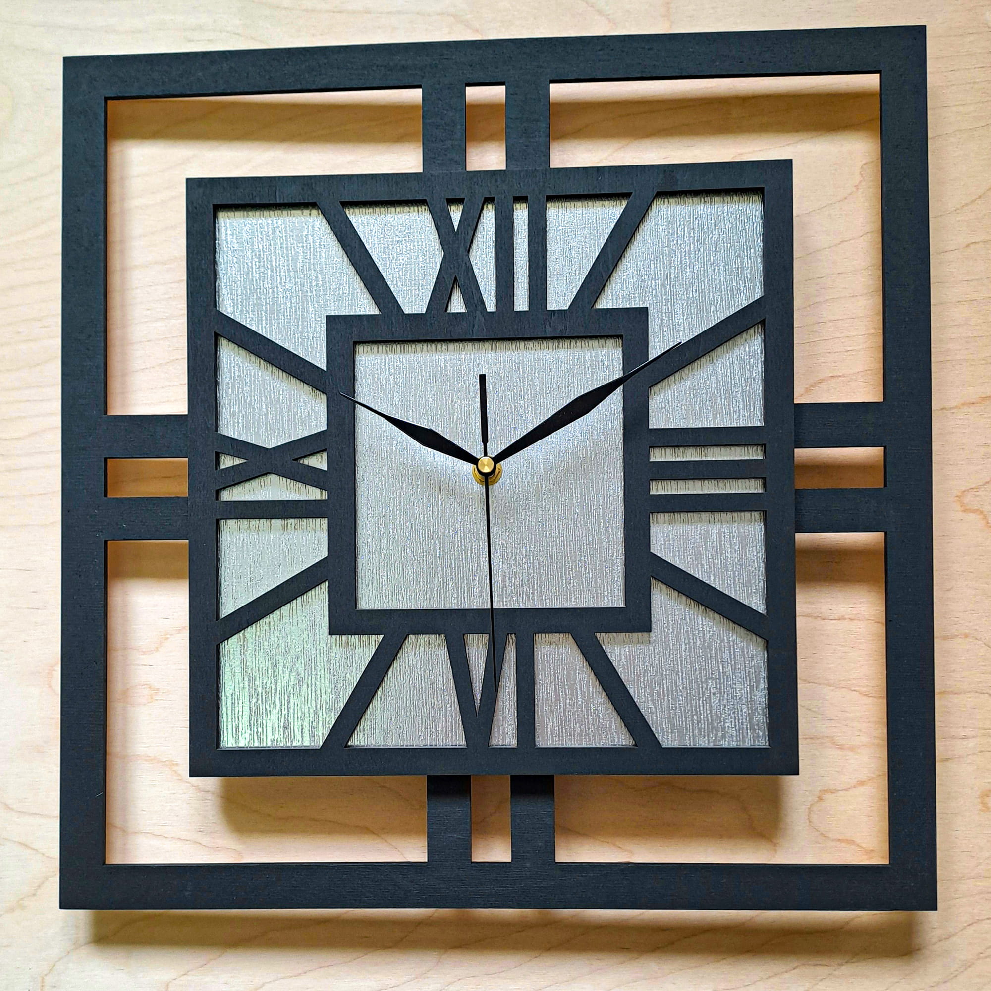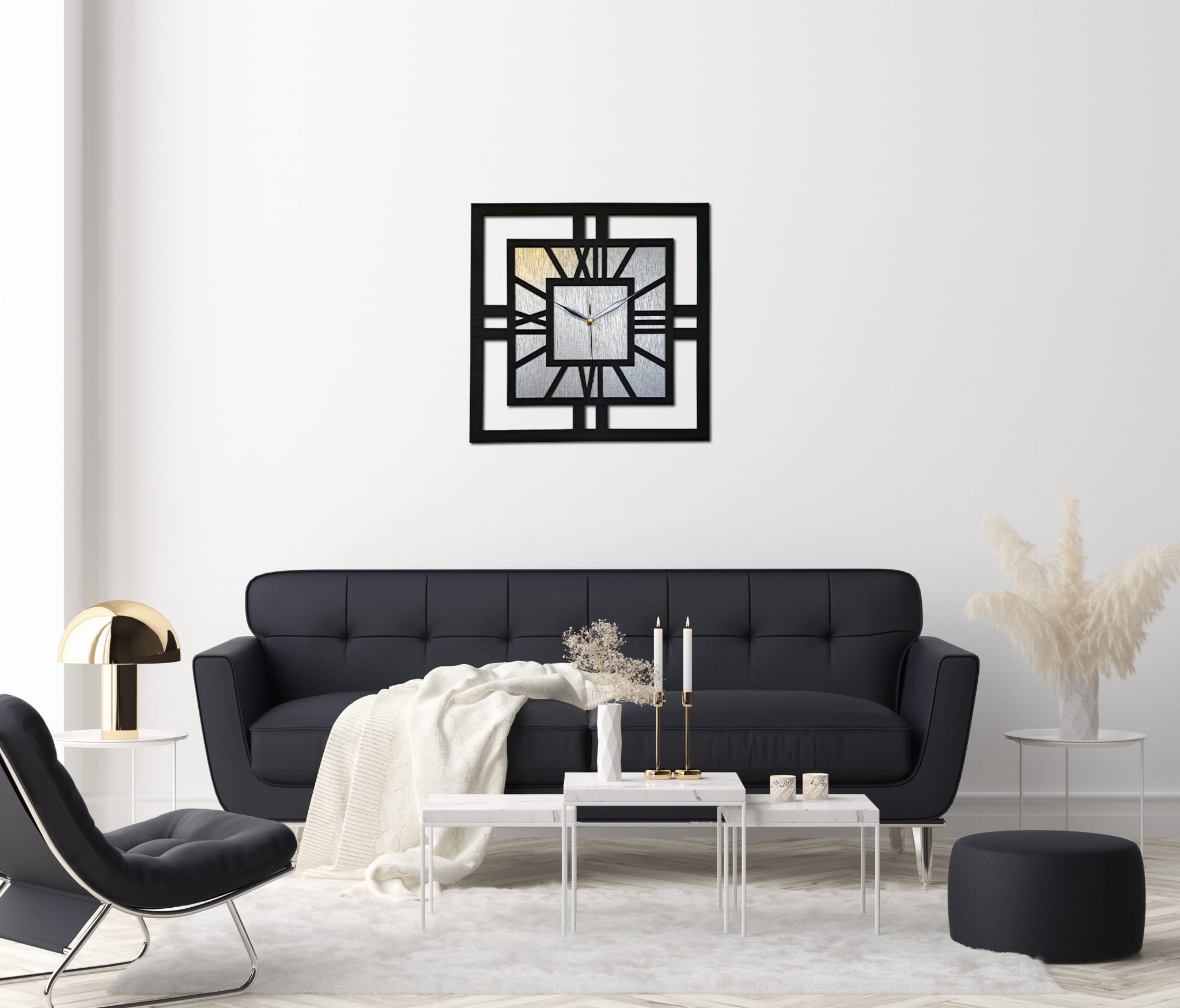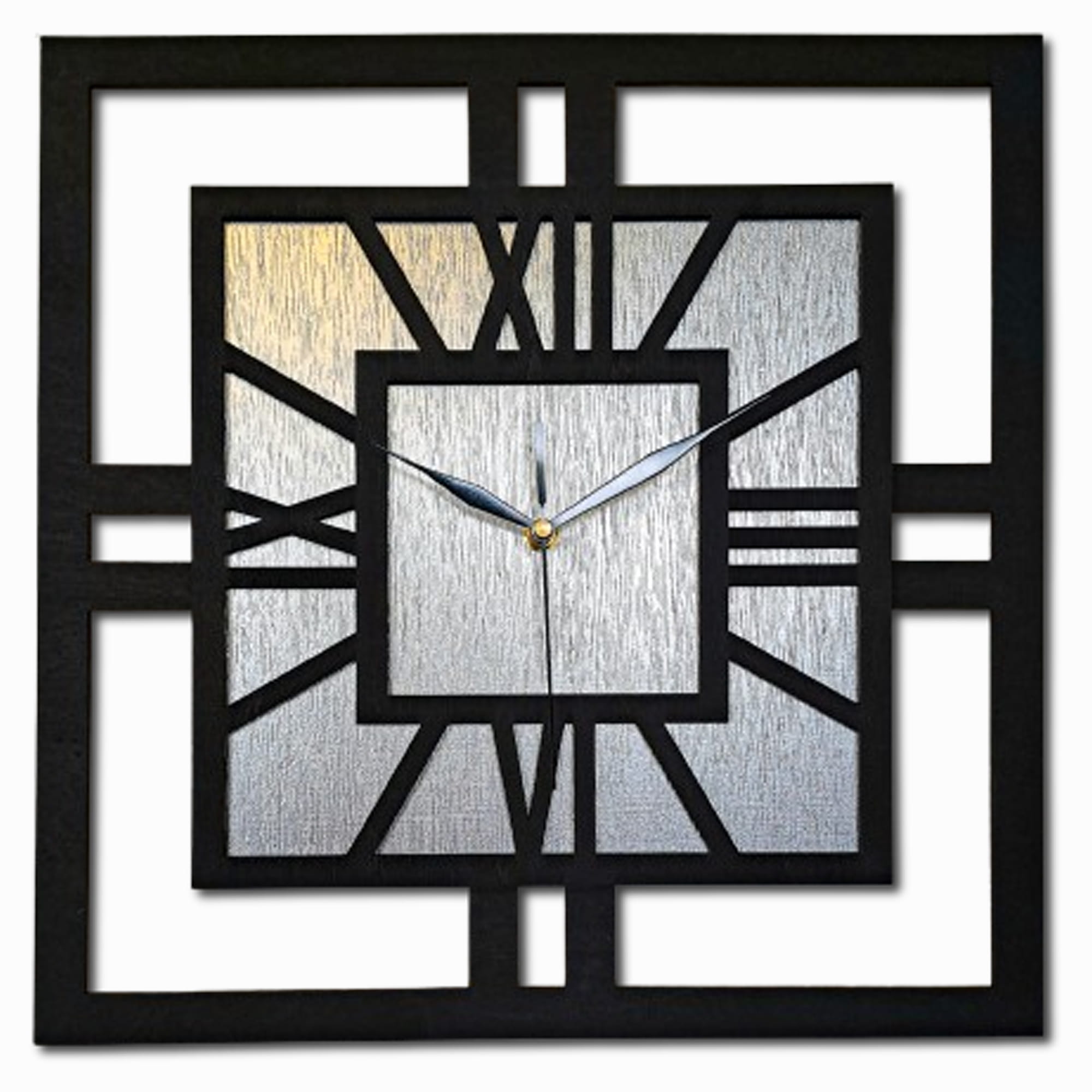 DEKORACYJNY DREWNIANY ZEGAR, NOWOCZESNY, LOFT, STYL INDUSTRIALNY, KWADRAT, DREWNO,MINIMALISTYCZNY, SREBRNY, 3 ROZMIARY
