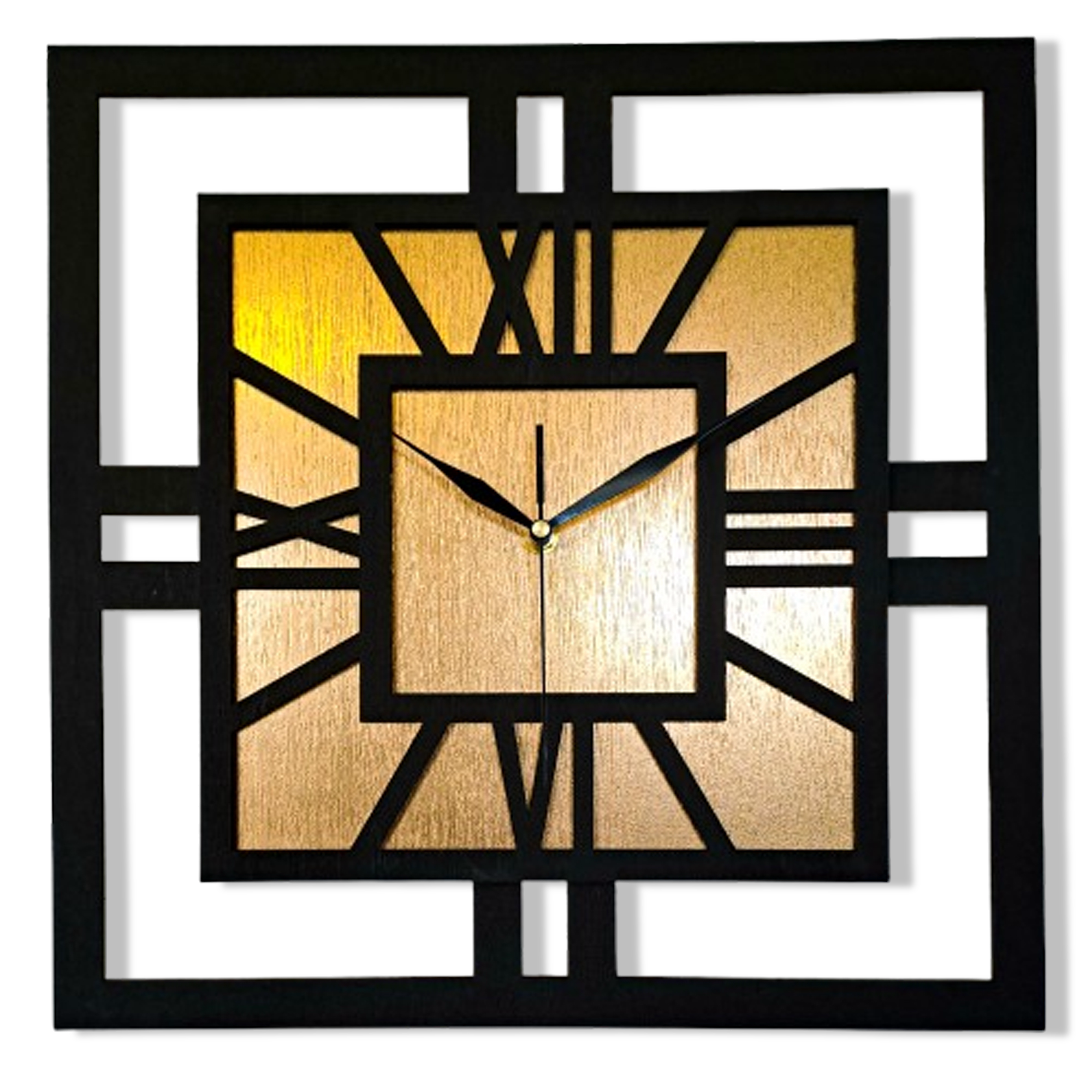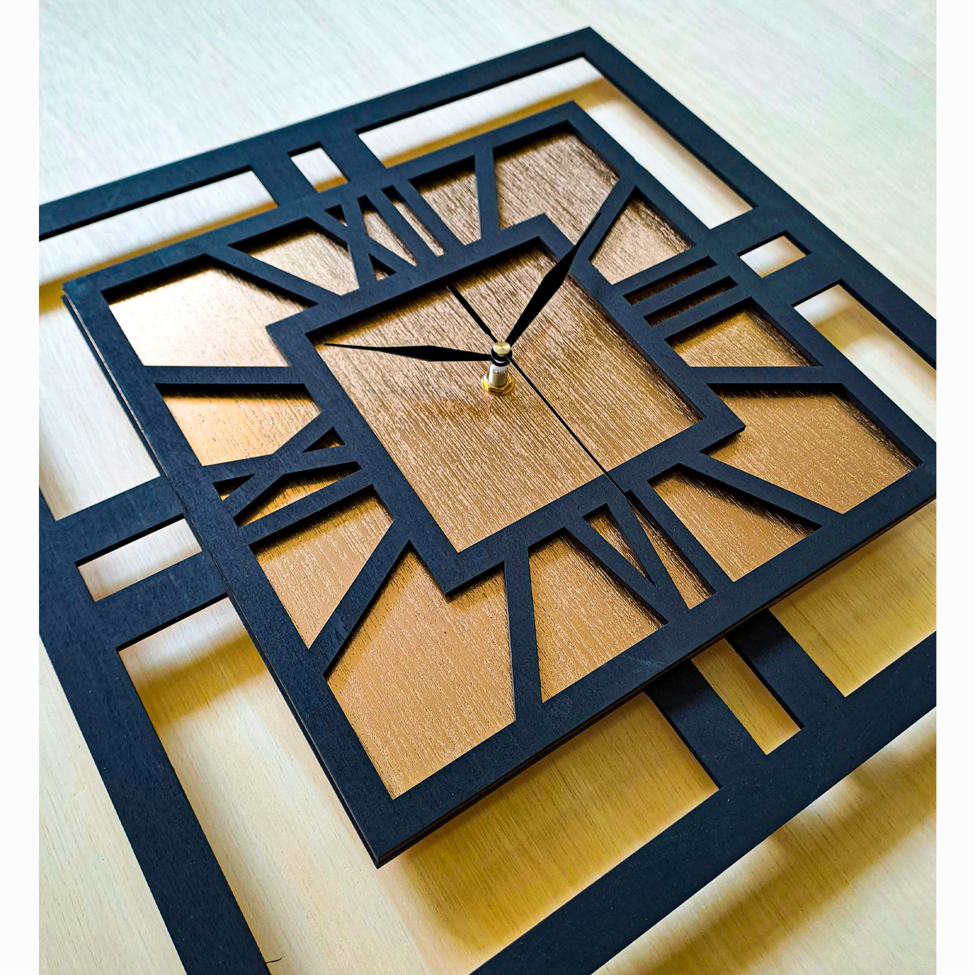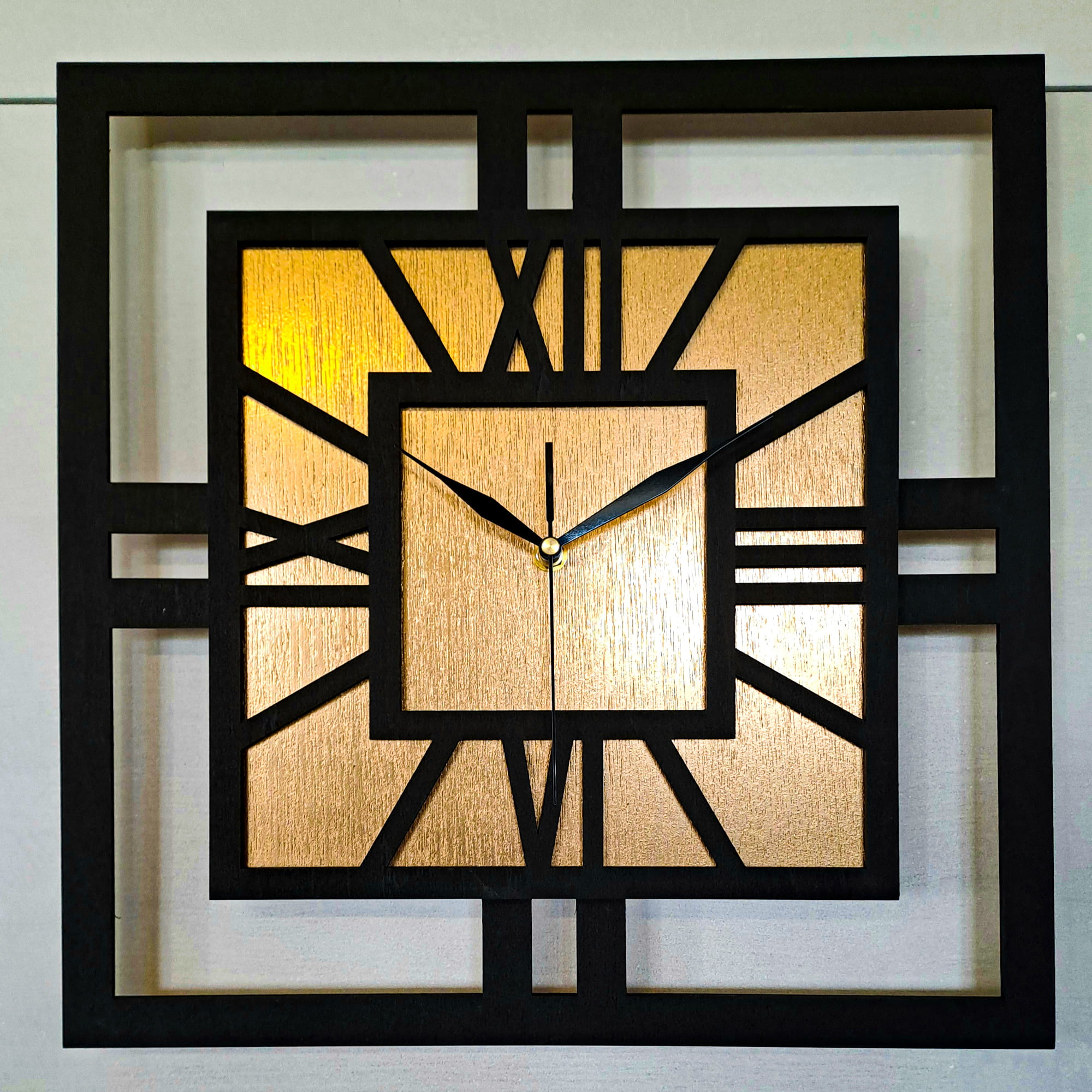 DEKORACYJNY DREWNIANY ZEGAR, NOWOCZESNY, LOFT, STYL INDUSTRIALNY, KWADRAT, DREWNO,MINIMALISTYCZNY, ZŁOTY, 3 ROZMIARY