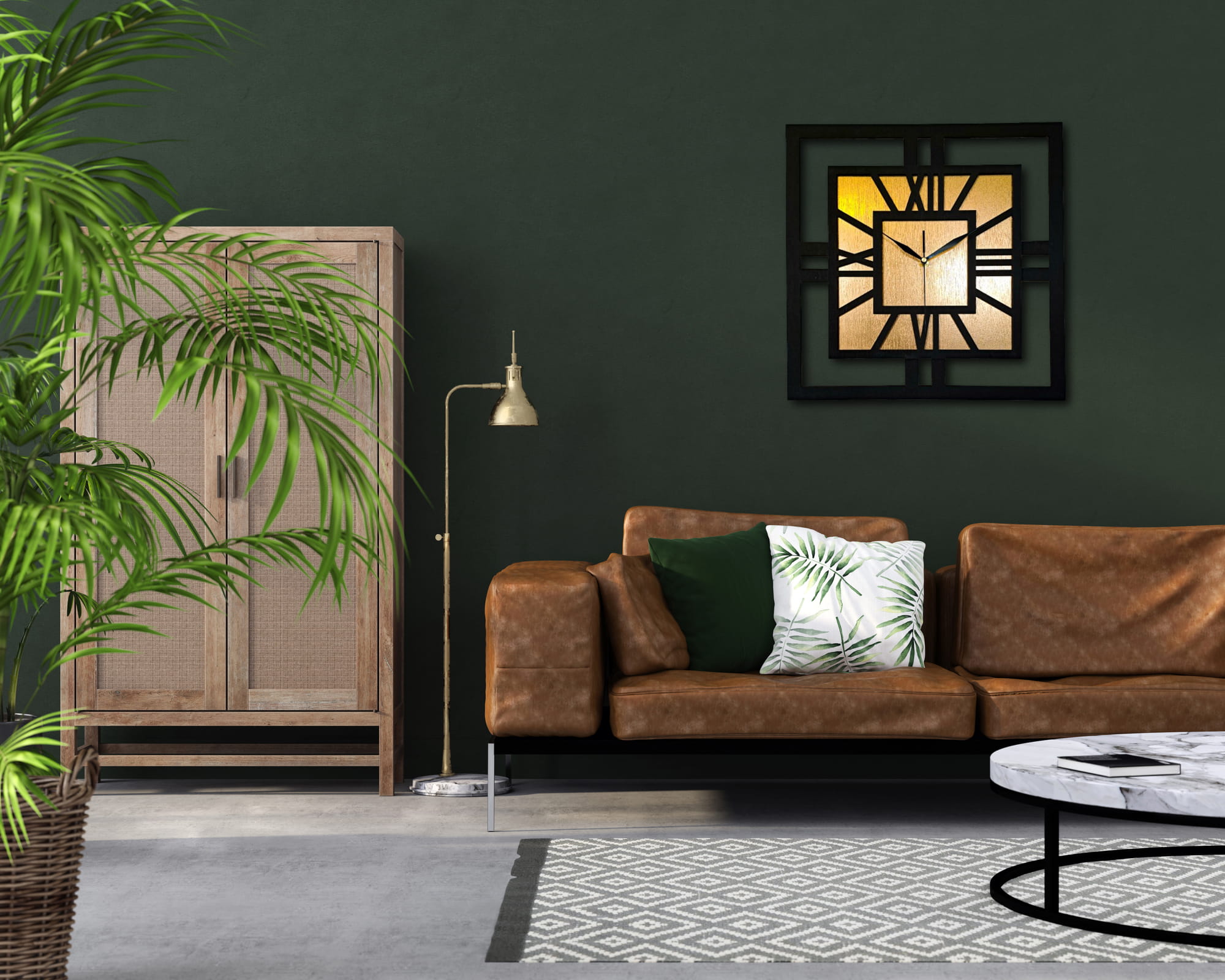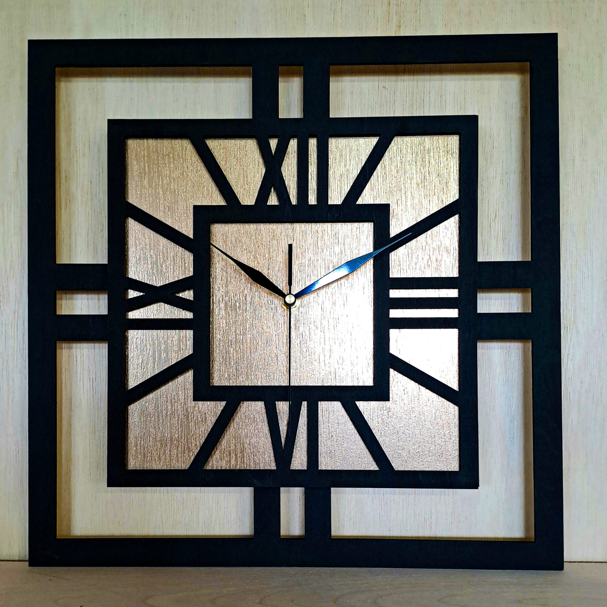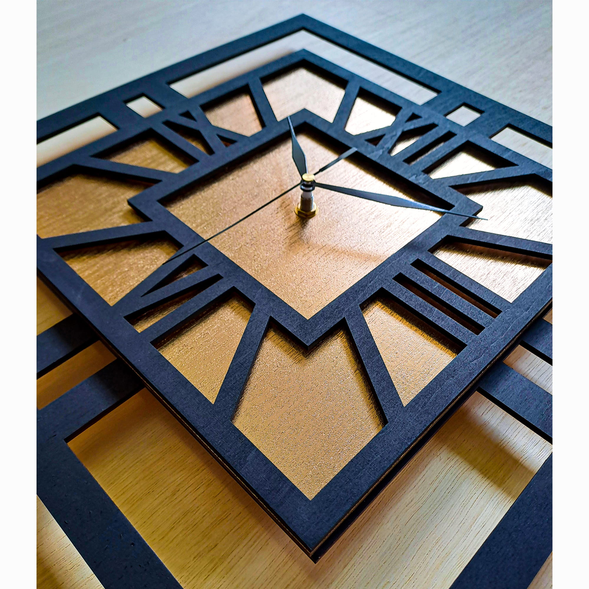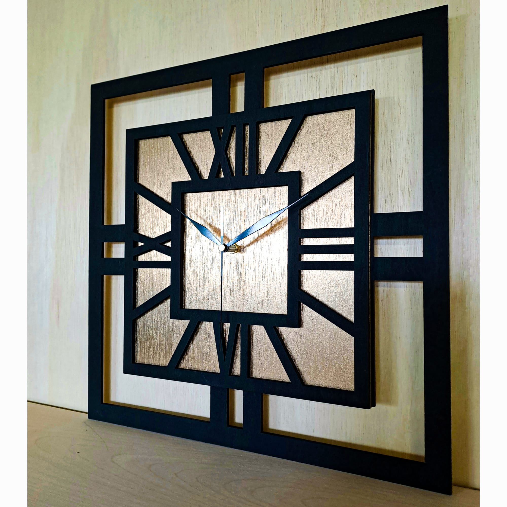 DEKORACYJNY DREWNIANY ZEGAR, NOWOCZESNY, LOFT, STYL INDUSTRIALNY, KWADRAT, DREWNO,MINIMALISTYCZNY, ZŁOTY, 3 ROZMIARY