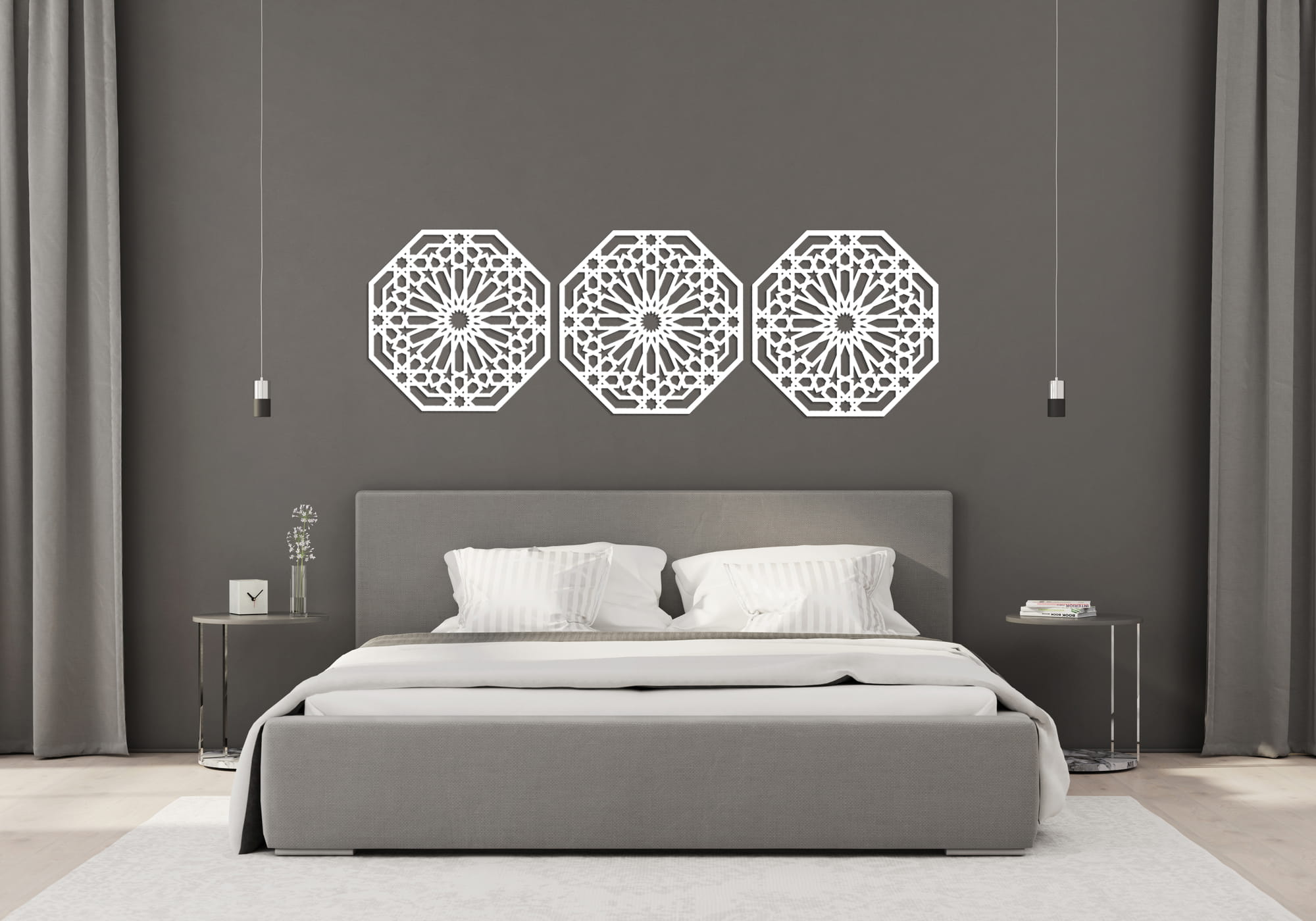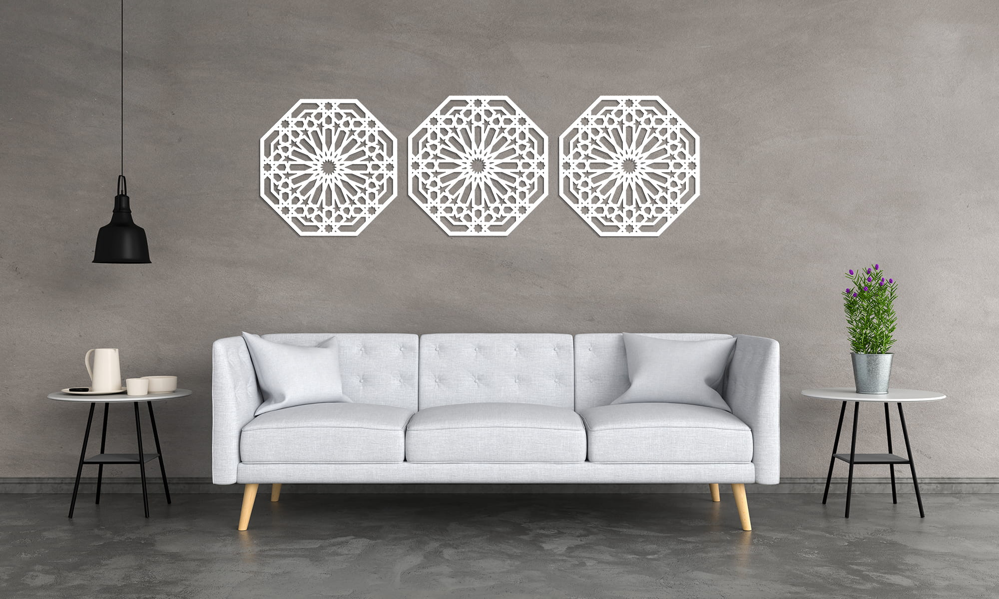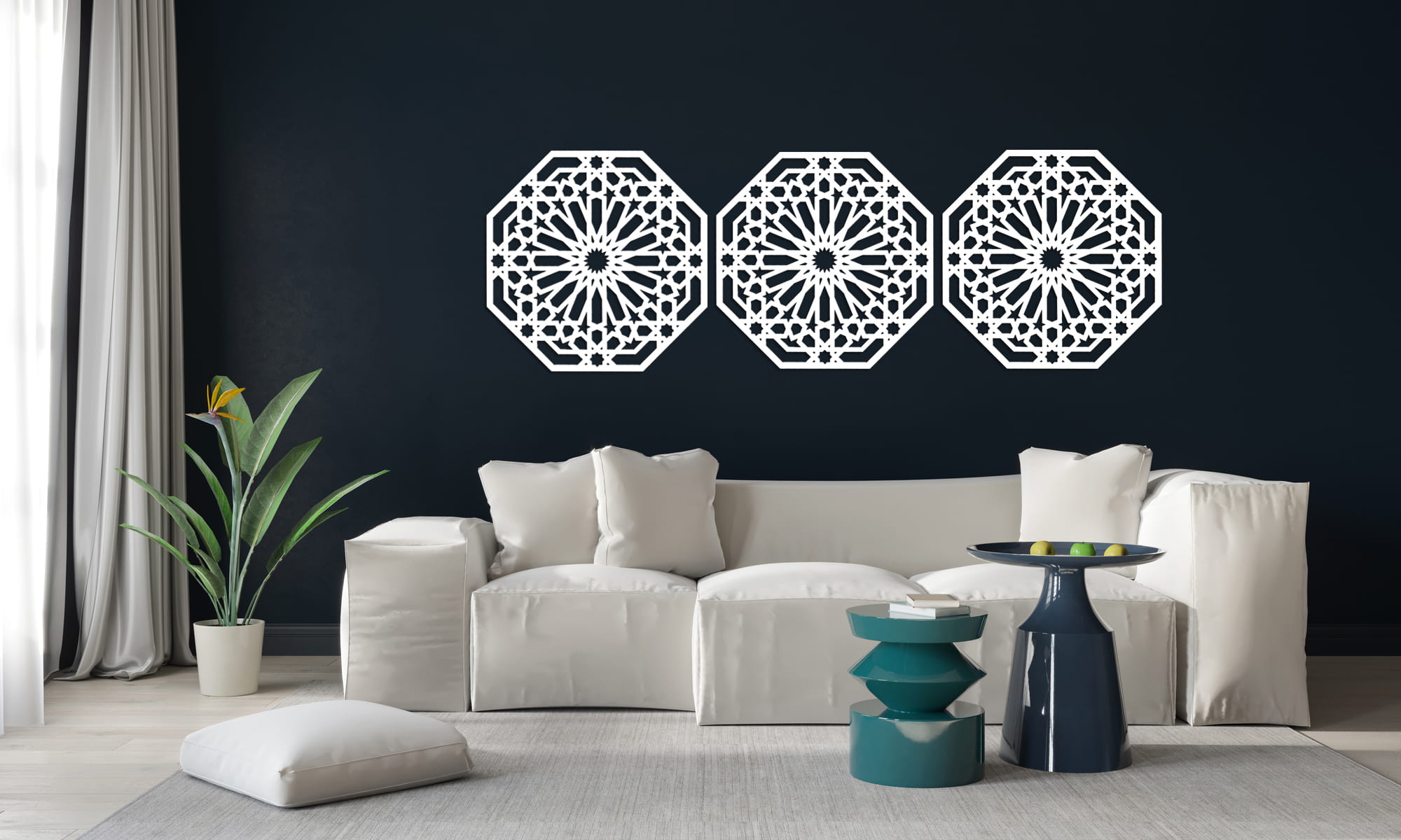 Dekoracyjny tryptyk inspirowany tradycyjnym ornamentem marokańskim wniesie do Twojego wnętrza nutę orientu. Oryginalna dekoracja ścienna 3D ozdobi Twoją ścianę w salonie czy w sypialni, idealna nad sofę, łóżko czy komodę. Stylowa dekoracja będąca unikalnym elementem Twojej aranżacji.