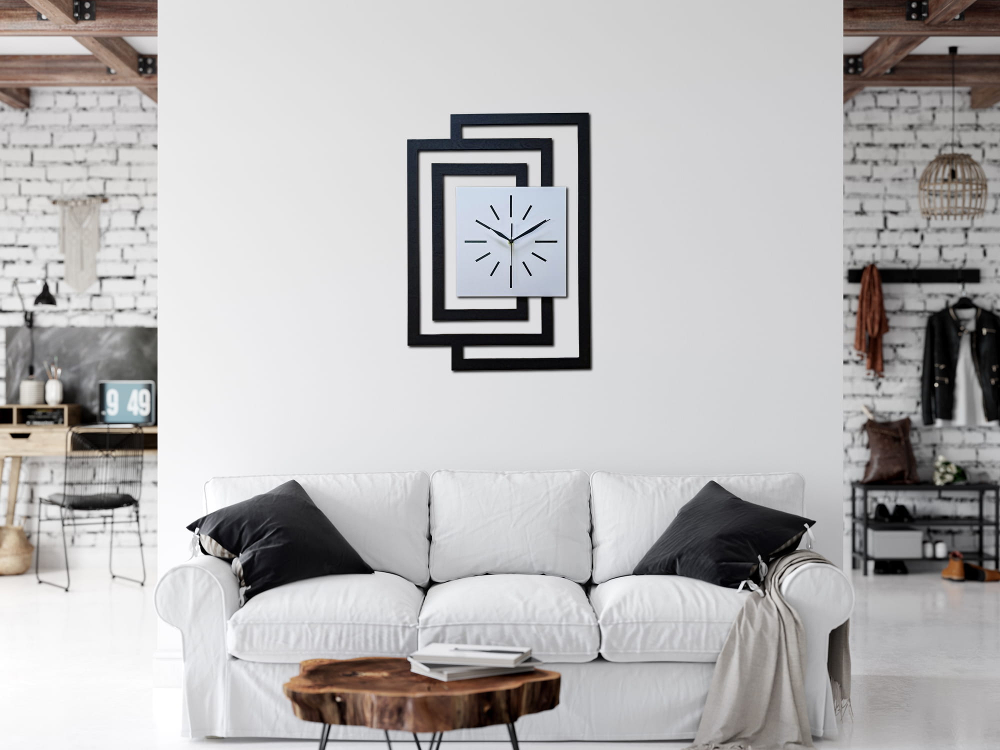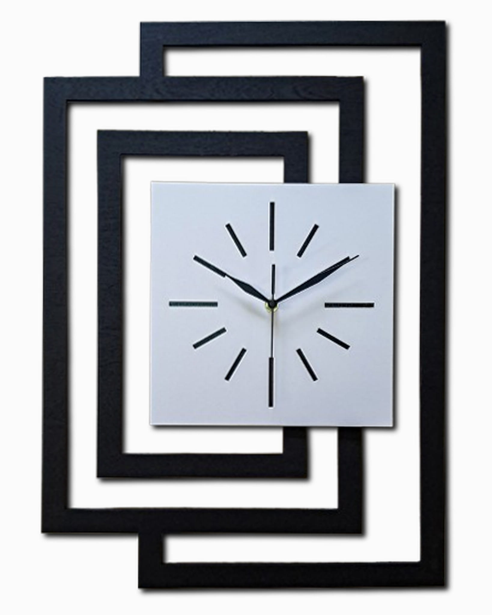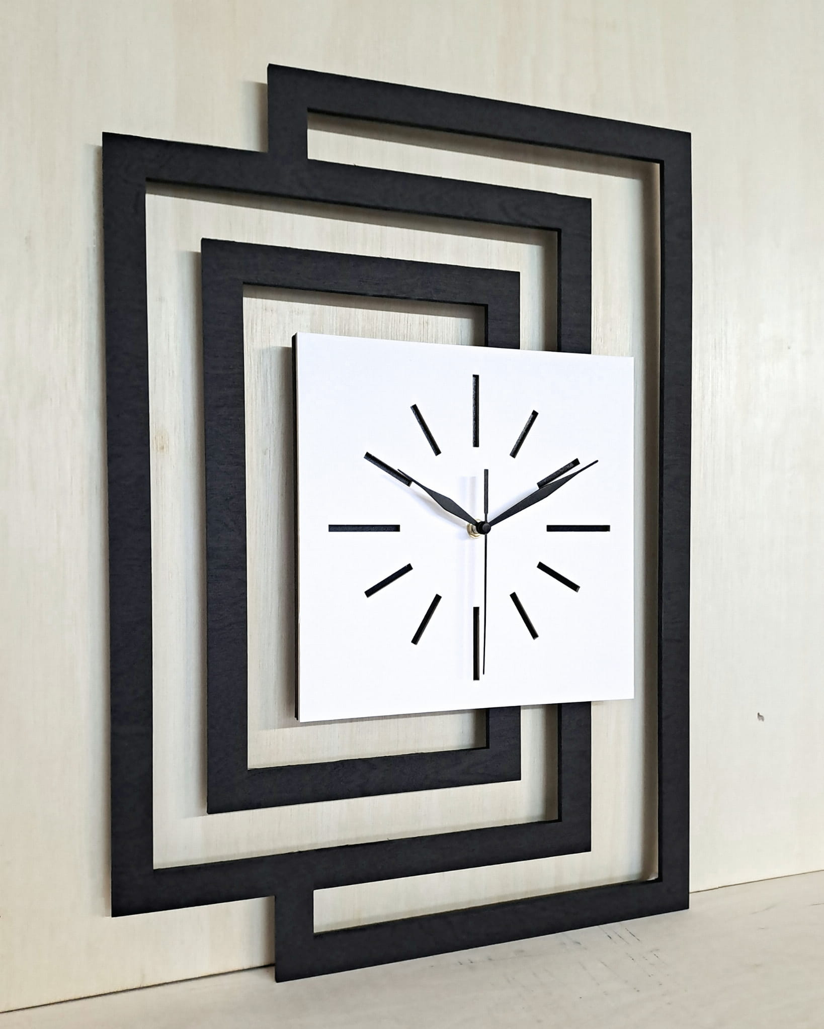 DUŻY, DEKORACYJNY, NOWOCZESNY ZEGAR ŚCIENNY,GEOMETRYCZNY, DO SALONU, MINIMALISTYCZNY, LOFT, HANDMADE, DREWNIANY,CZARNY/ BIAŁY, 43 x 60 cm, CICHY