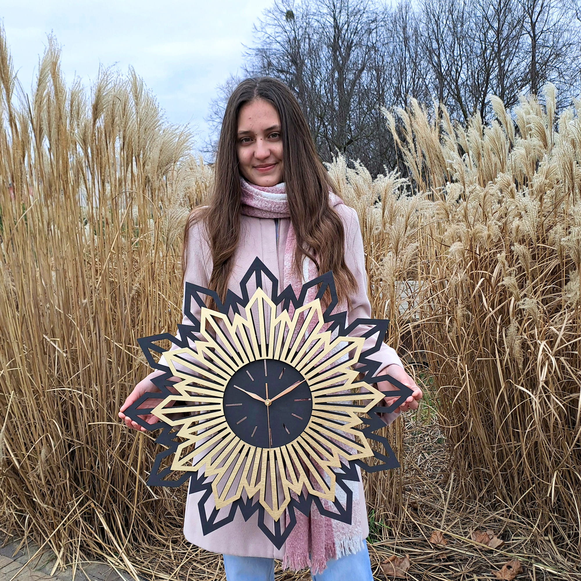 HANDMADE Twoj zegar wykonujemy w naszej pracowni ornamentów na zamówienie - wybierasz wzór, kolor i rozmiar a my wycinamy go laserowo, szlifujemy i malujemy ręcznie, potrzebujemy na ten proces 3 dni roboczych aby był gotowy do wysyłki.