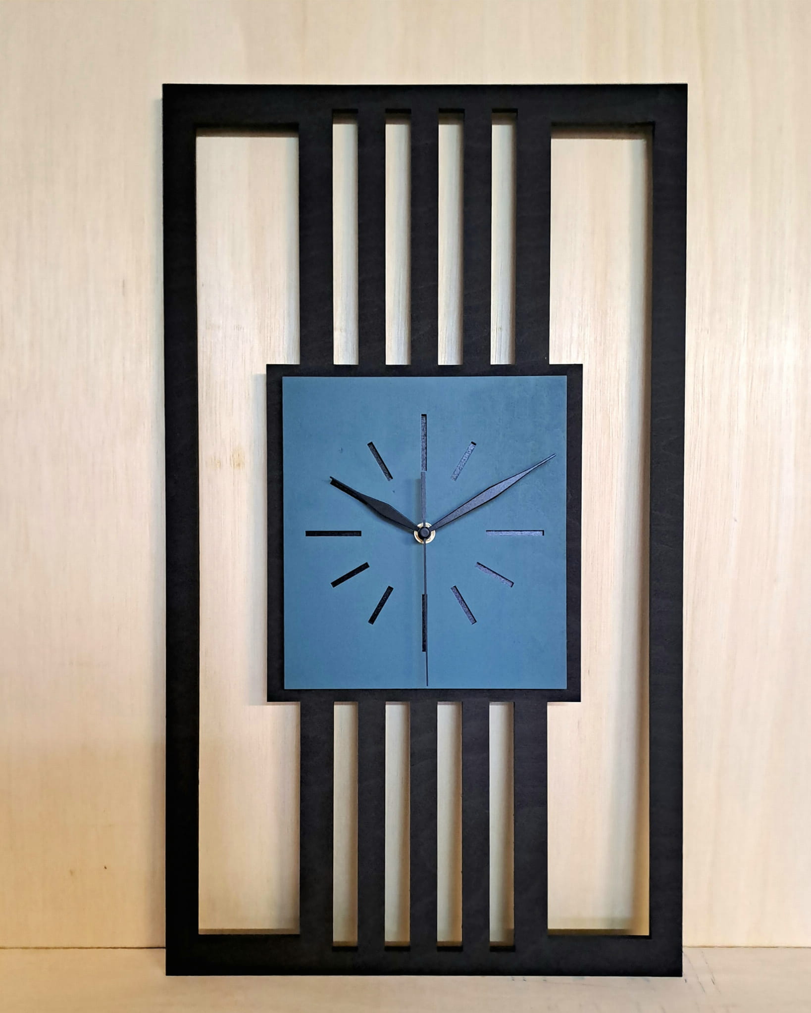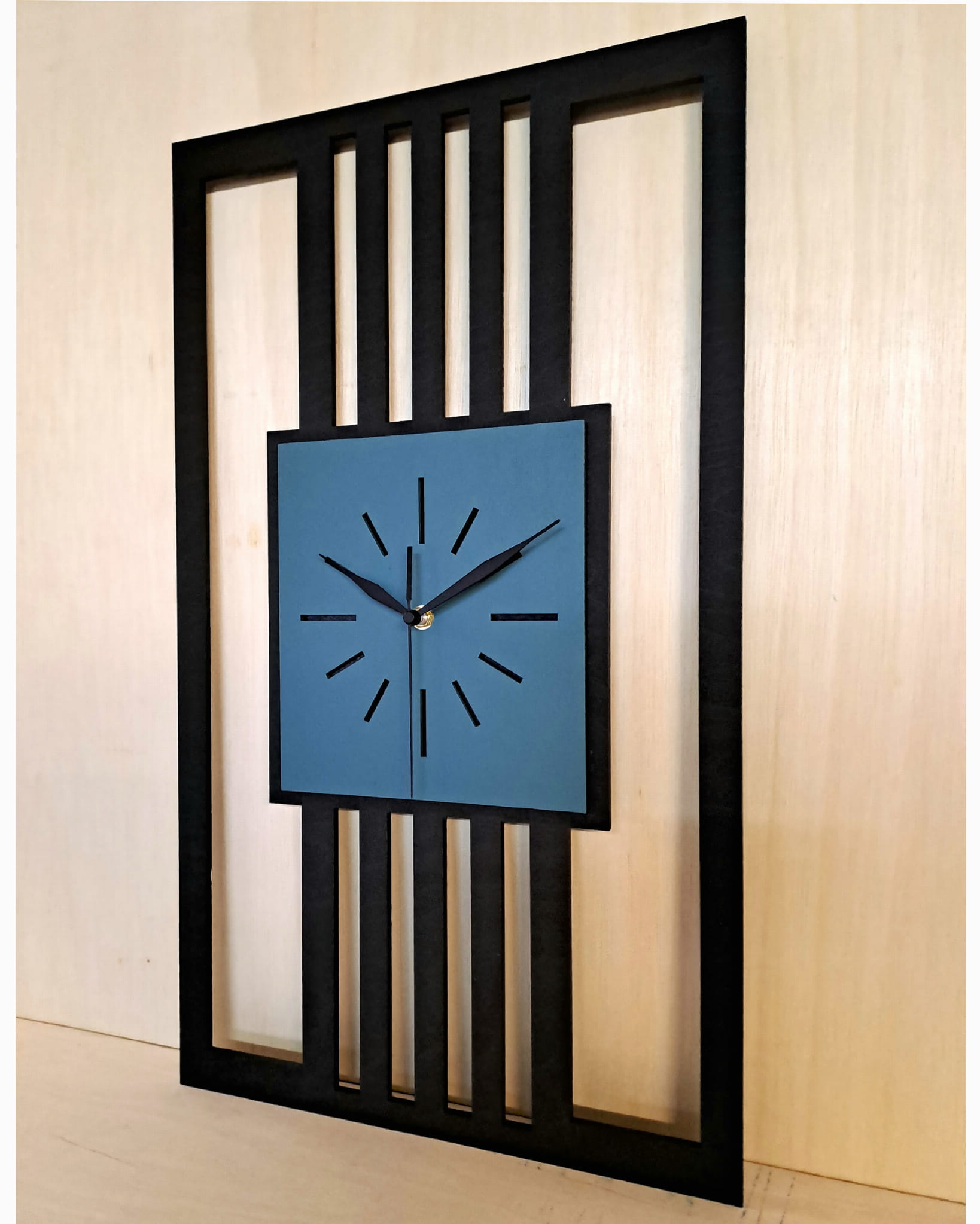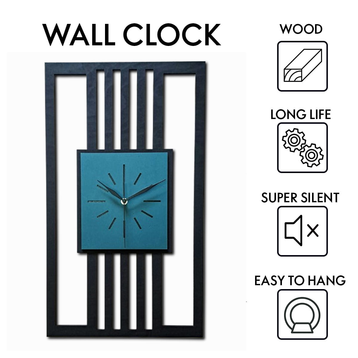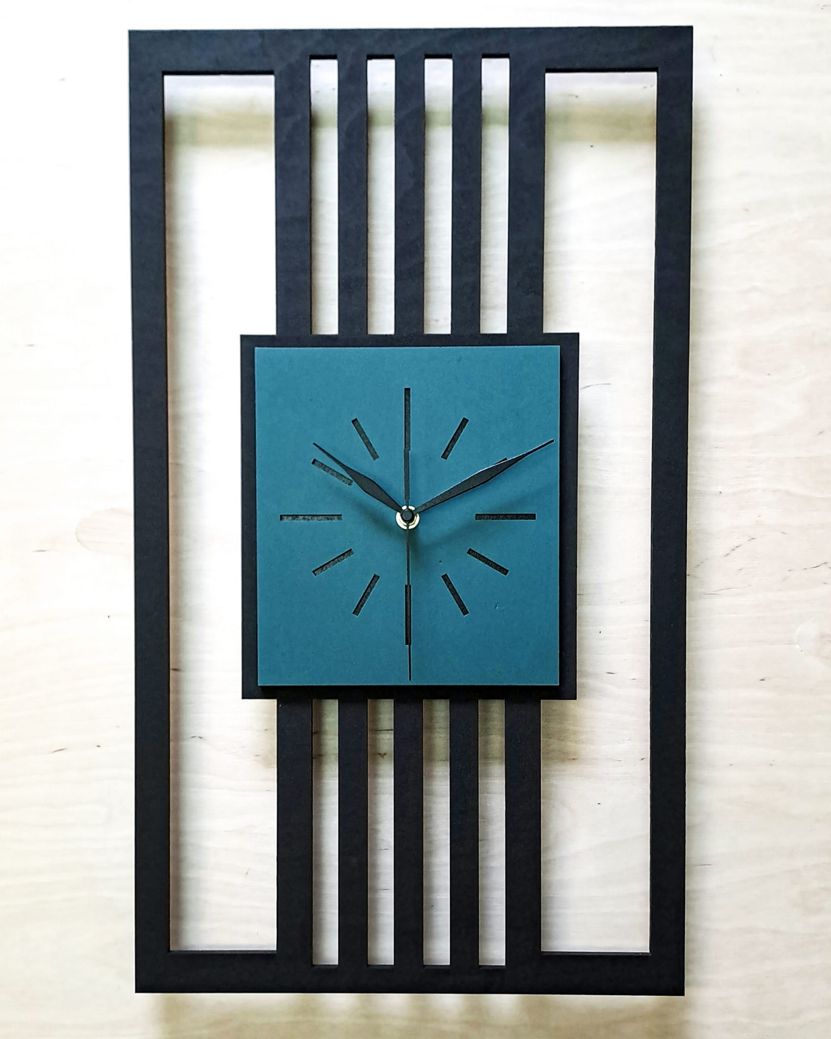 DUŻY, MINIMALISTYCZNY, NOWOCZESNY ZEGAR ŚCIENNY, LAMELE, INDUSTRIALNY, GEOMETRYCZNY, DO SALONU, MINIMALISTYCZNY, LOFT, HANDMADE, DREWNIANY, 35 x 60 cm, PIONOWY, CZARNY/ CIEMNO ZIELONY, CICHY