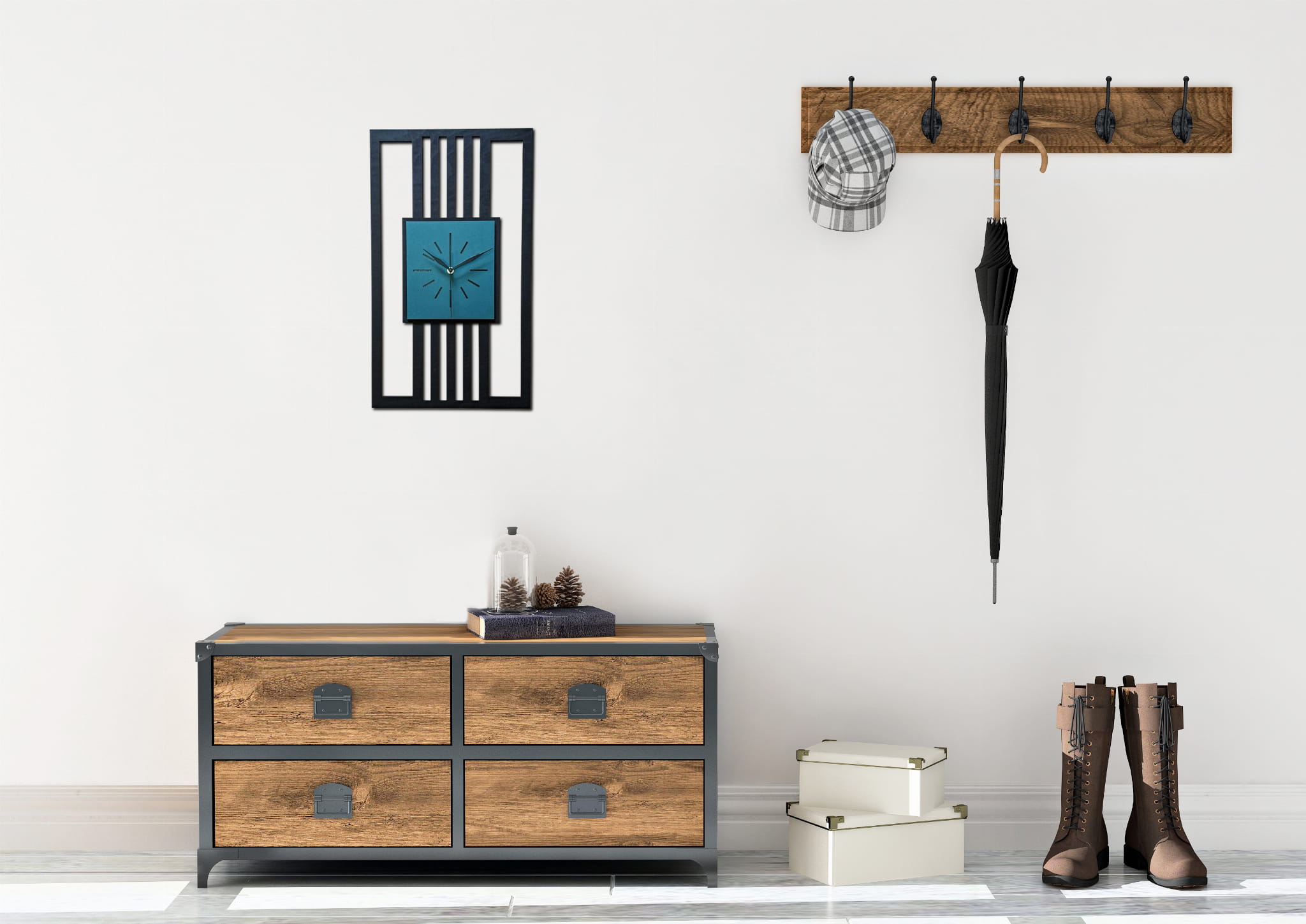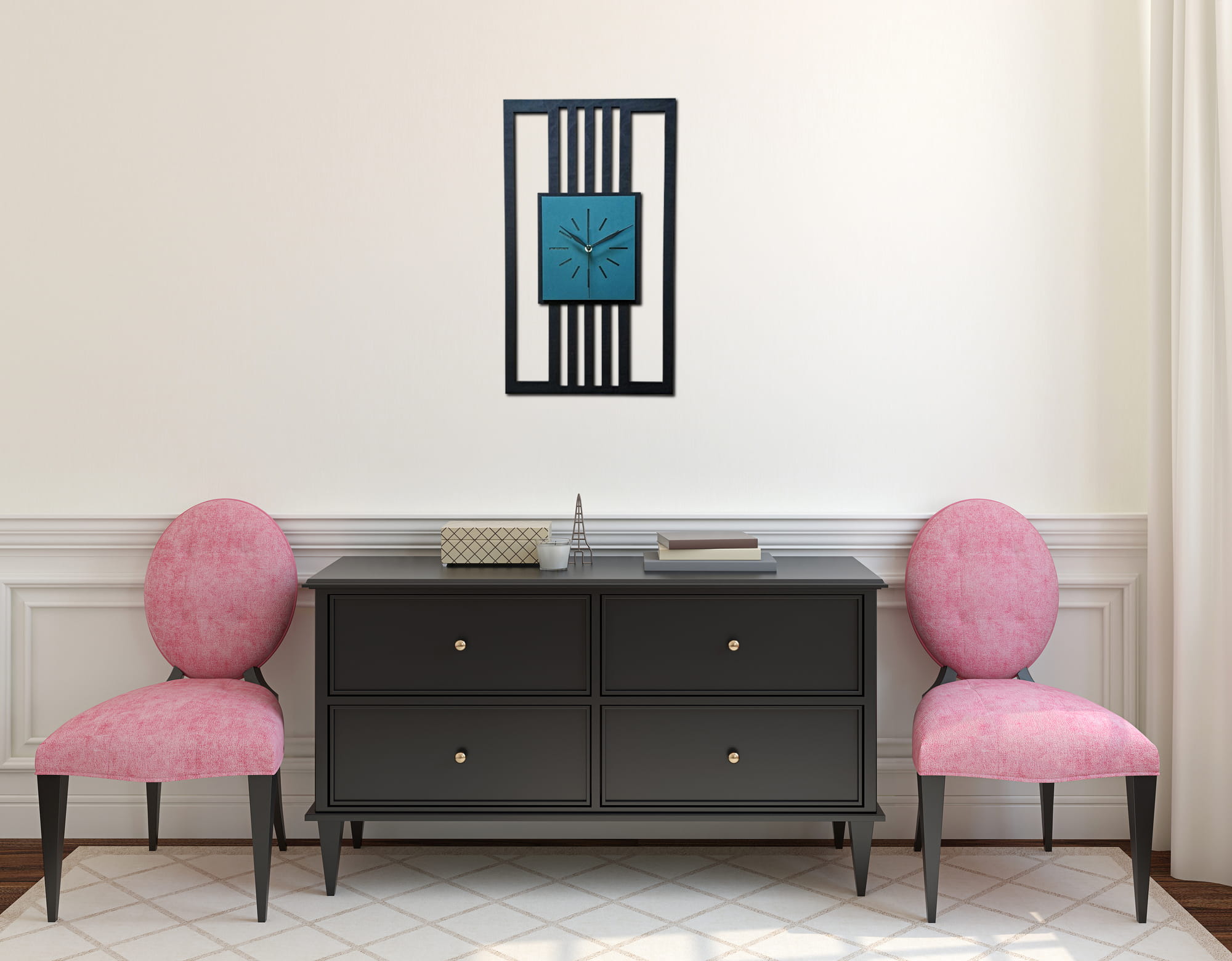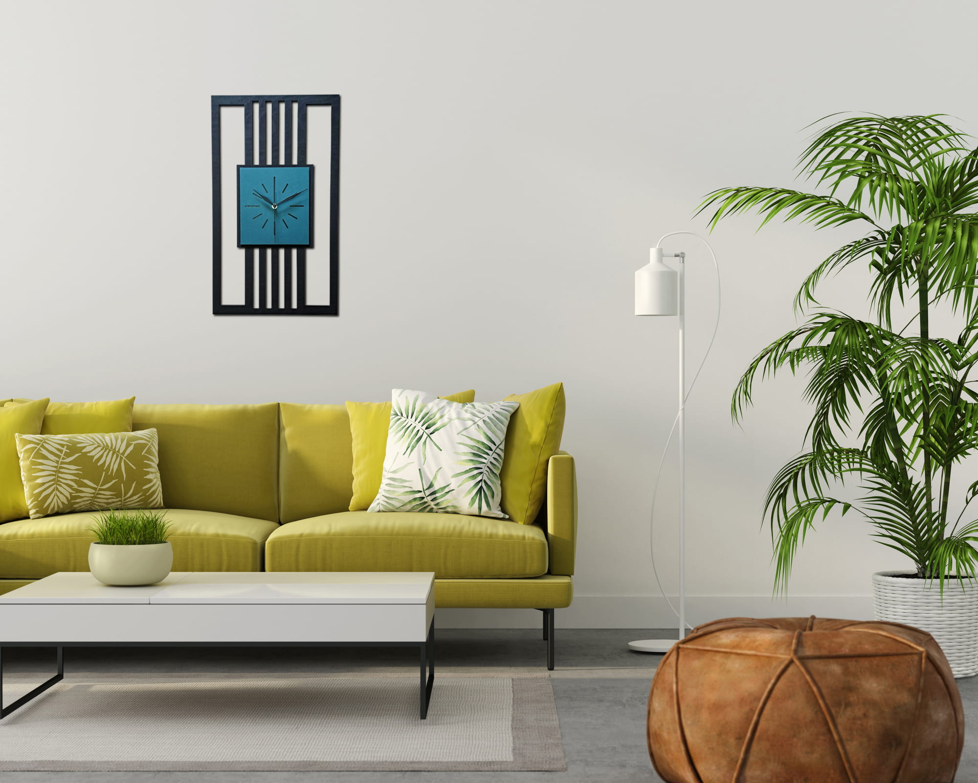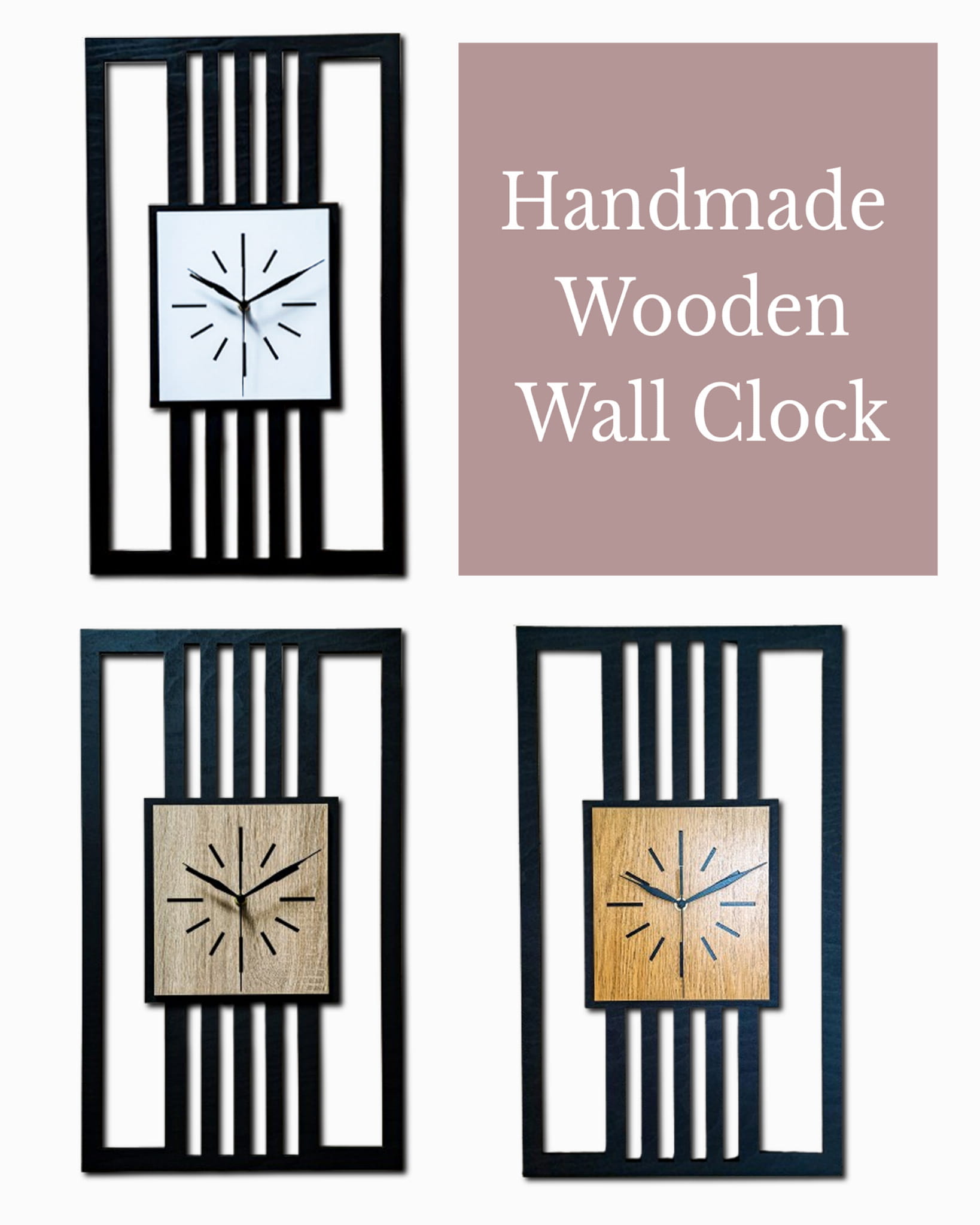 DUŻY, MINIMALISTYCZNY, NOWOCZESNY ZEGAR ŚCIENNY, LAMELE, INDUSTRIALNY, GEOMETRYCZNY, DO SALONU, MINIMALISTYCZNY, LOFT, HANDMADE, DREWNIANY, 35 x 60 cm, PIONOWY, CZARNY/ CIEMNO ZIELONY, CICHY