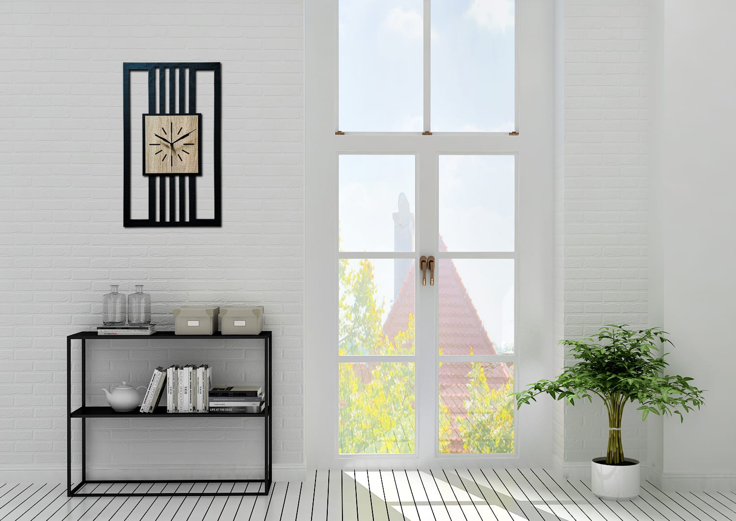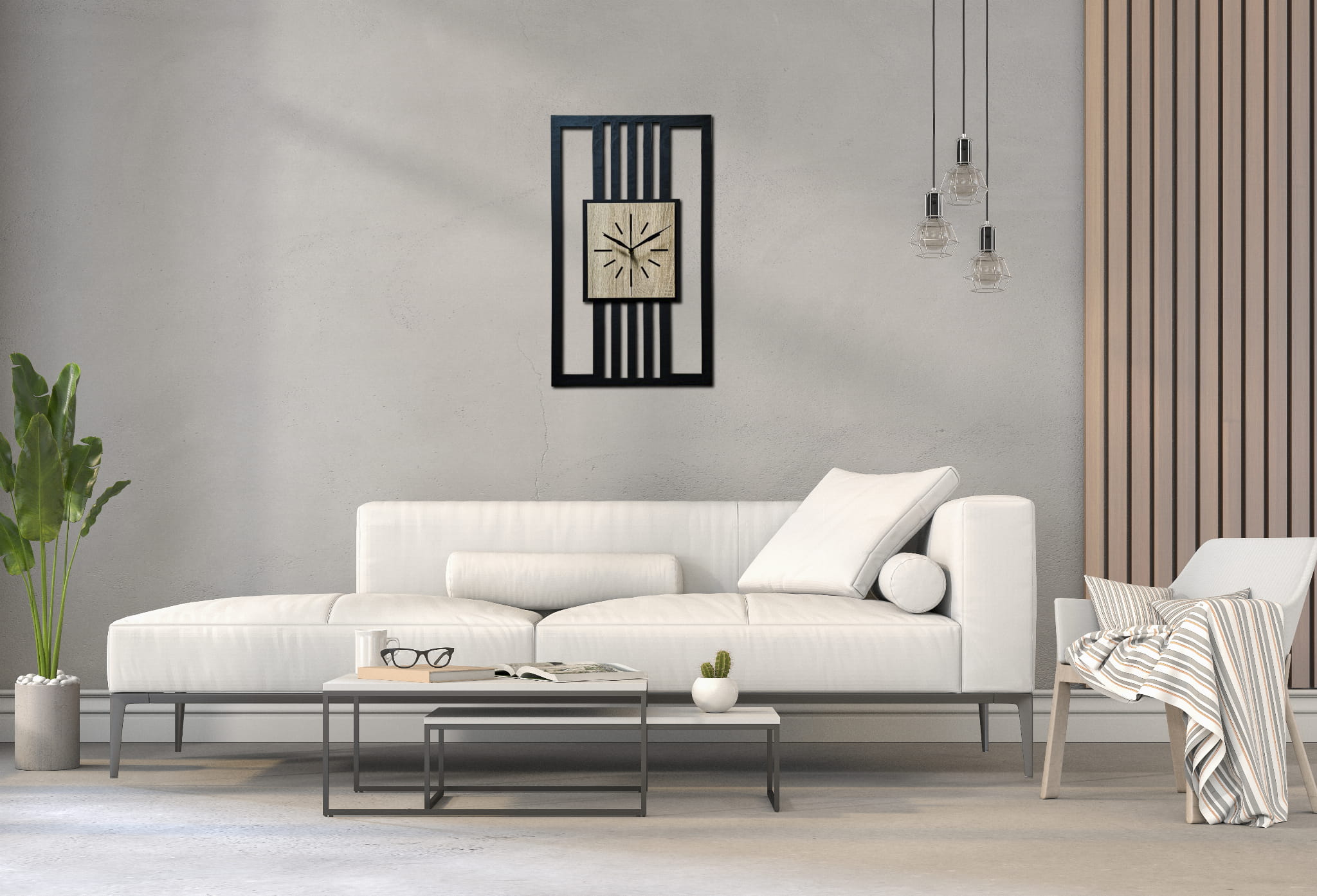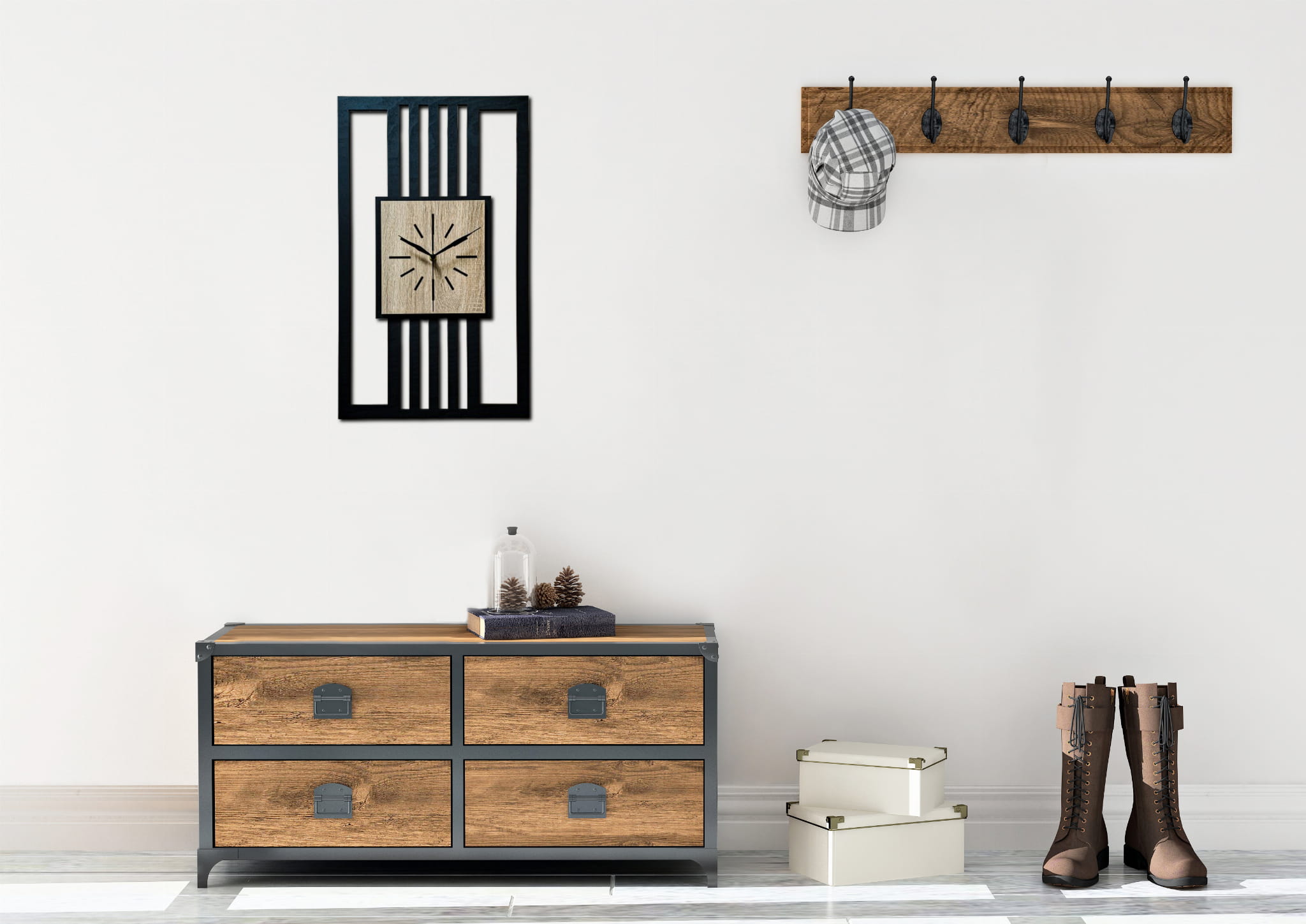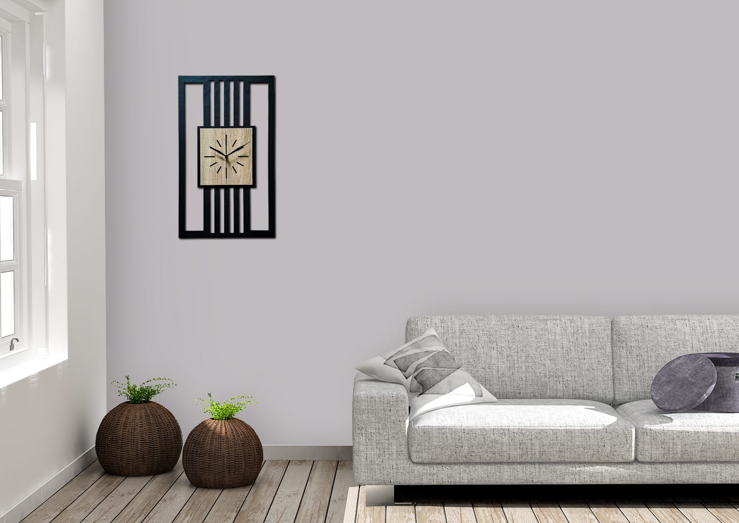 DUŻY, MINIMALISTYCZNY, NOWOCZESNY ZEGAR ŚCIENNY, LAMELE, INDUSTRIALNY, GEOMETRYCZNY, DO SALONU, MINIMALISTYCZNY, LOFT, HANDMADE, DREWNIANY, 35 x 60 cm, PIONOWY, CZARNY/ DĄB SONOMA, CICHY
