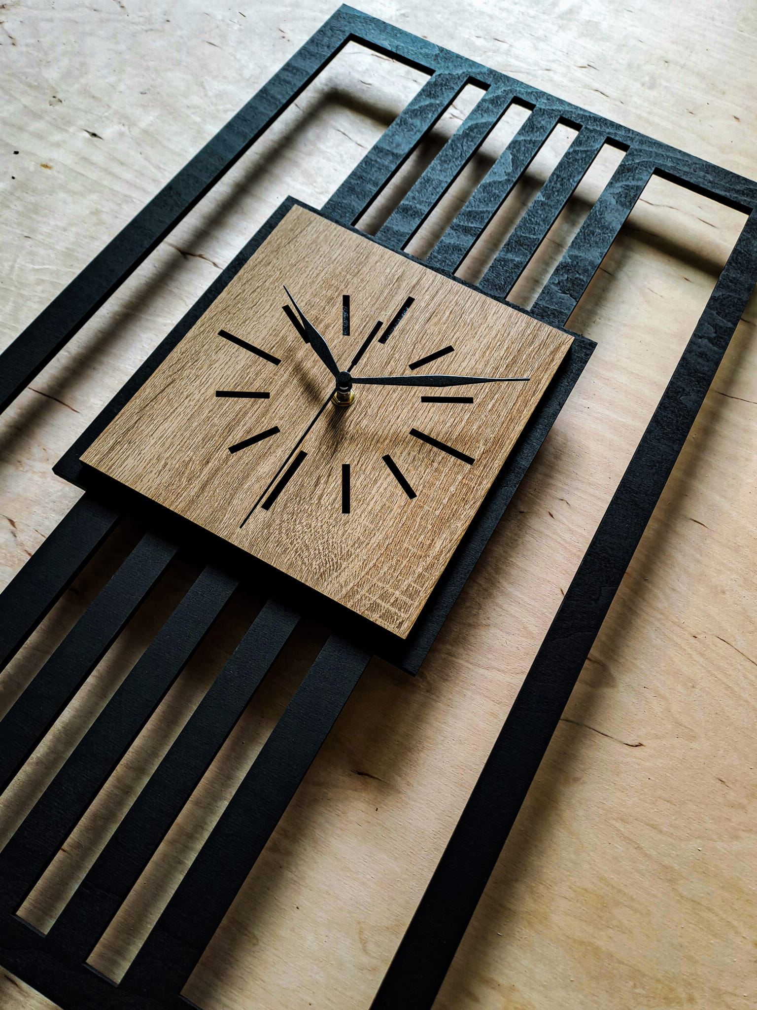 MATERIAŁ: Zegar wykonany z wysokiej jakości, naturalnej sklejki brzozowej o grubości 5 mm ( 3 warstwy ) pomalowanej na wybrany kolor ekologiczną, wodną farbą ( jedna warstwa fornirowana dębem sonoma )