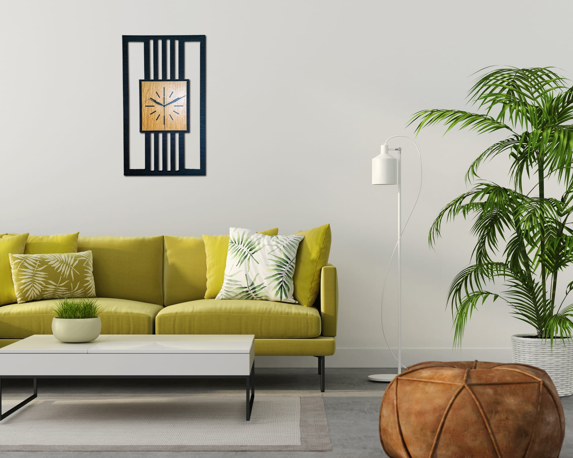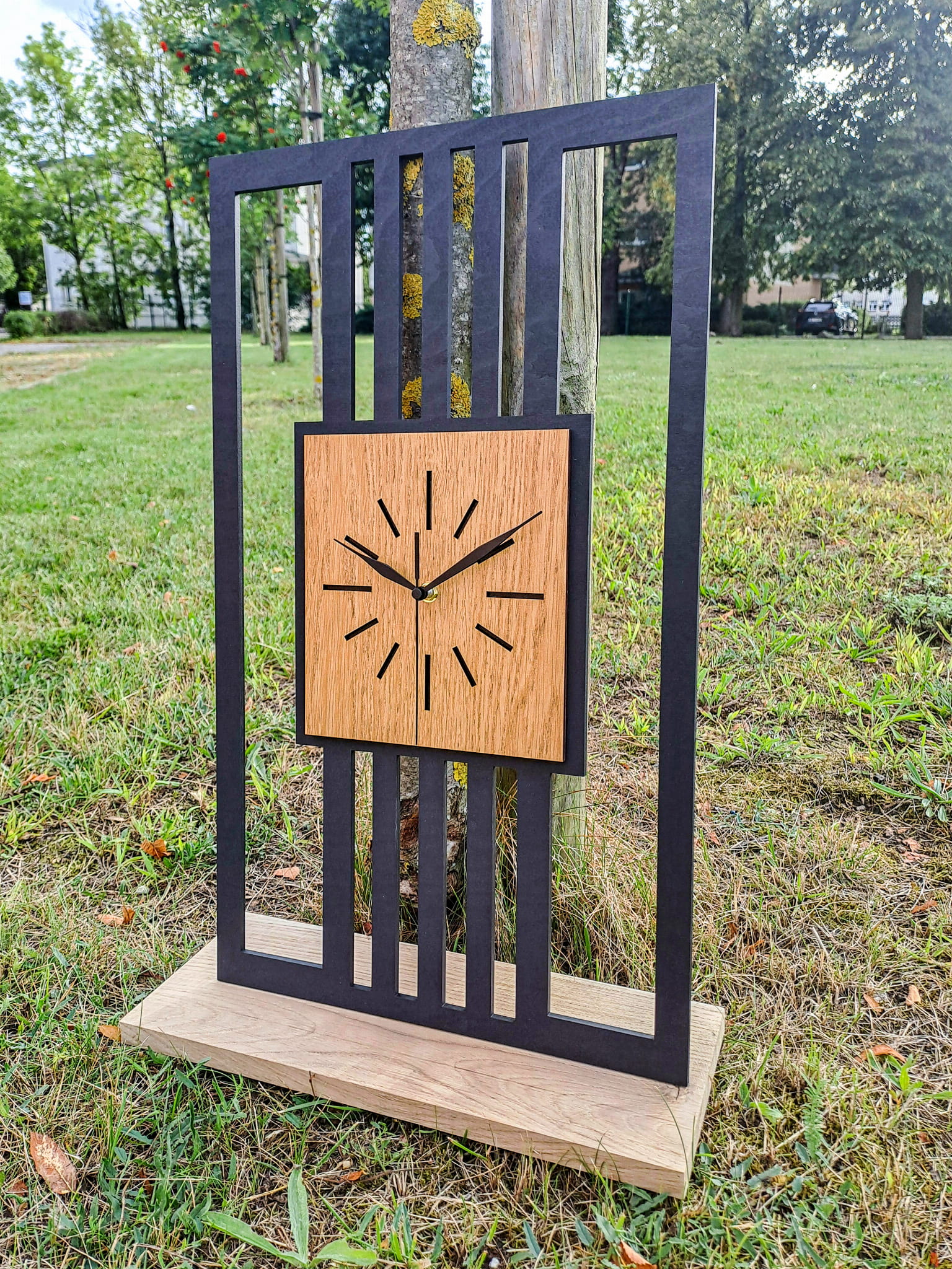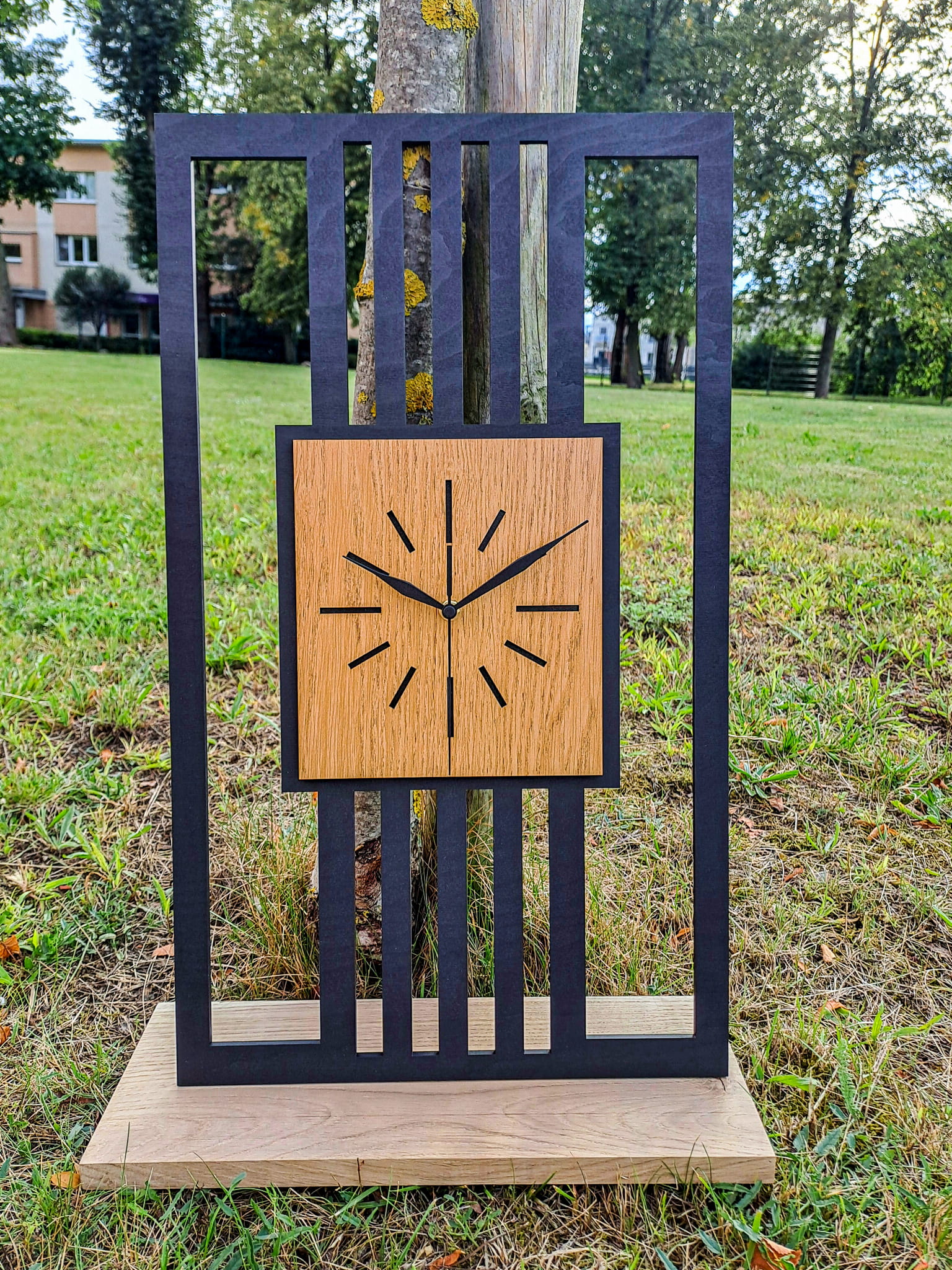 DUŻY, MINIMALISTYCZNY, NOWOCZESNY ZEGAR ŚCIENNY, LAMELE, INDUSTRIALNY, GEOMETRYCZNY, DO SALONU, MINIMALISTYCZNY, LOFT, HANDMADE, DREWNIANY, 35 x 60 cm, PIONOWY, CZARNY/ DĄB ZŁOTY, CICHY
