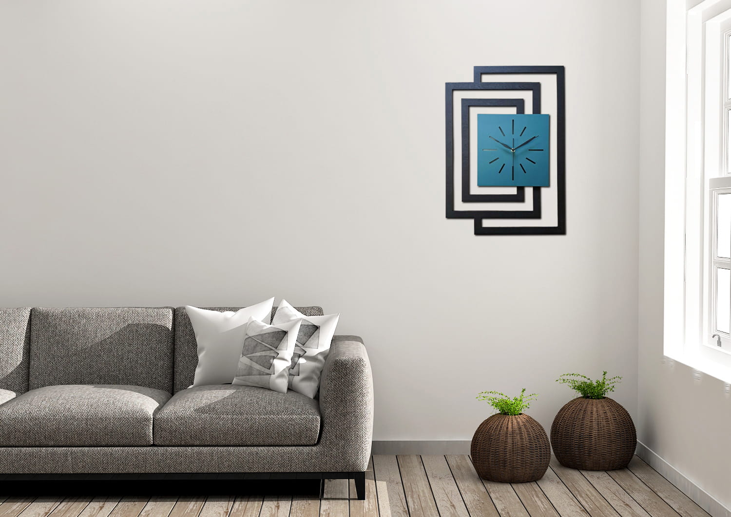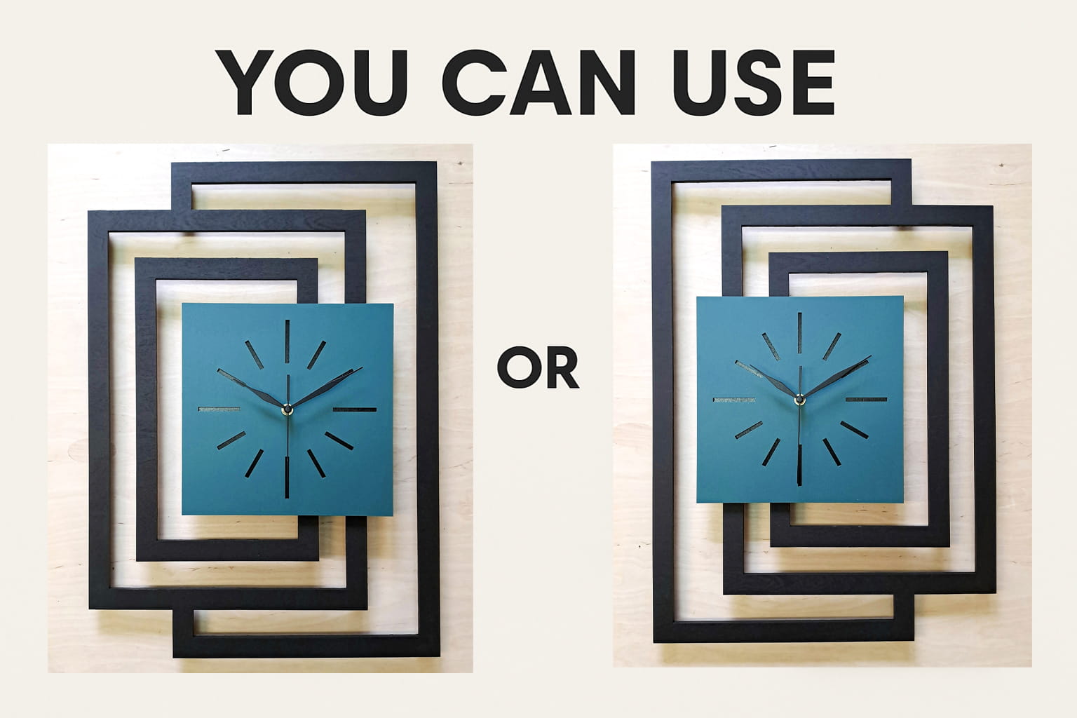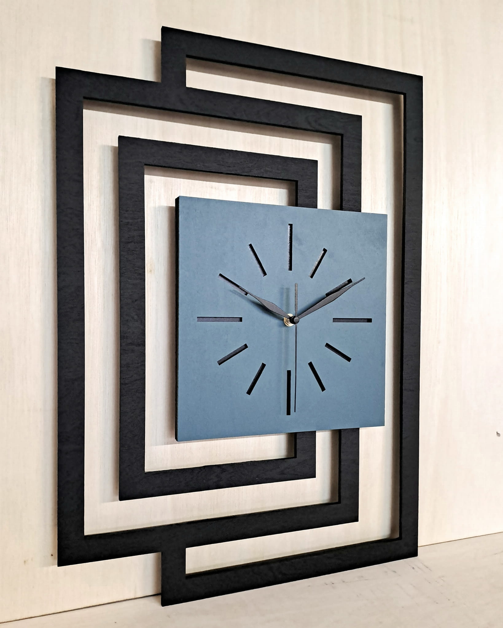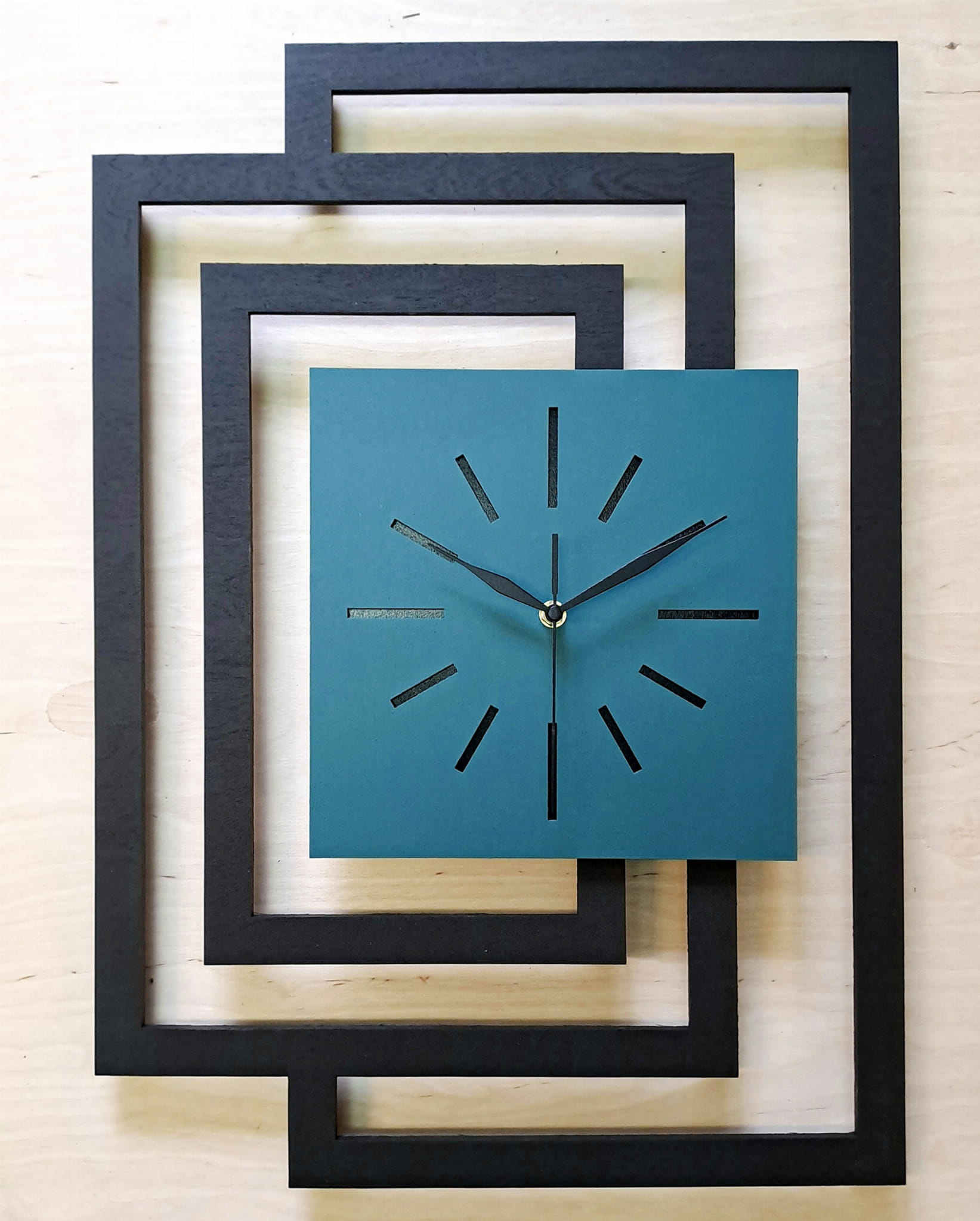 MATERIAŁ: Zegar wykonany z wysokiej jakości, naturalnej sklejki brzozowej o grubości 5 mm ( 3 warstwy ) pomalowanej na wybrany kolor ekologiczną, wodną farbą ( jedna warstwa sklejki fornirowana dębem )