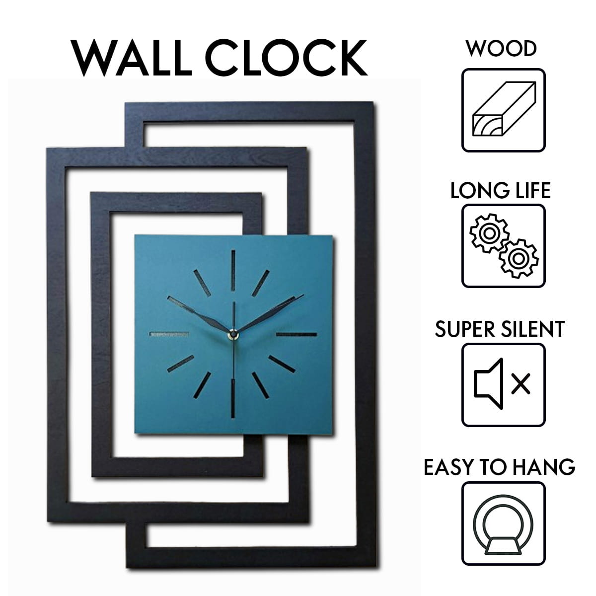 DUŻY, NOWOCZESNY, OZDOBNY ZEGAR ŚCIENNY, INDUSTRIALNY, GEOMETRYCZNY, DO SALONU, MINIMALISTYCZNY, LOFT, HANDMADE, DREWNIANY, CZARNY/CIEMNO ZIELONY, CICHY