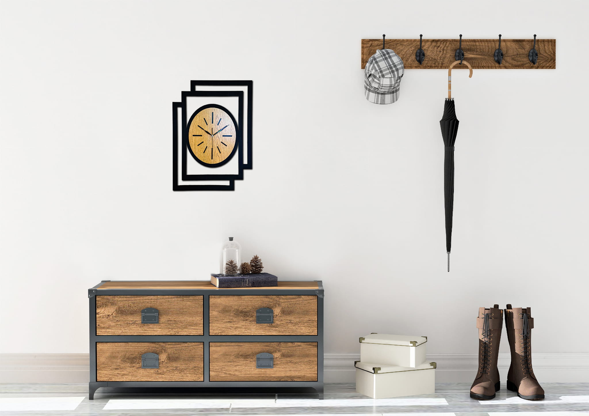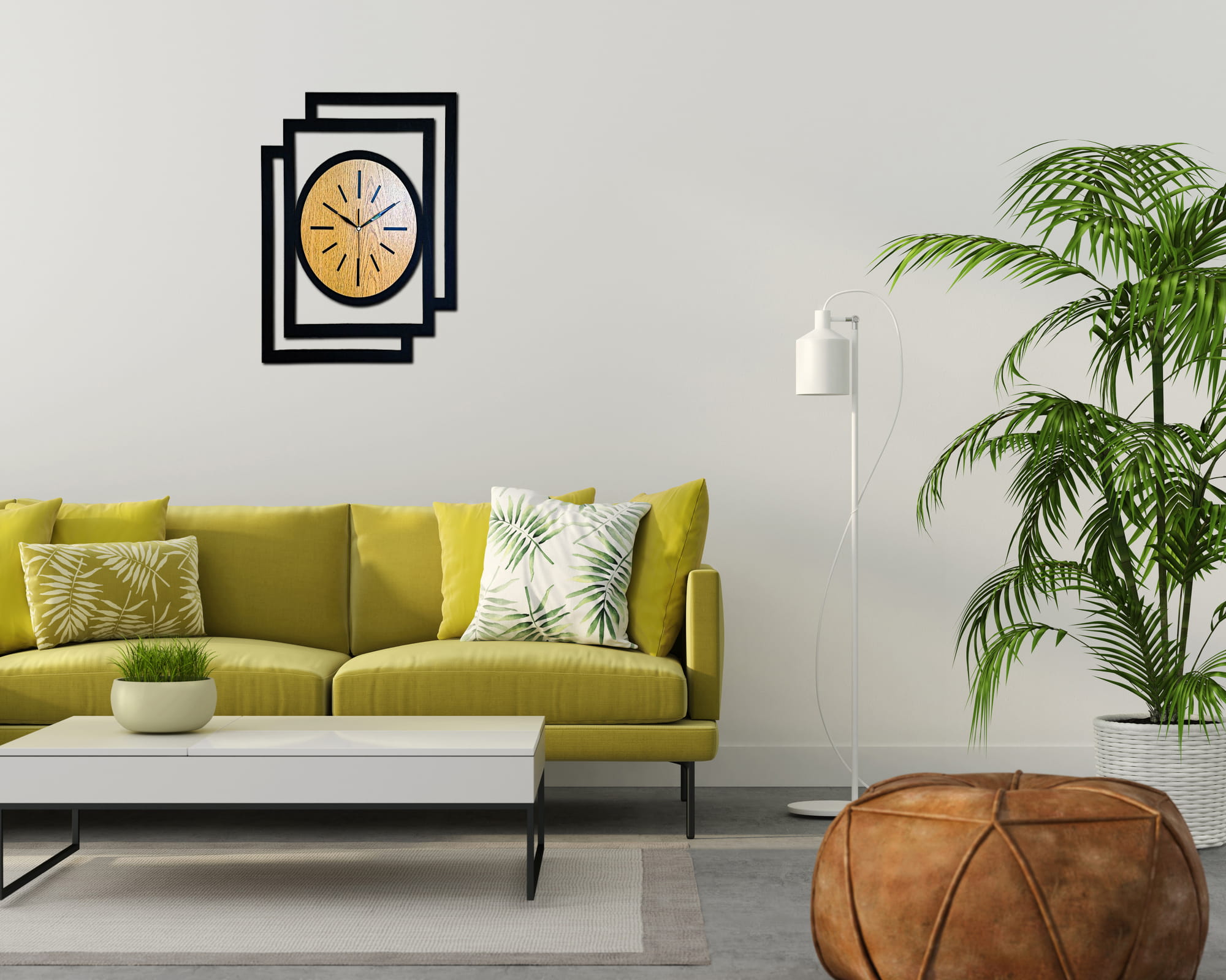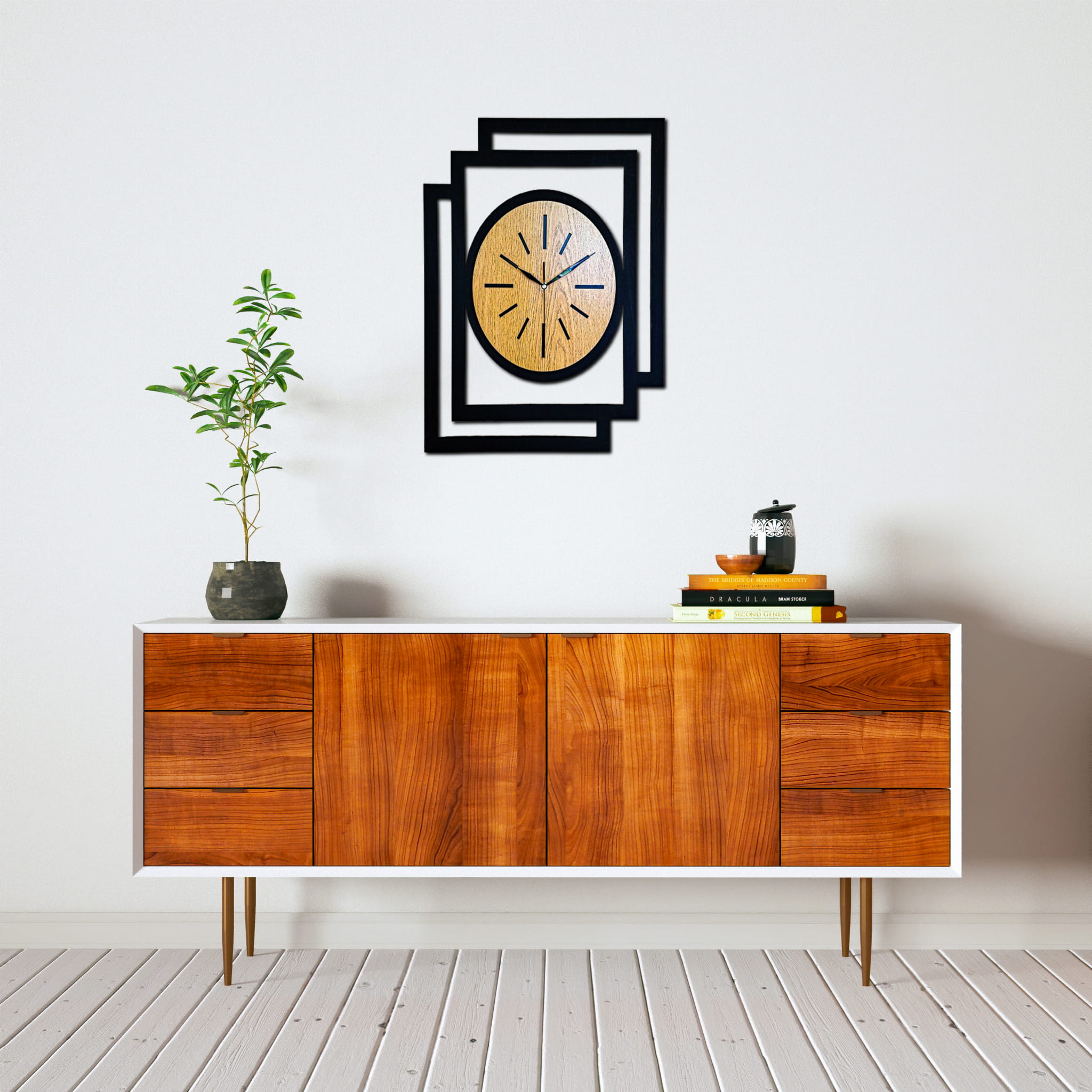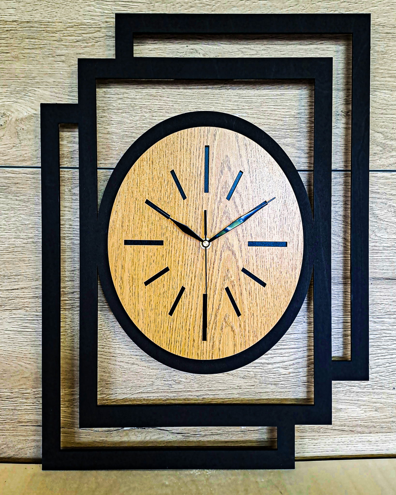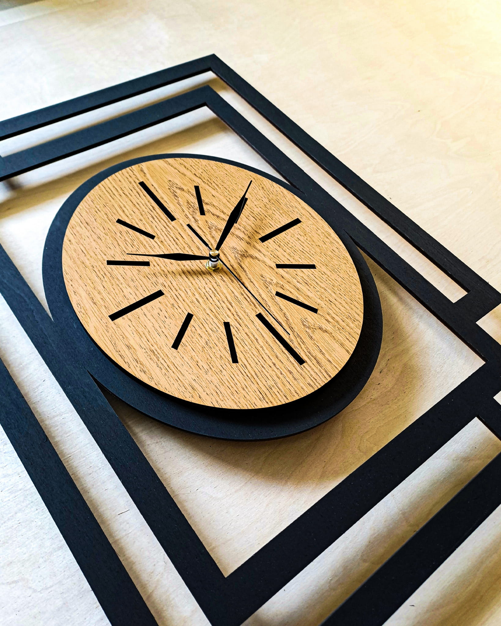 DUŻY, NOWOCZESNY, OZDOBNY ZEGAR ŚCIENNY, OWAL, INDUSTRIALNY, GEOMETRYCZNY, DO SALONU, DO KUCHNI,MINIMALISTYCZNY, LOFT, HANDMADE, DREWNIANY, CZARNY/DĄB ZŁOTY, CICHY