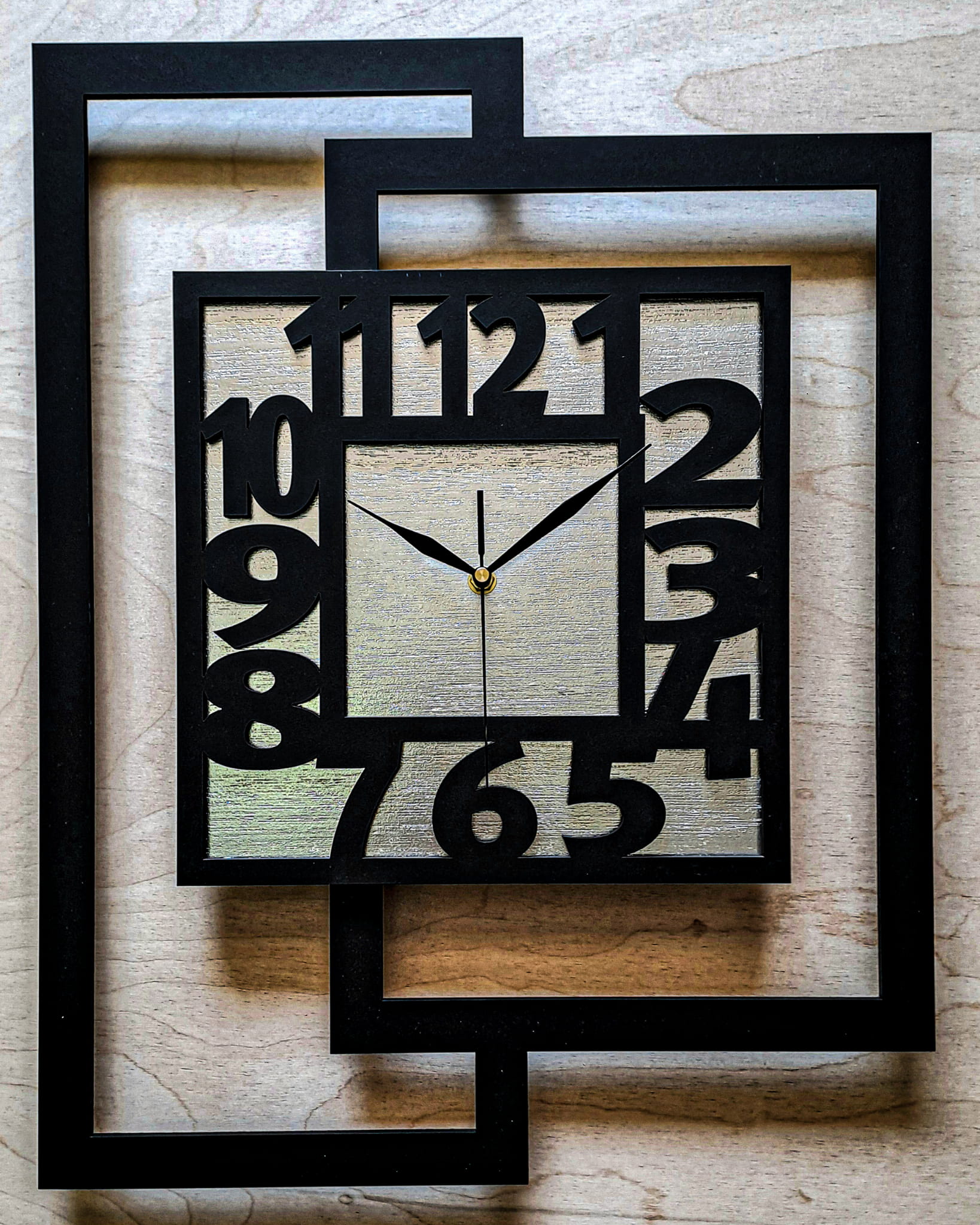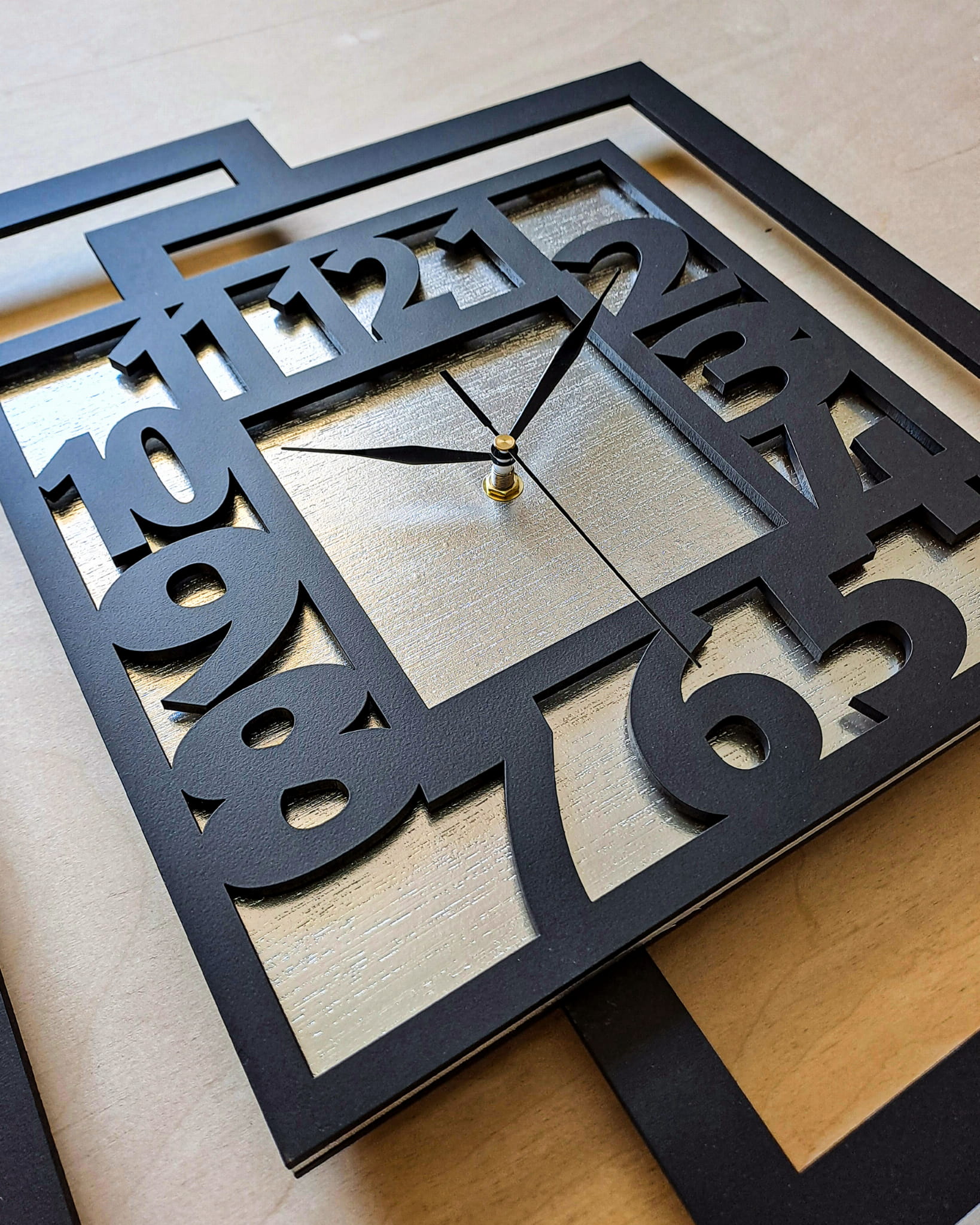 GRUBOŚĆ MATERIAŁU z którego wykonujemy ramę zegara - 5 mm bo tylko w takiej grubości możliwe jest precyzyjne cięcie laserowe , grubość całego zegara 3 cm ( 3 warstwy sklejki 5 mm + mechanizm 15 mm )