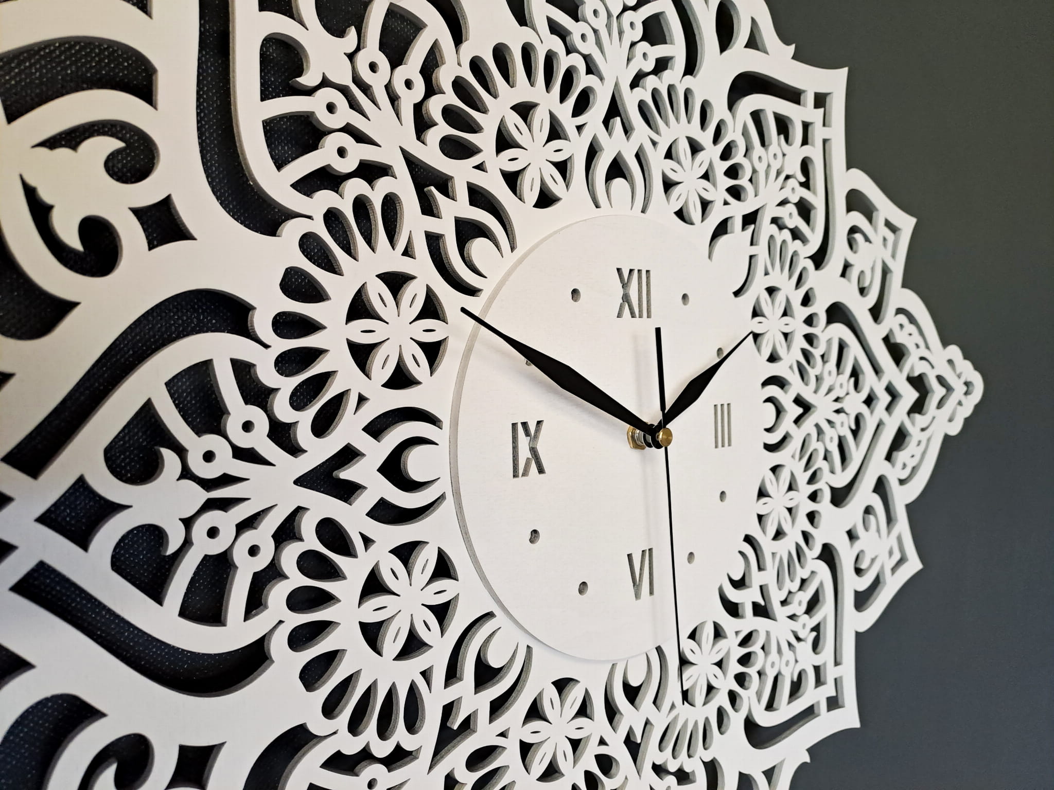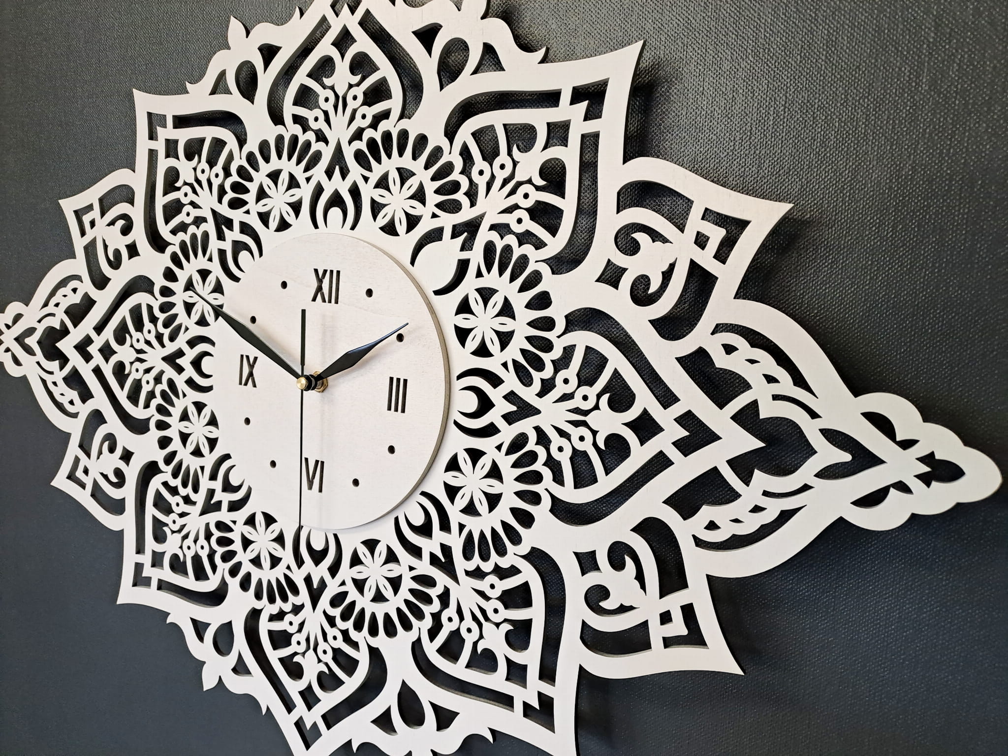 Dekoracyjny, ażurowy zegar z motywem uniwersalnej mandali, który doda uroku Twojemu wnętrzu. Możesz go zawiesić w poziomie lub w pionie zależnie od miejsca, które masz na ścianie;)
