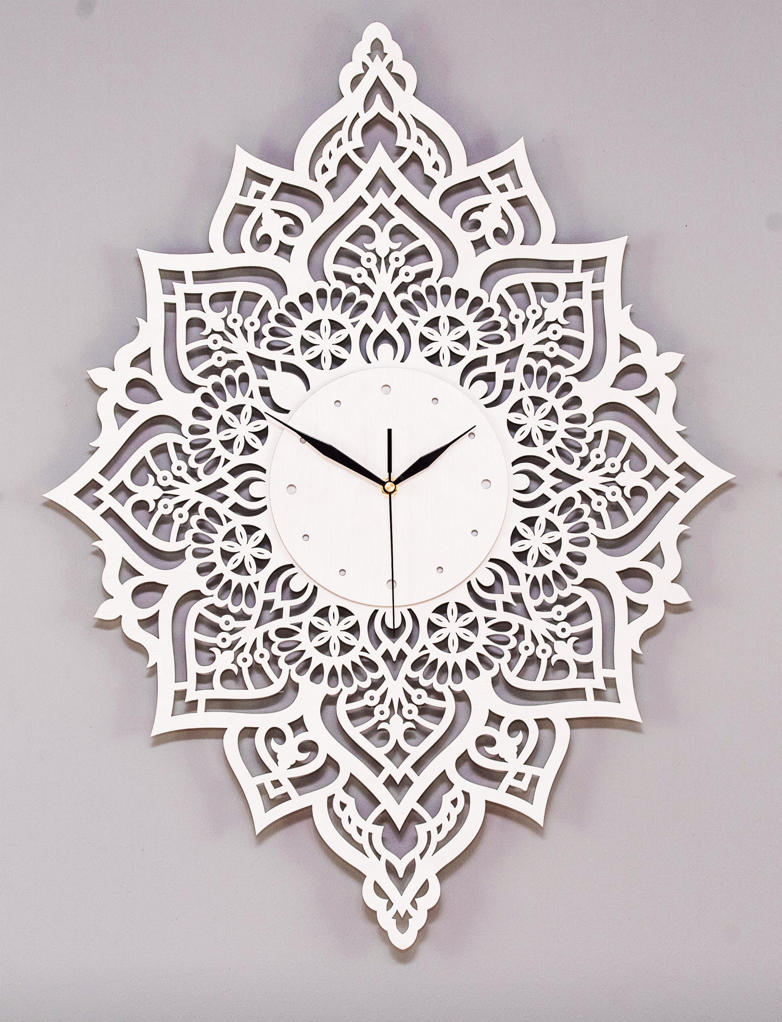PIĘKNY, DEKORACYJNY, AŻUROWY ZEGAR ŚCIENNY, MANDALA, BIAŁY
