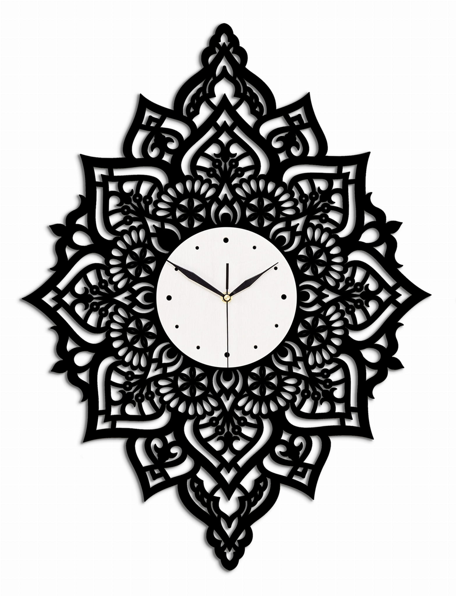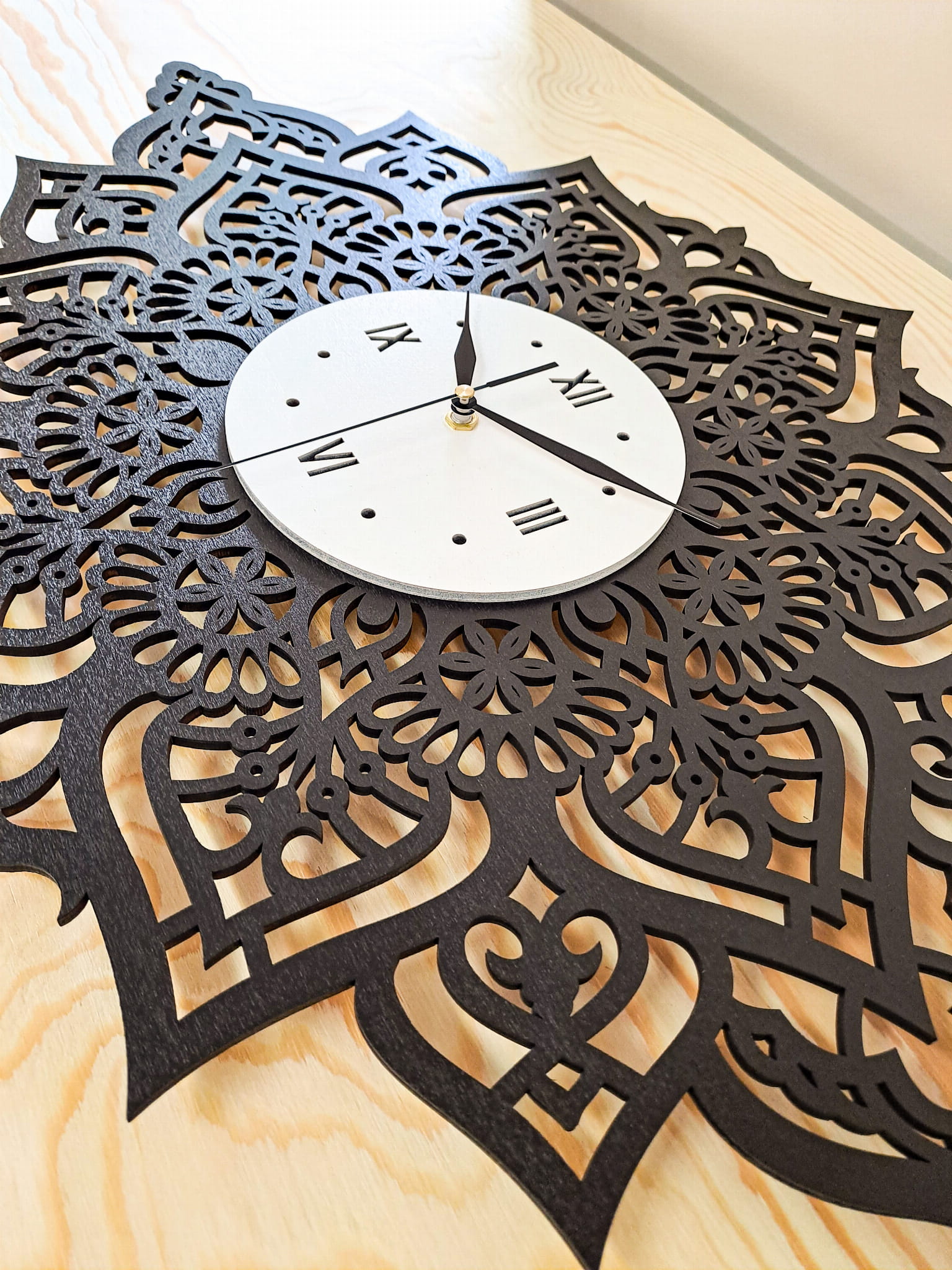 Dekoracyjny, ażurowy zegar z motywem uniwersalnej mandali, który doda uroku Twojemu wnętrzu. Możesz go zawiesić w poziomie lub w pionie zależnie od miejsca, które masz na ścianie;)