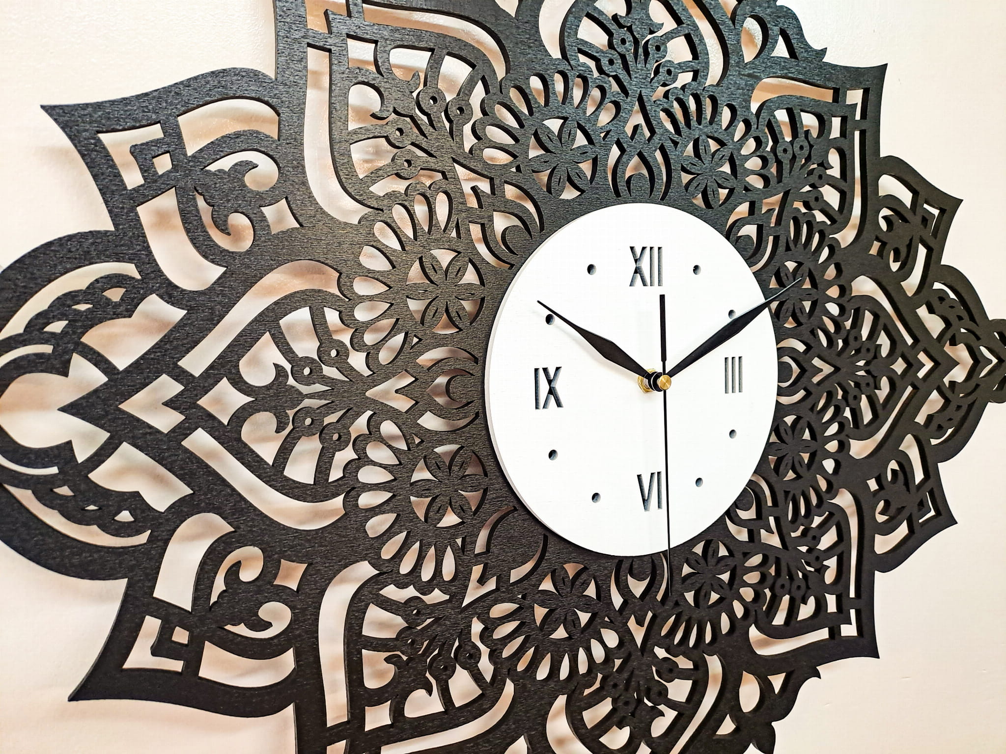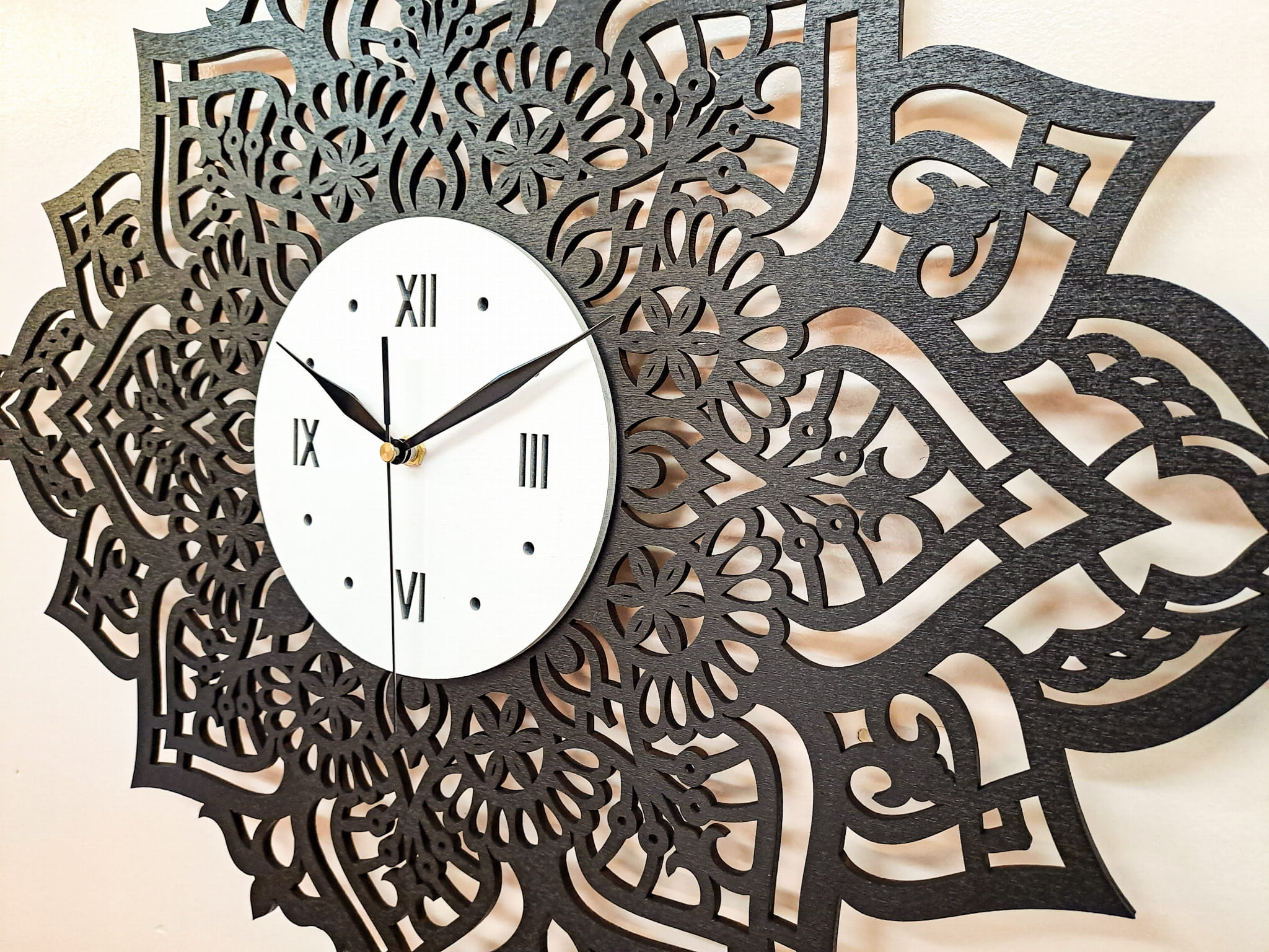 PIĘKNY, DEKORACYJNY, AŻUROWY ZEGAR ŚCIENNY, MANDALA, CZARNY