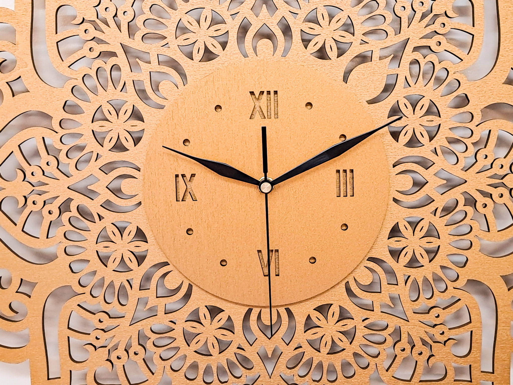 Dekoracyjny, ażurowy zegar z motywem uniwersalnej mandali, który doda uroku Twojemu wnętrzu. Możesz go zawiesić w poziomie lub w pionie zależnie od miejsca, które masz na ścianie;)