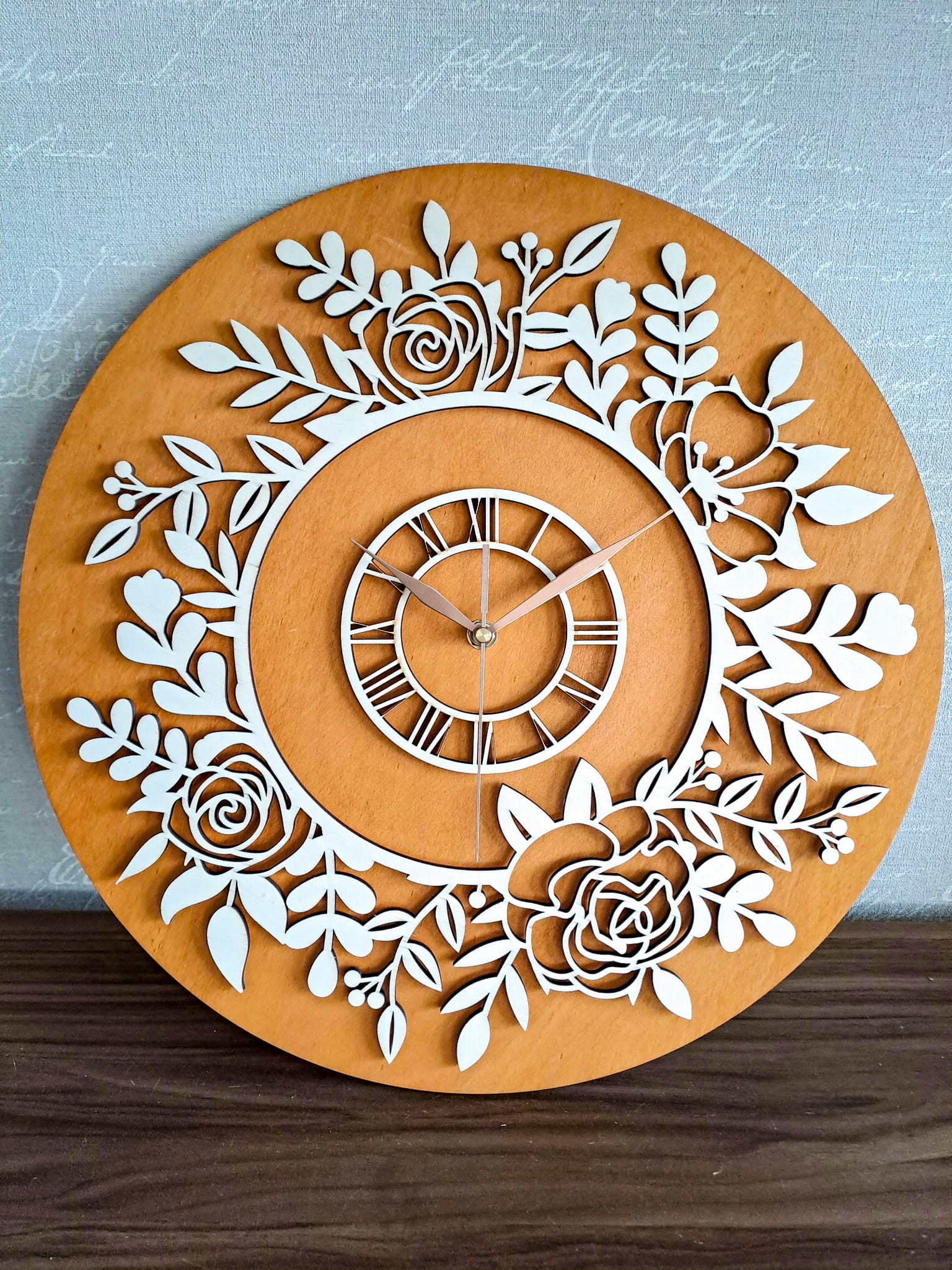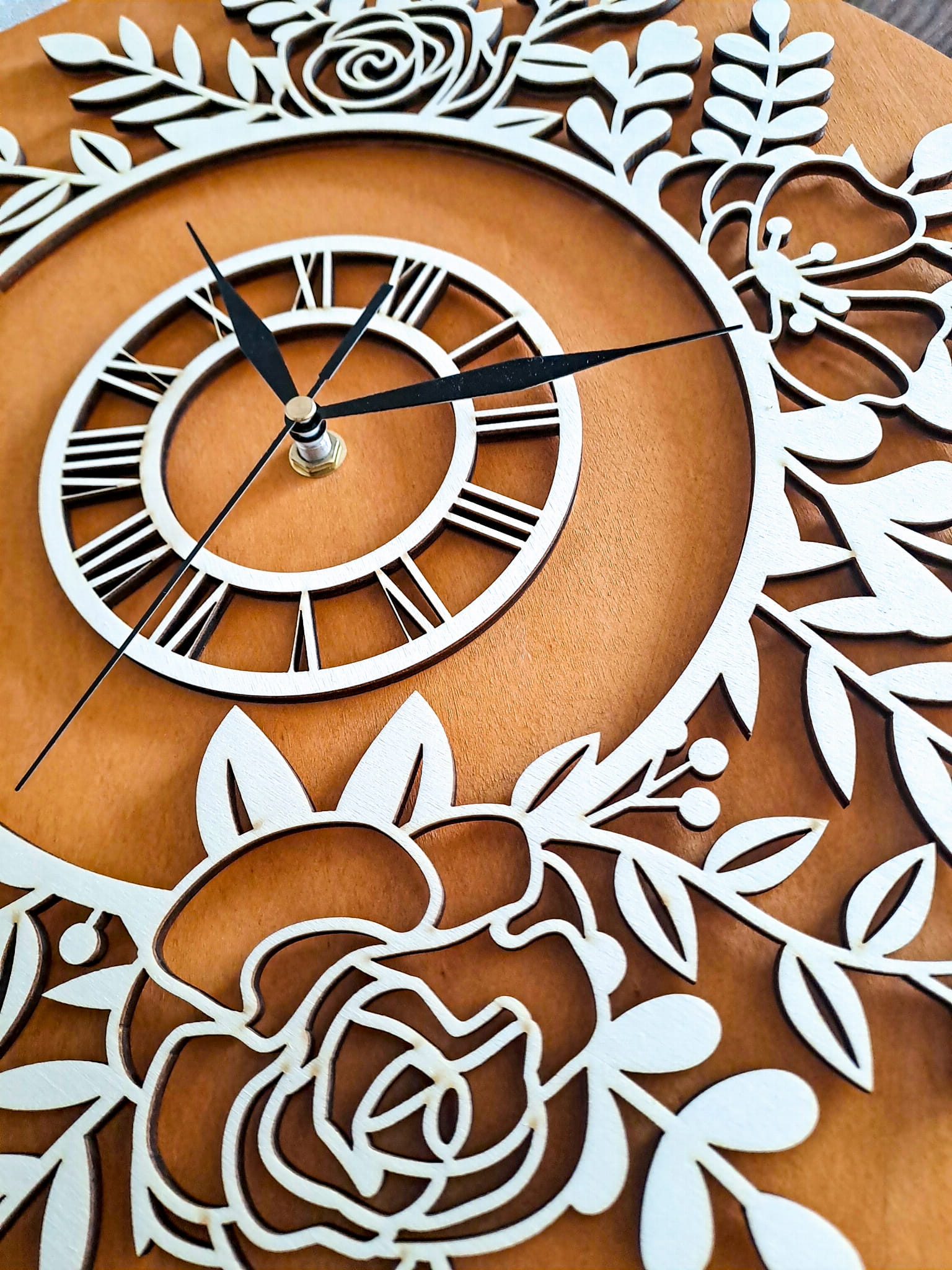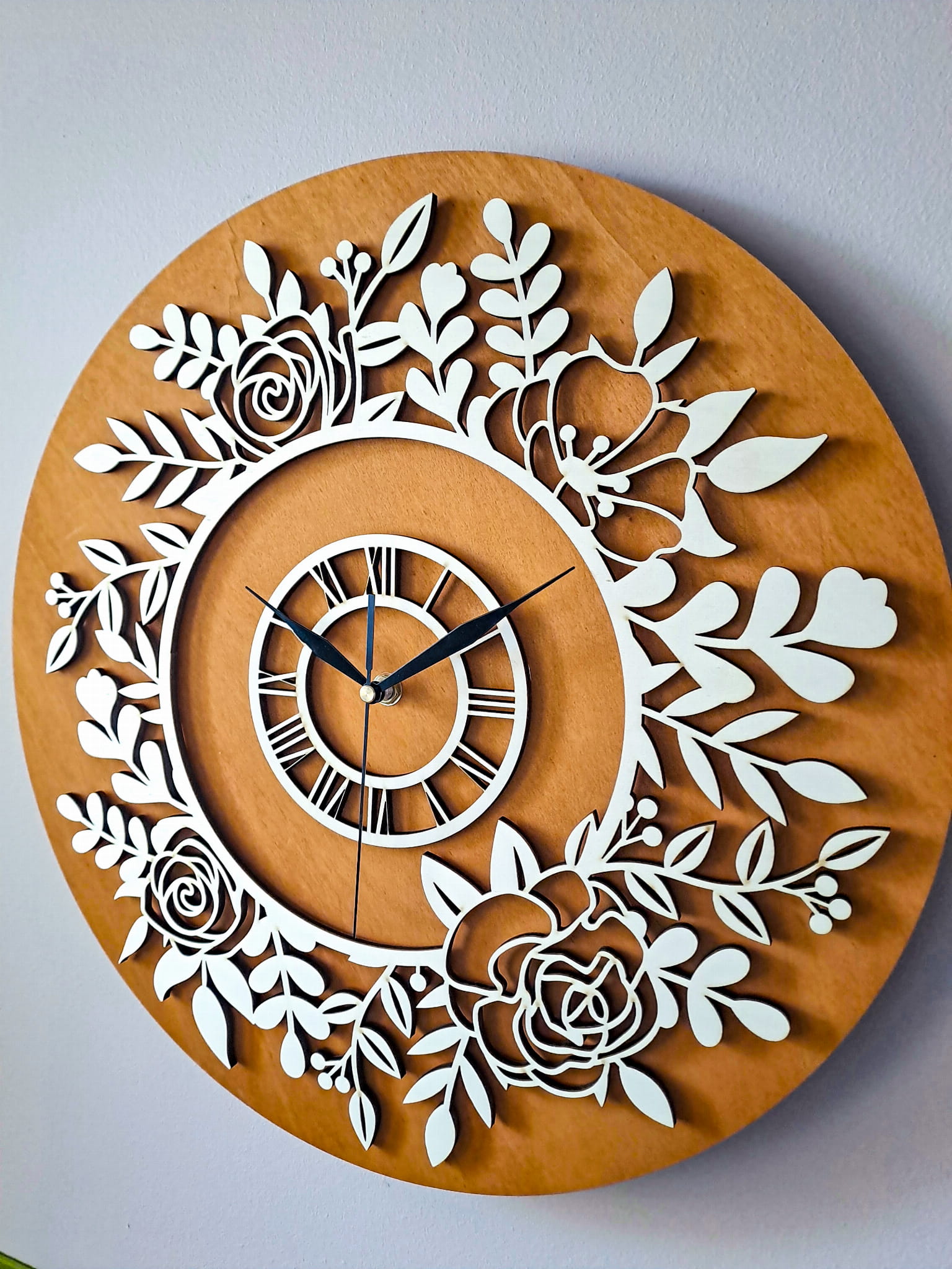 Dekoracyjny, ażurowy zegar z kwiatowym ornamentem w stylu vintage sprawi, że Twoje wnętrze nabierze charakteru i stylu.