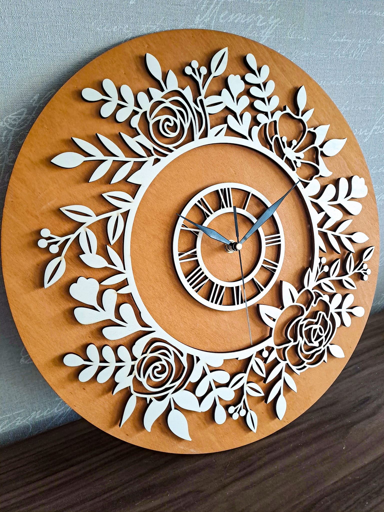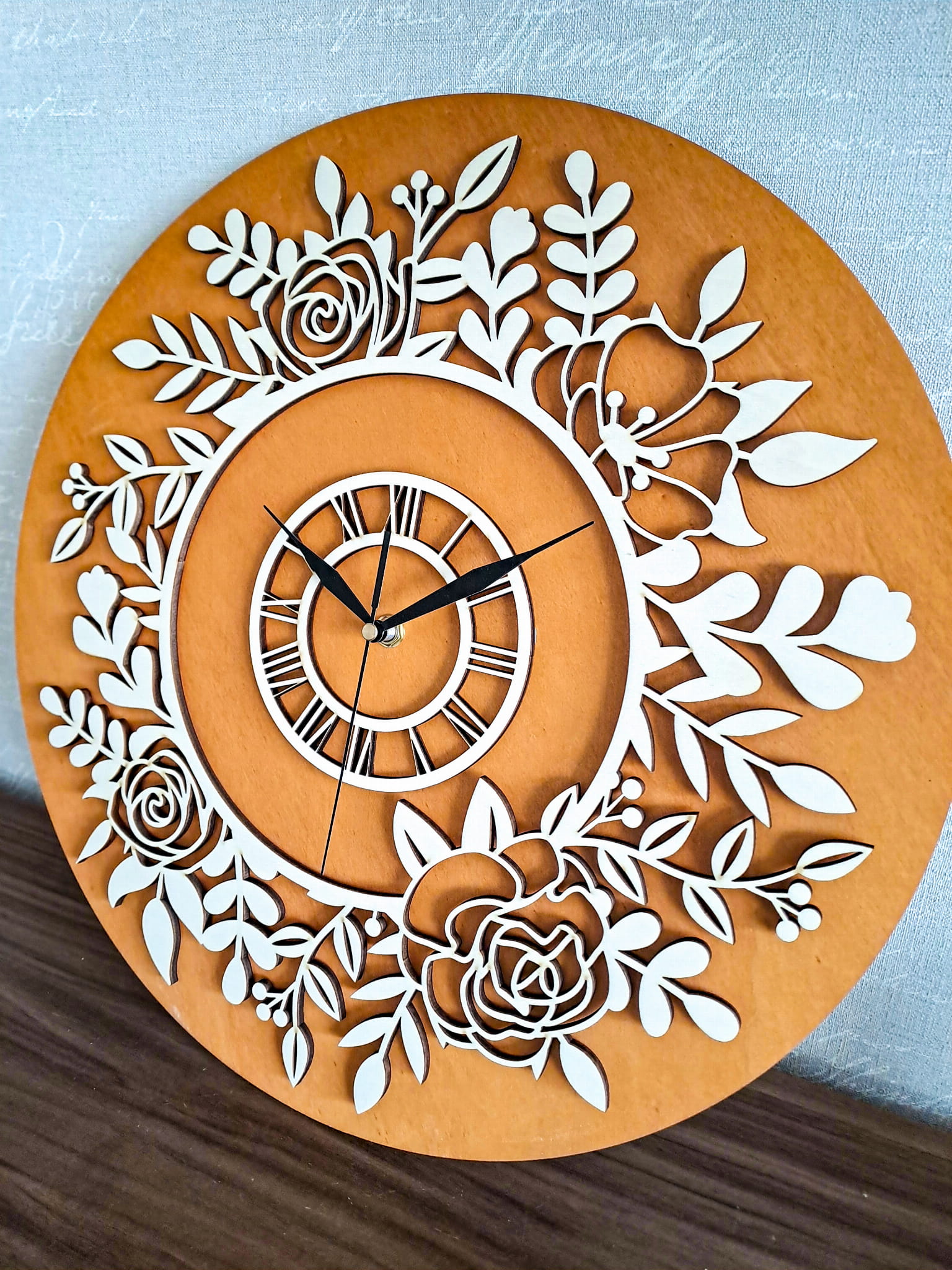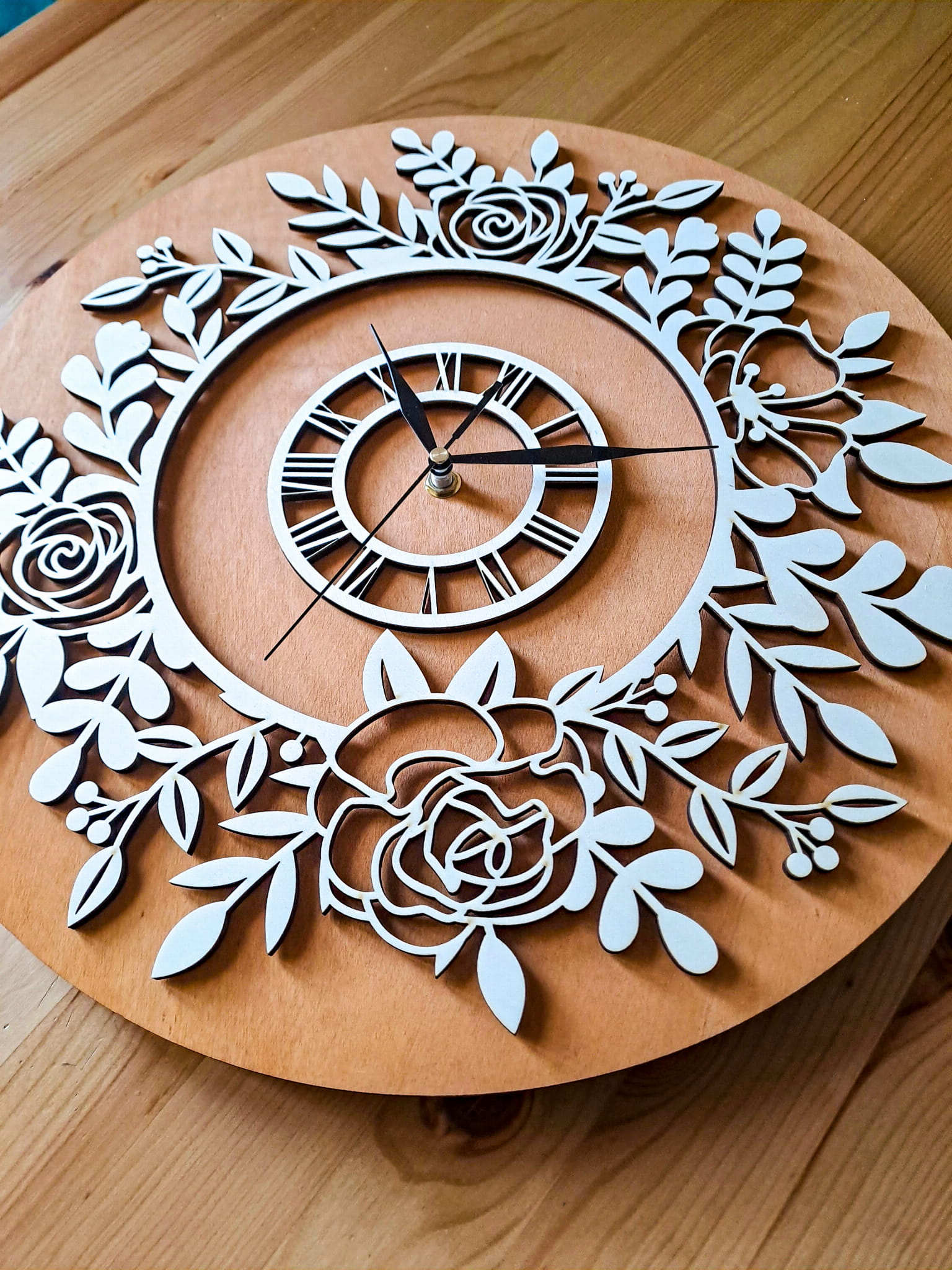 Dekoracyjny, ażurowy zegar z kwiatowym ornamentem w stylu vintage sprawi, że Twoje wnętrze nabierze charakteru i stylu.